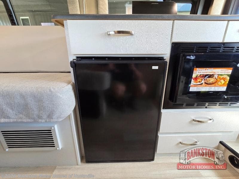 Your trek across country is made comfortable in this coach for two. You can swivel the captains seats around when you get to your destination, or head outdoors to sit under the 13' Thule armless awning with LED lights. The pull-out table indoors will provide a space for your coffee in the morning, while breakfast is being cooked in the convection microwave or on the two burner cooktop. A rear wet bath will allow you to stay clean throughout your trip, and you'll find plenty of storage space for your belongings. You'll love the versatile sleeping arrangements in this model that includes twin-size beds with a filler cushion that converts to a king-size bed, plus there is under-bed storage for your luggage. The optional Li Package can also be added which features a 48V-165 amp hour smart lithium battery, providing 7.9KW hours of power, and more; see dealer for more details!
