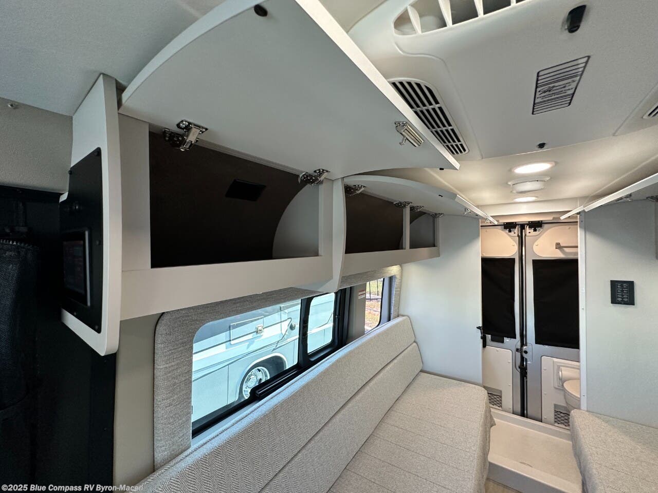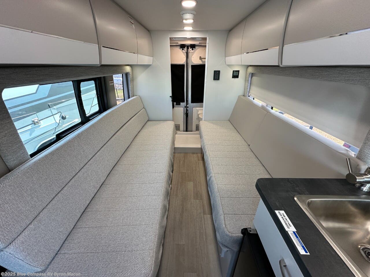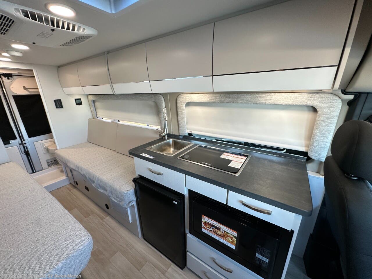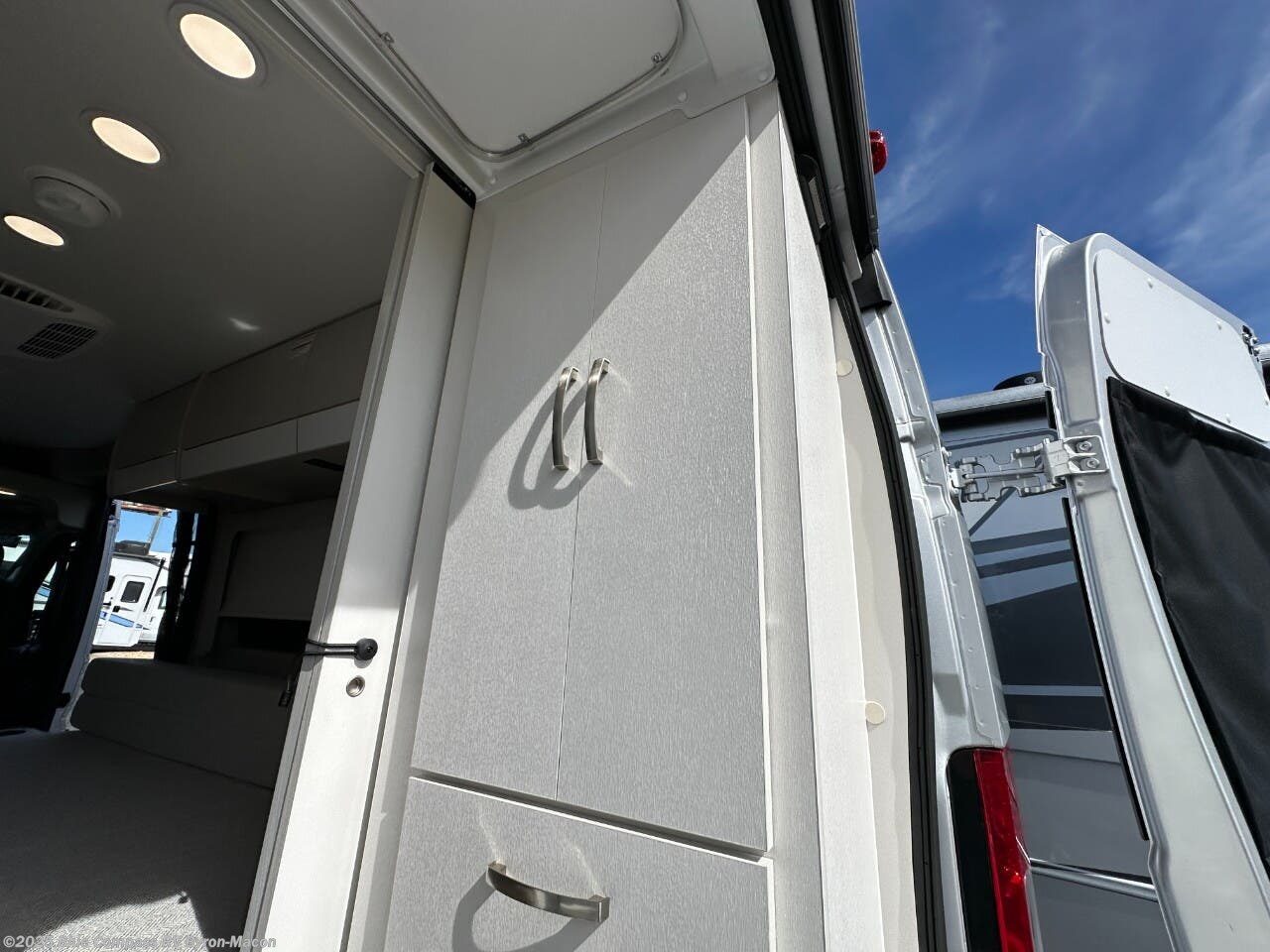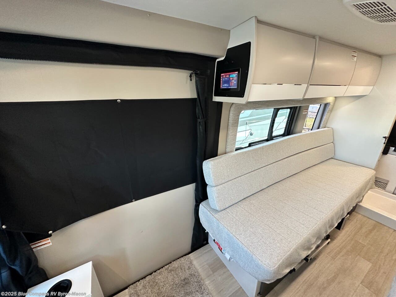 Your trek across country is made comfortable in this coach for two. You can swivel the captains seats around when you get to your destination, or head outdoors to sit under the 13' Thule armless awning with LED lights. The pull-out table indoors will provide a space for your coffee in the morning, while breakfast is being cooked in the convection microwave or on the two burner cooktop. A rear wet bath will allow you to stay clean throughout your trip, and you'll find plenty of storage space for your belongings. You'll love the versatile sleeping arrangements in this model that includes twin-size beds with a filler cushion that converts to a king-size bed, plus there is under-bed storage for your luggage. The optional Li Package can also be added which features a 48V-165 amp hour smart lithium battery, providing 7.9KW hours of power, and more; see dealer for more details!