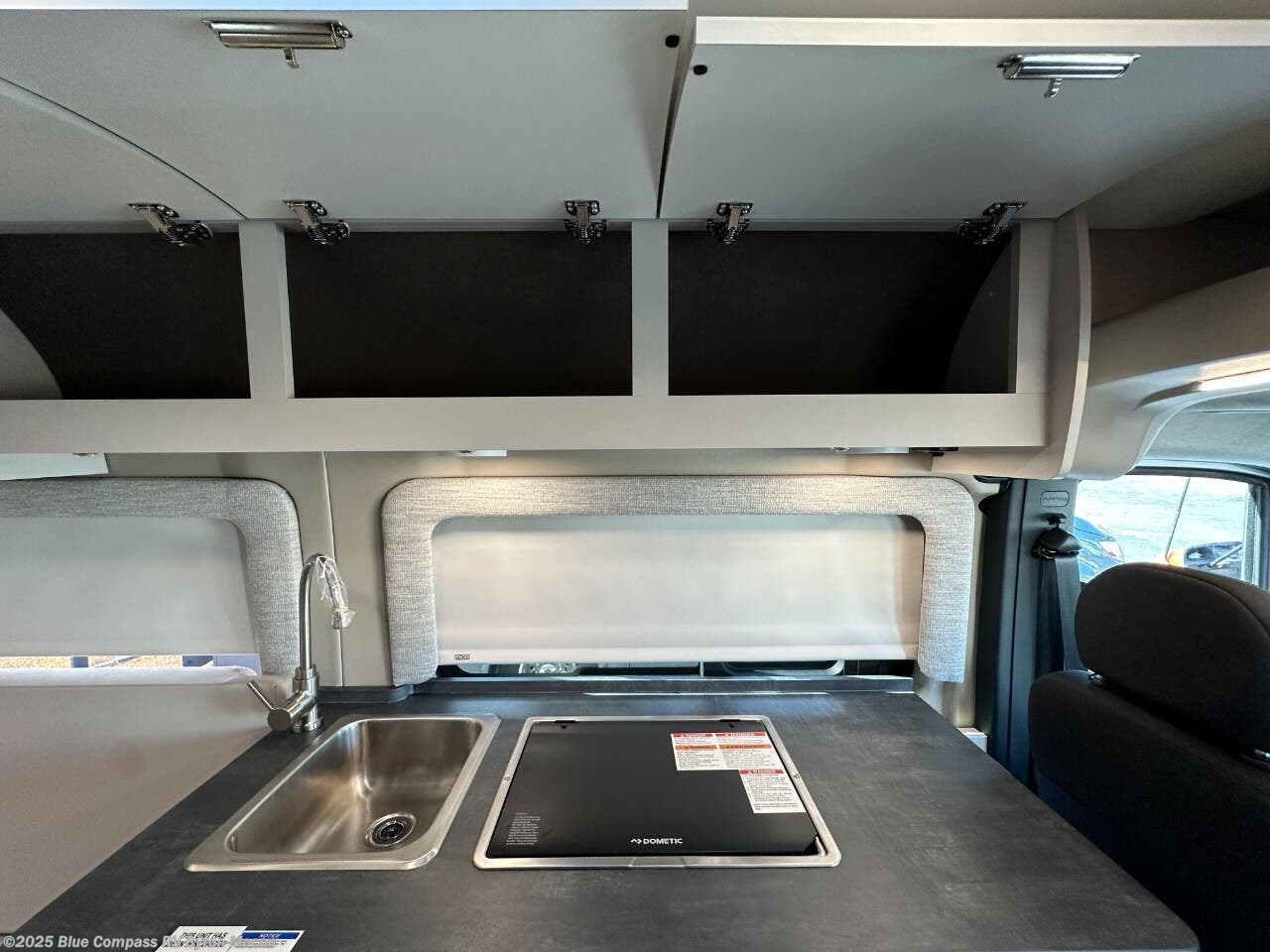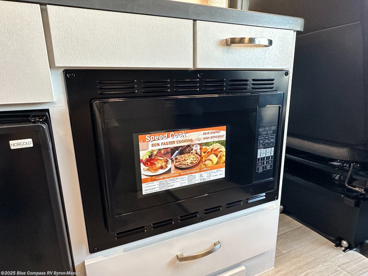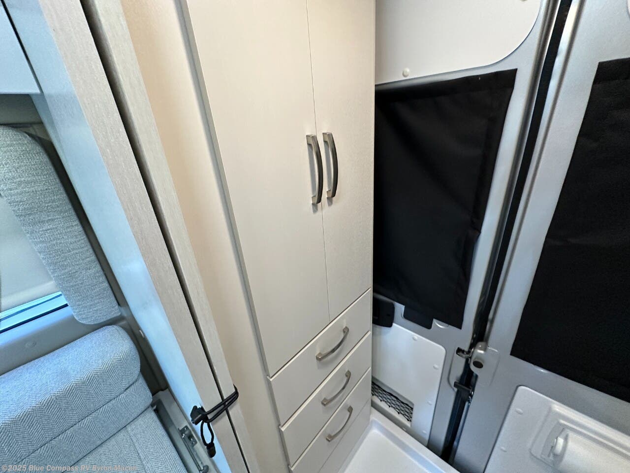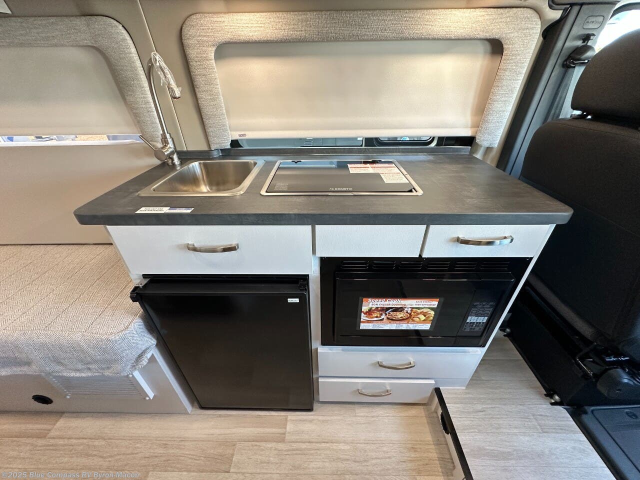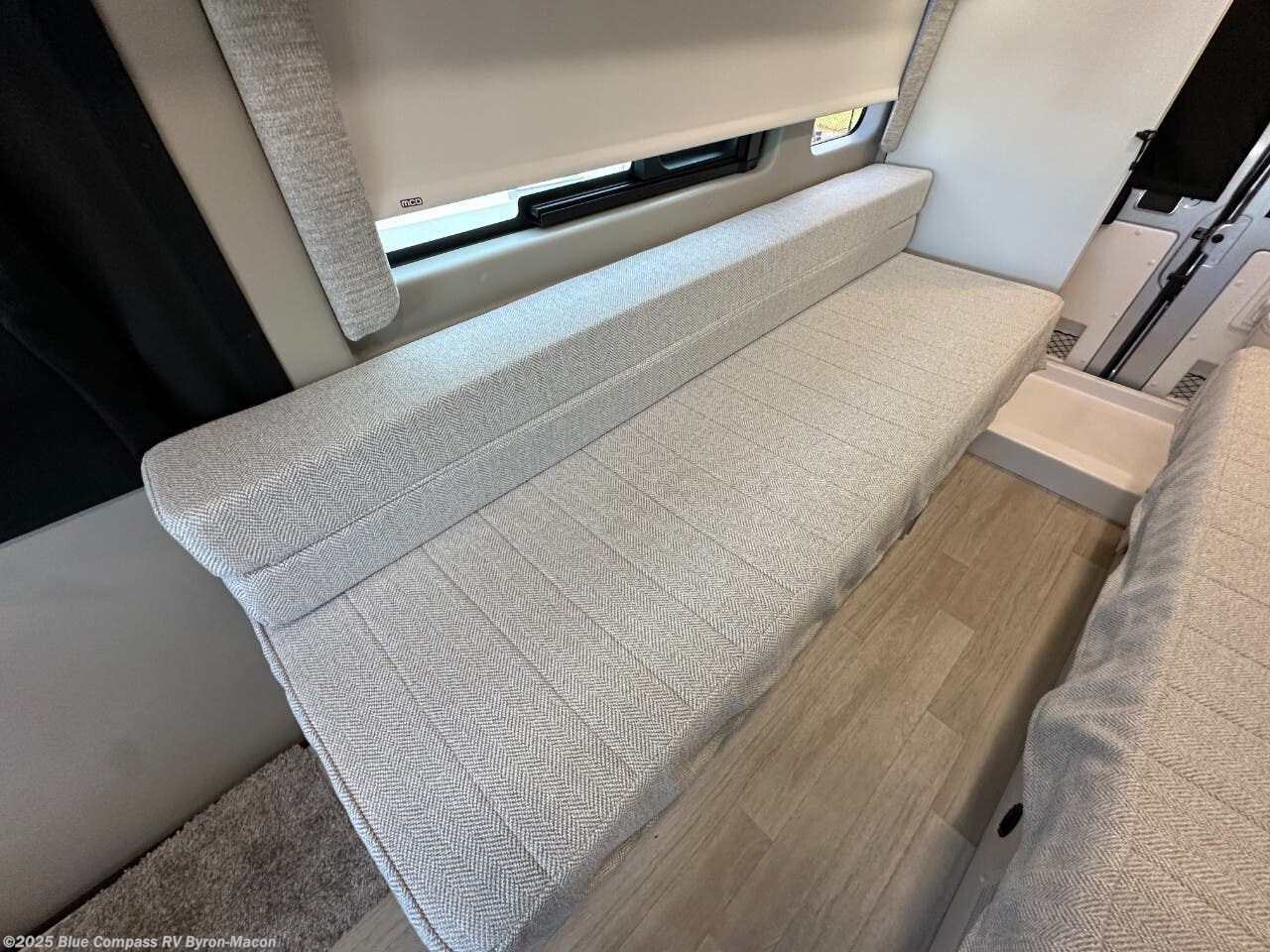 Your trek across country is made comfortable in this coach for two. You can swivel the captains seats around when you get to your destination, or head outdoors to sit under the 13' Thule armless awning with LED lights. The pull-out table indoors will provide a space for your coffee in the morning, while breakfast is being cooked in the convection microwave or on the two burner cooktop. A rear wet bath will allow you to stay clean throughout your trip, and you'll find plenty of storage space for your belongings. You'll love the versatile sleeping arrangements in this model that includes twin-size beds with a filler cushion that converts to a king-size bed, plus there is under-bed storage for your luggage. The optional Li Package can also be added which features a 48V-165 amp hour smart lithium battery, providing 7.9KW hours of power, and more; see dealer for more details!