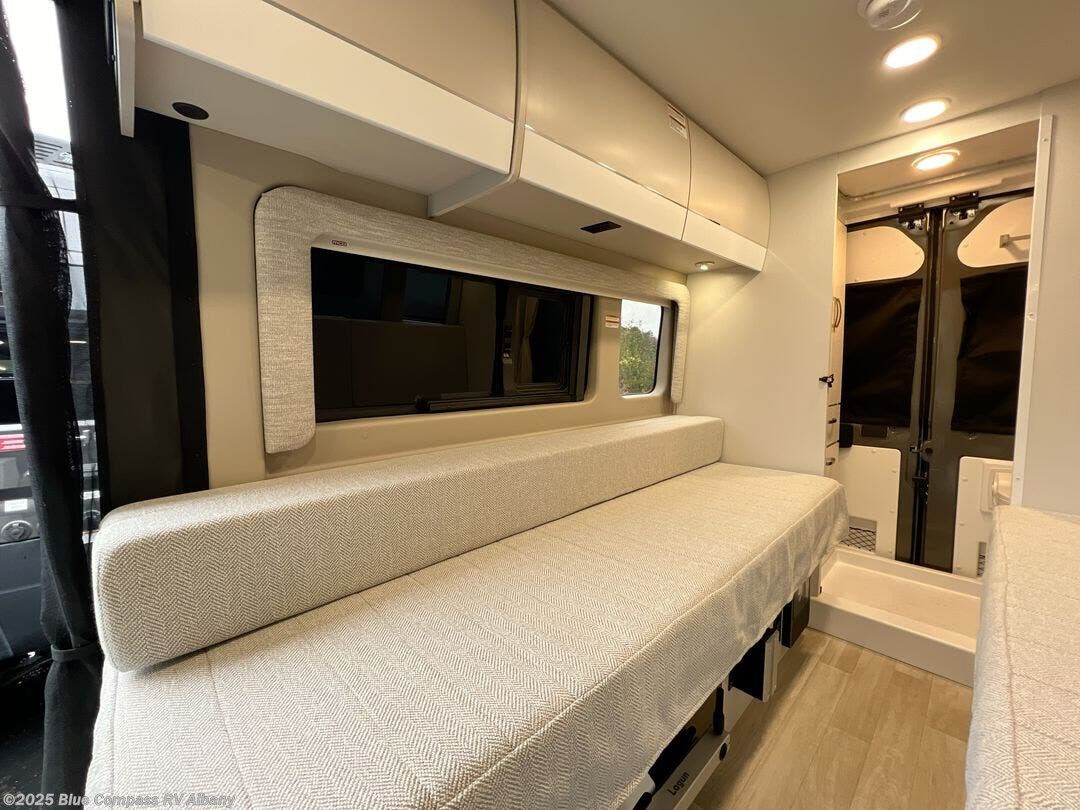 Your trek across country is made comfortable in this coach for two. You can swivel the captains seats around when you get to your destination, or head outdoors to sit under the 13' Thule armless awning with LED lights. The pull-out table indoors will provide a space for your coffee in the morning, while breakfast is being cooked in the convection microwave or on the two burner cooktop. A rear wet bath will allow you to stay clean throughout your trip, and you'll find plenty of storage space for your belongings. You'll love the versatile sleeping arrangements in this model that includes twin-size beds with a filler cushion that converts to a king-size bed, plus there is under-bed storage for your luggage. The optional Li Package can also be added which features a 48V-165 amp hour smart lithium battery, providing 7.9KW hours of power, and more; see dealer for more details!