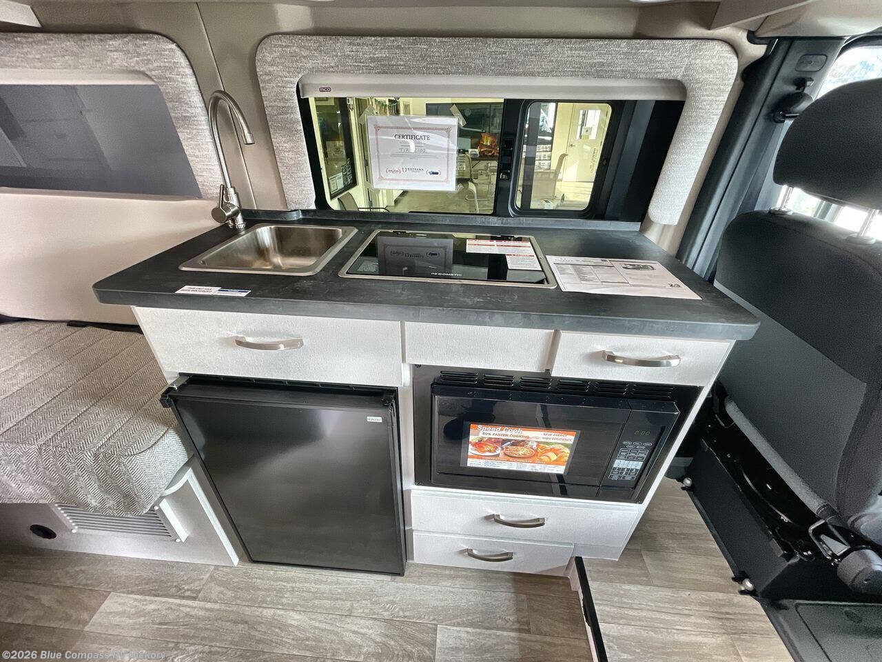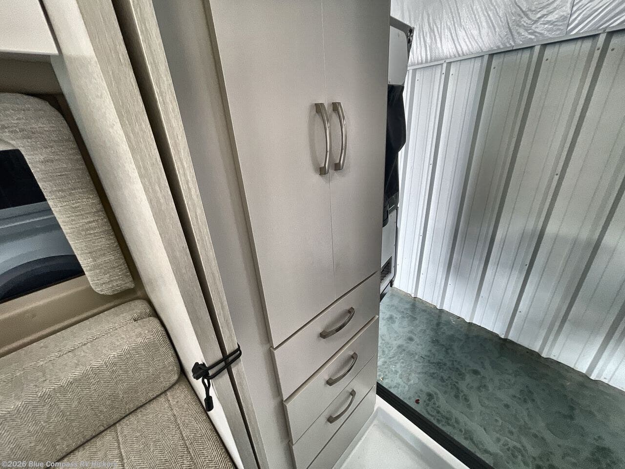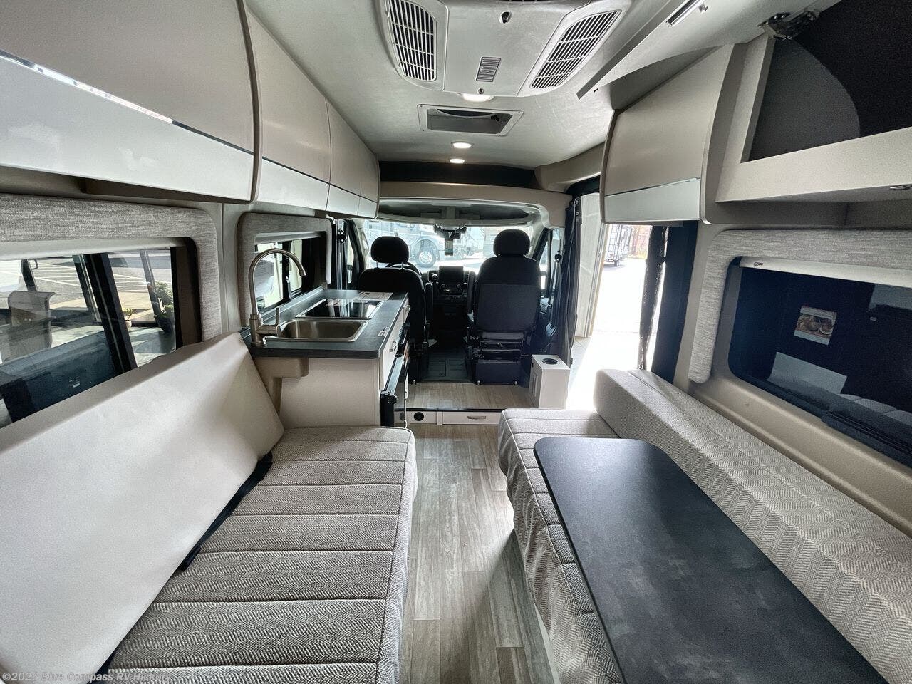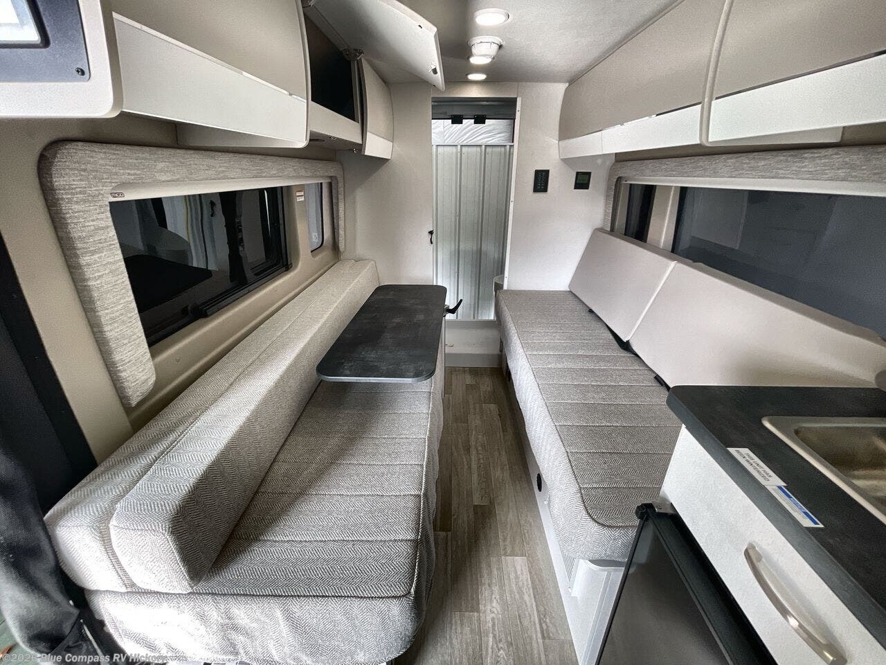 Your trek across country is made comfortable in this coach for two. You can swivel the captains seats around when you get to your destination, or head outdoors to sit under the 13' Thule armless awning with LED lights. The pull-out table indoors will provide a space for your coffee in the morning, while breakfast is being cooked in the convection microwave or on the two burner cooktop. A rear wet bath will allow you to stay clean throughout your trip, and you'll find plenty of storage space for your belongings. You'll love the versatile sleeping arrangements in this model that includes twin-size beds with a filler cushion that converts to a king-size bed, plus there is under-bed storage for your luggage. The optional Li Package can also be added which features a 48V-165 amp hour smart lithium battery, providing 7.9KW hours of power, and more; see dealer for more details!