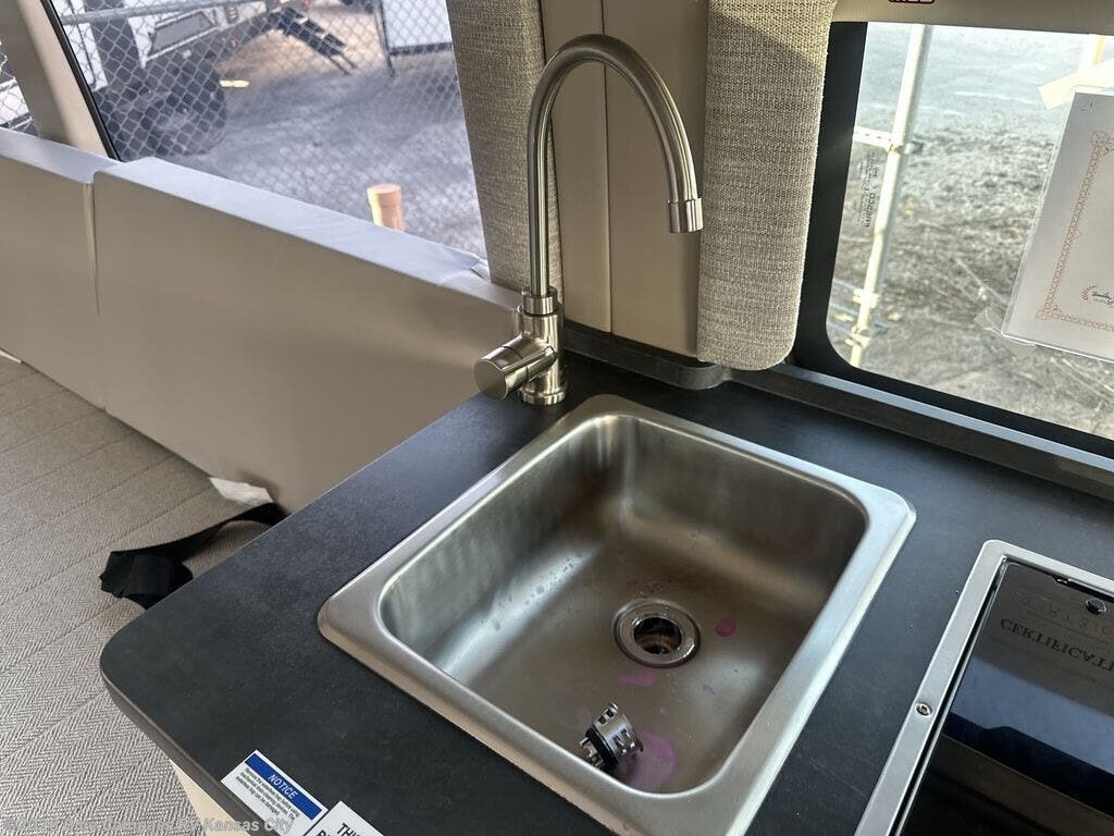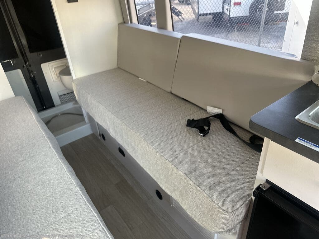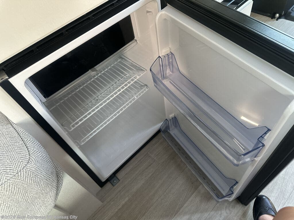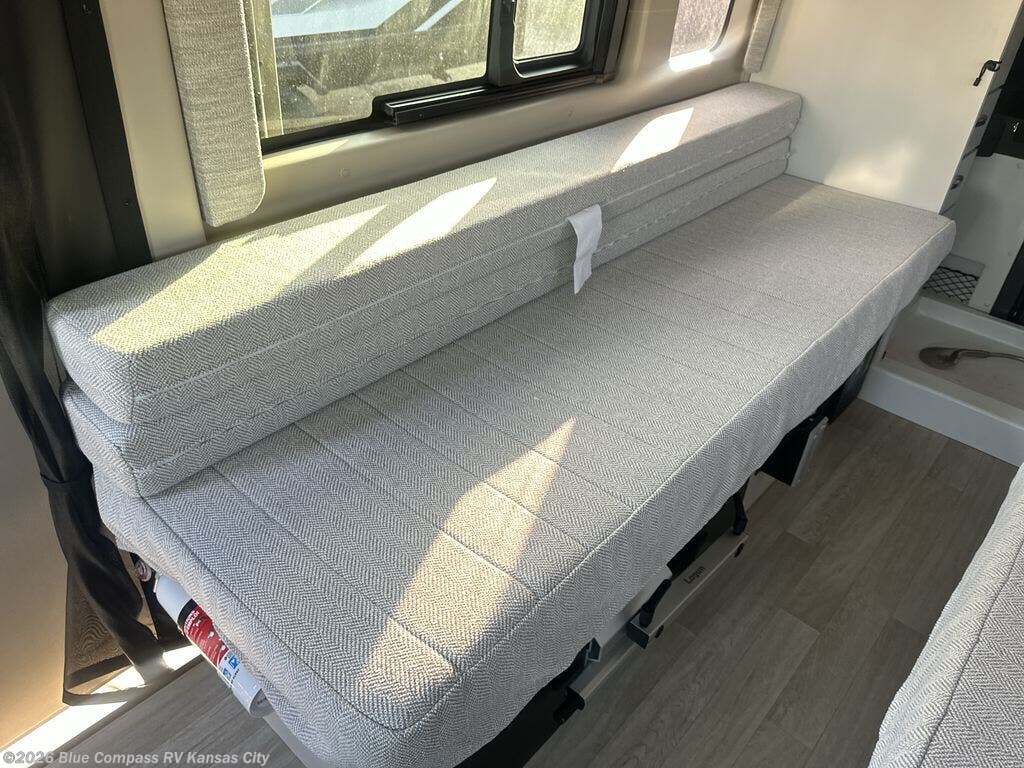 Your trek across country is made comfortable in this coach for two. You can swivel the captains seats around when you get to your destination, or head outdoors to sit under the 13' Thule armless awning with LED lights. The pull-out table indoors will provide a space for your coffee in the morning, while breakfast is being cooked in the convection microwave or on the two burner cooktop. A rear wet bath will allow you to stay clean throughout your trip, and you'll find plenty of storage space for your belongings. You'll love the versatile sleeping arrangements in this model that includes twin-size beds with a filler cushion that converts to a king-size bed, plus there is under-bed storage for your luggage. The optional Li Package can also be added which features a 48V-165 amp hour smart lithium battery, providing 7.9KW hours of power, and more; see dealer for more details!