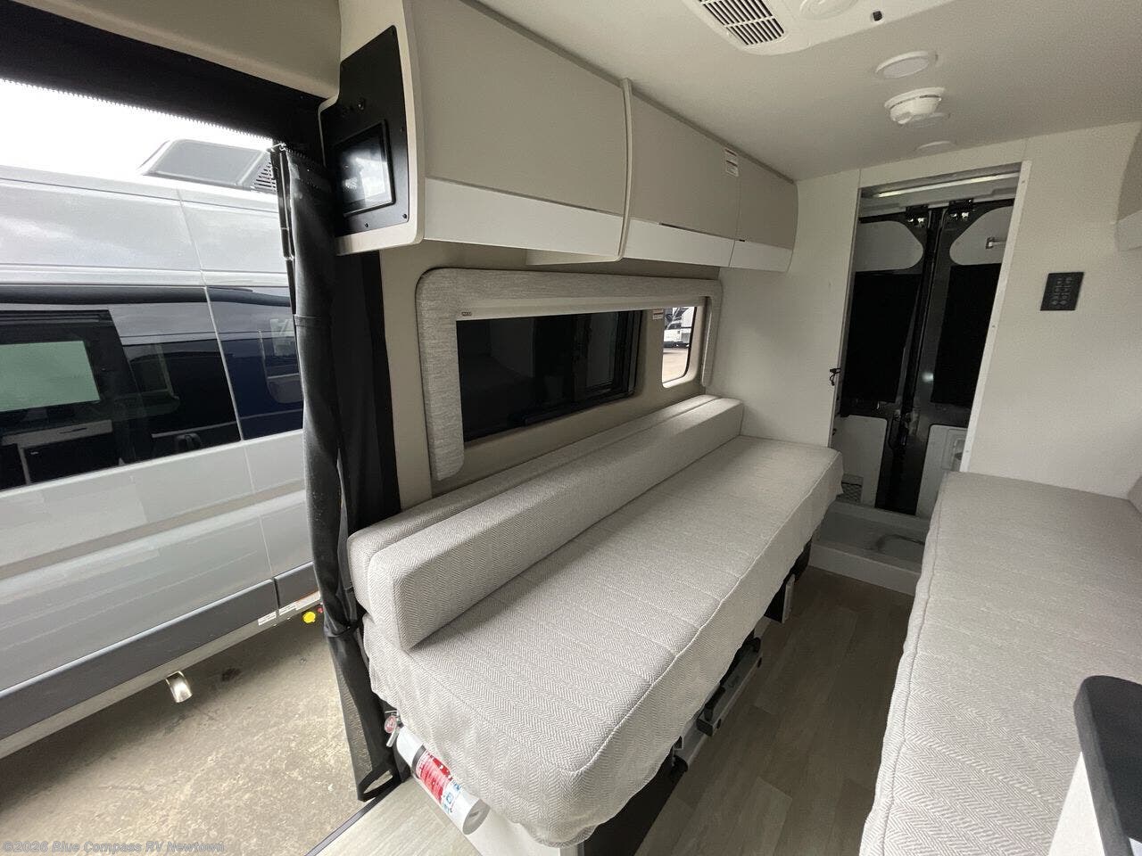 Your trek across country is made comfortable in this coach for two. You can swivel the captains seats around when you get to your destination, or head outdoors to sit under the 13' Thule armless awning with LED lights. The pull-out table indoors will provide a space for your coffee in the morning, while breakfast is being cooked in the convection microwave or on the two burner cooktop. A rear wet bath will allow you to stay clean throughout your trip, and you'll find plenty of storage space for your belongings. You'll love the versatile sleeping arrangements in this model that includes twin-size beds with a filler cushion that converts to a king-size bed, plus there is under-bed storage for your luggage. The optional Li Package can also be added which features a 48V-165 amp hour smart lithium battery, providing 7.9KW hours of power, and more; see dealer for more details!