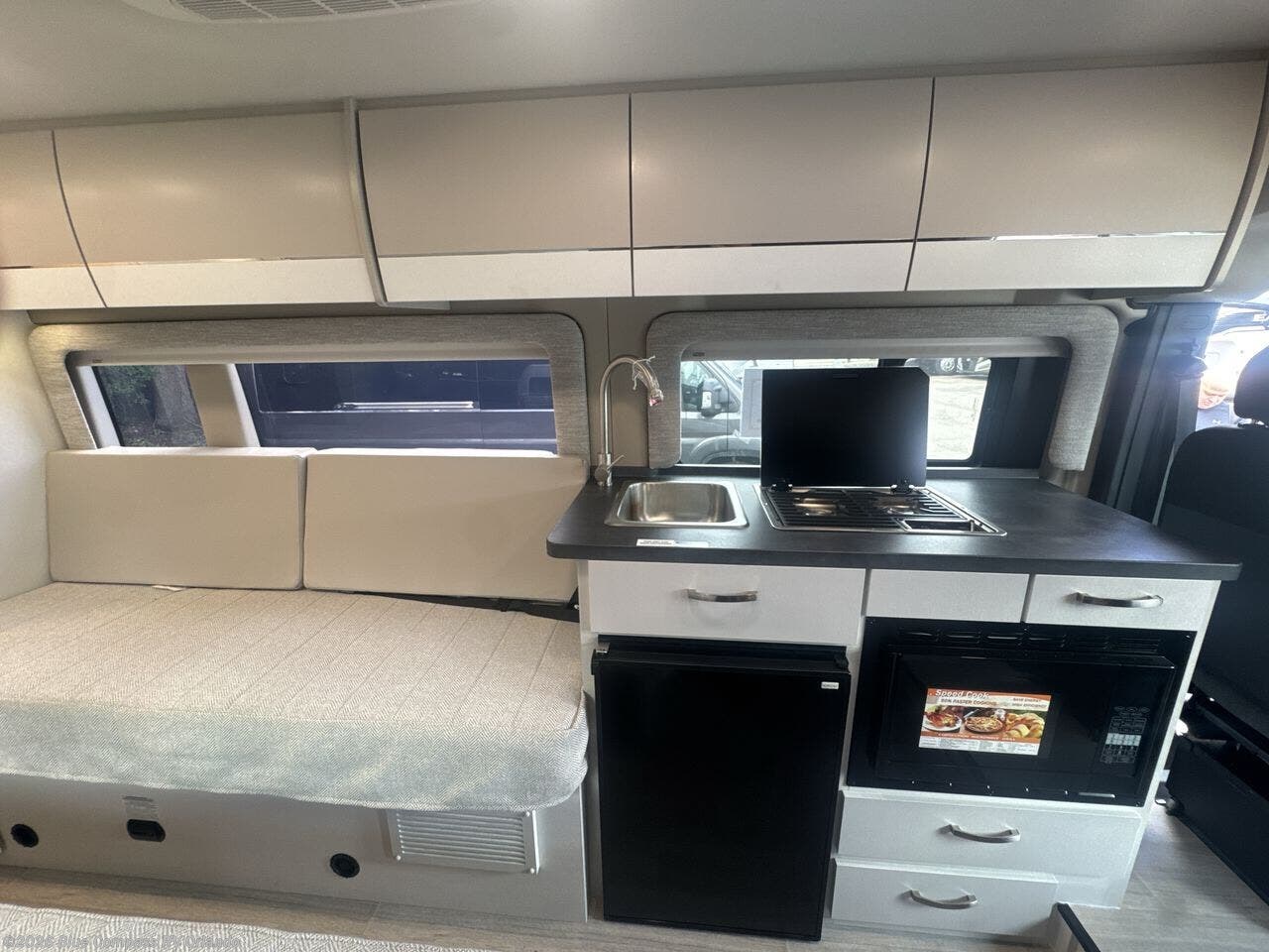Your trek across country is made comfortable in this coach for two. You can swivel the captains seats around when you get to your destination, or head outdoors to sit under the 13' Thule armless awning with LED lights. The pull-out table indoors will provide a space for your coffee in the morning, while breakfast is being cooked in the convection microwave or on the two burner cooktop. A rear wet bath will allow you to stay clean throughout your trip, and you'll find plenty of storage space for your belongings. You'll love the versatile sleeping arrangements in this model that includes twin-size beds with a filler cushion that converts to a king-size bed, plus there is under-bed storage for your luggage. The optional Li Package can also be added which features a 48V-165 amp hour smart lithium battery, providing 7.9KW hours of power, and more; see dealer for more details!