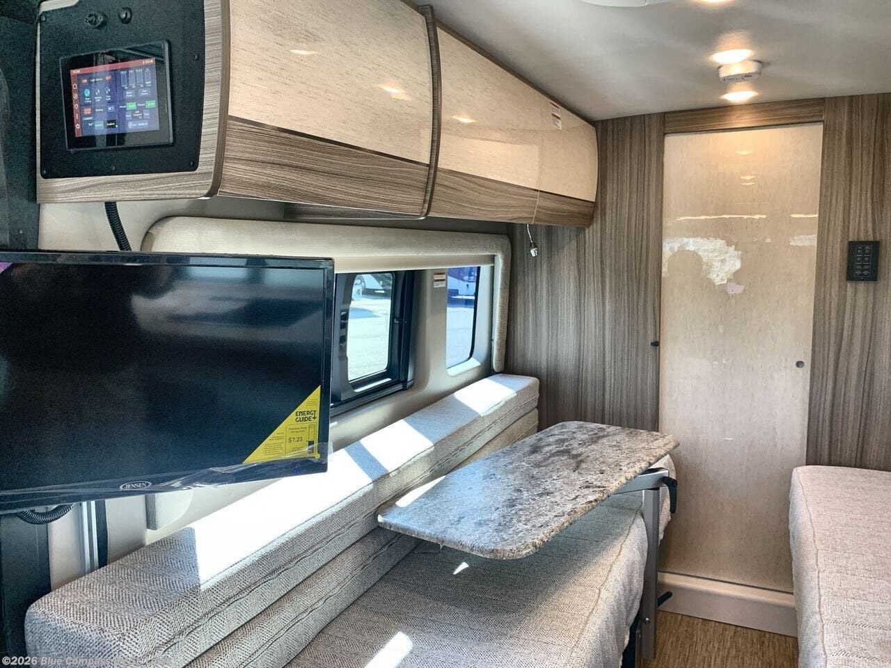 Your trek across country is made comfortable in this coach for two. You can swivel the captains seats around when you get to your destination, or head outdoors to sit under the 13' Thule armless awning with LED lights. The pull-out table indoors will provide a space for your coffee in the morning, while breakfast is being cooked in the convection microwave or on the two burner cooktop. A rear wet bath will allow you to stay clean throughout your trip, and you'll find plenty of storage space for your belongings. You'll love the versatile sleeping arrangements in this model that includes twin-size beds with a filler cushion that converts to a king-size bed, plus there is under-bed storage for your luggage. The optional Li Package can also be added which features a 48V-165 amp hour smart lithium battery, providing 7.9KW hours of power, and more; see dealer for more details!
