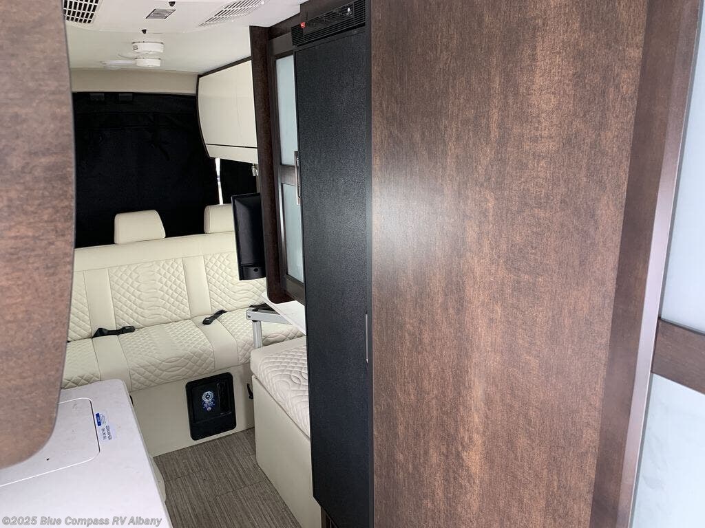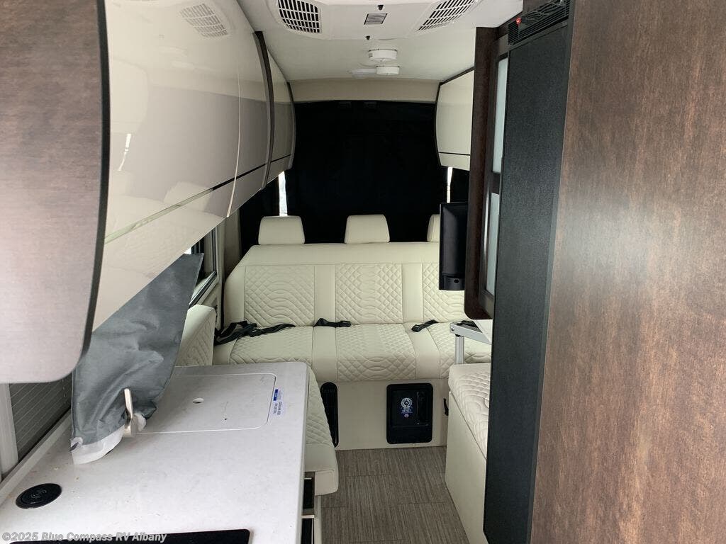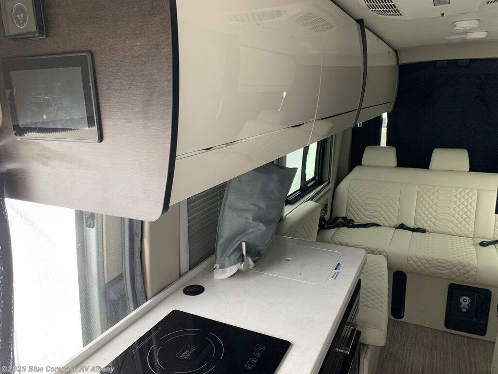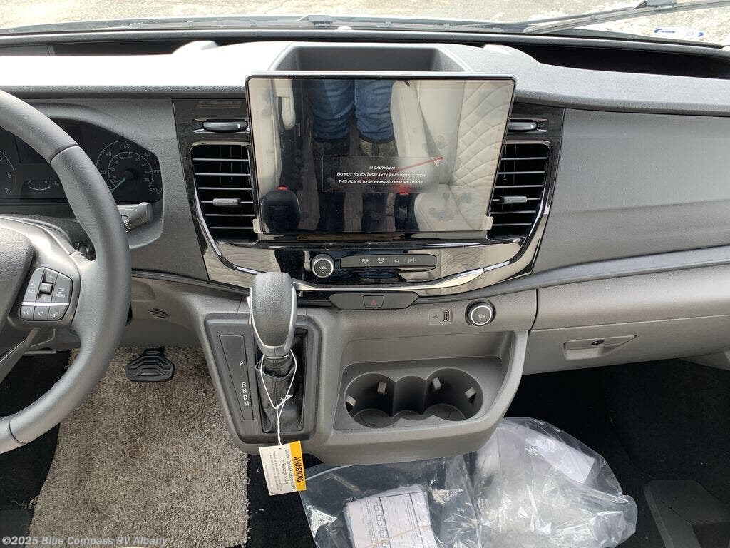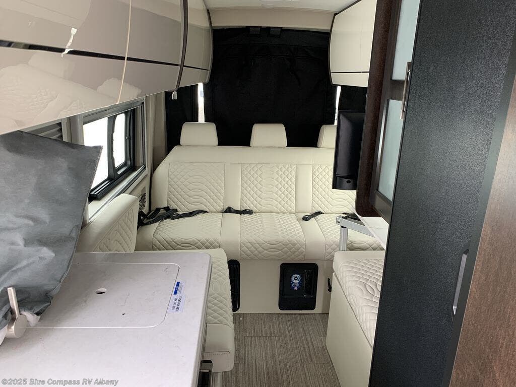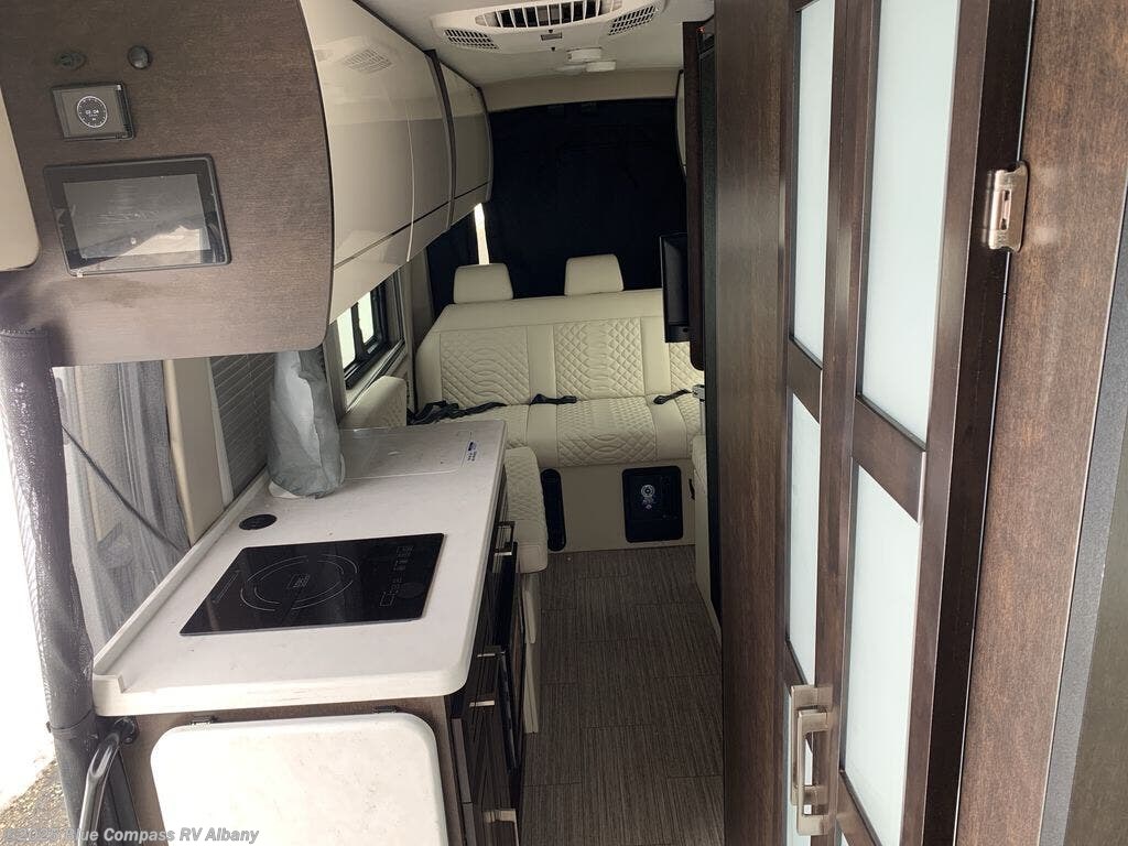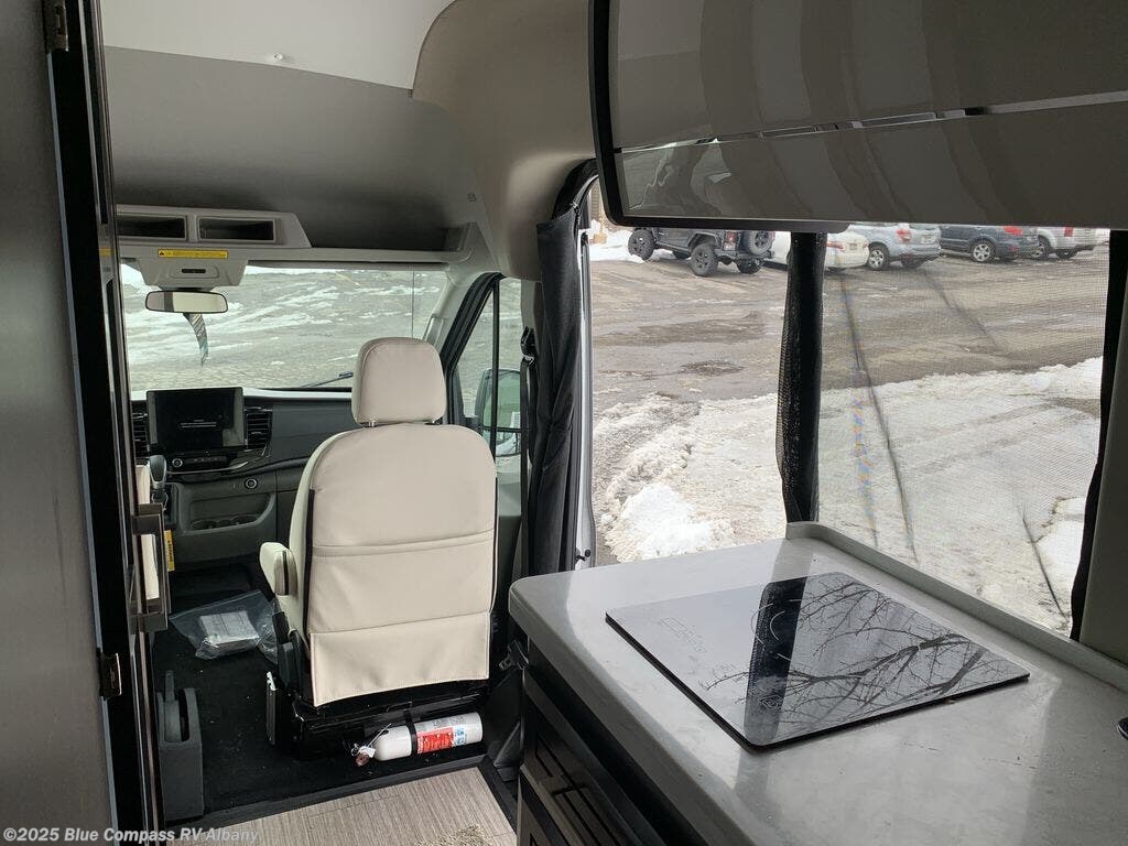 The Expanse brings you luxury, comfort, and safety all in an easy-to-drive Class B size. The rear 68" wide power sofa has plenty of space to stretch out, and two additional jump seats and a table mount make it comfortable enough for a few people to eat dinner or watch the 24" LED HD TV. You could also enjoy meals up front, where the driver and passenger seats can be swiveled around to access the table there. Conveniently, the kitchen is in the middle so no matter where you decide to eat, the table is only a few steps away! The wet bath is also centrally located, with a 25" x 46 3/4" shower, foot flush toilet, and Aqua View® SHOWERMI$ER™ water management system. Thoughtful design includes styling elements like the Tecnoform® European-style high-gloss cabinetry, residential vinyl flooring, and a removable privacy shade for the sliding door window.