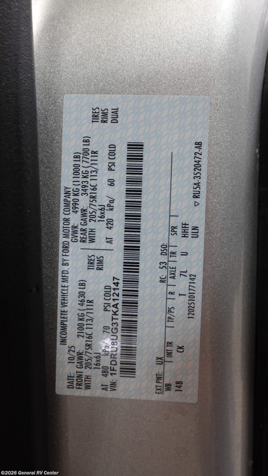 - VIN1FDRU8UG3TKA12147