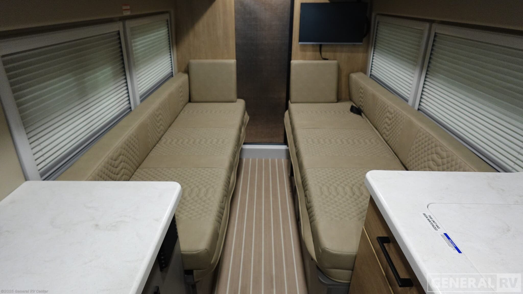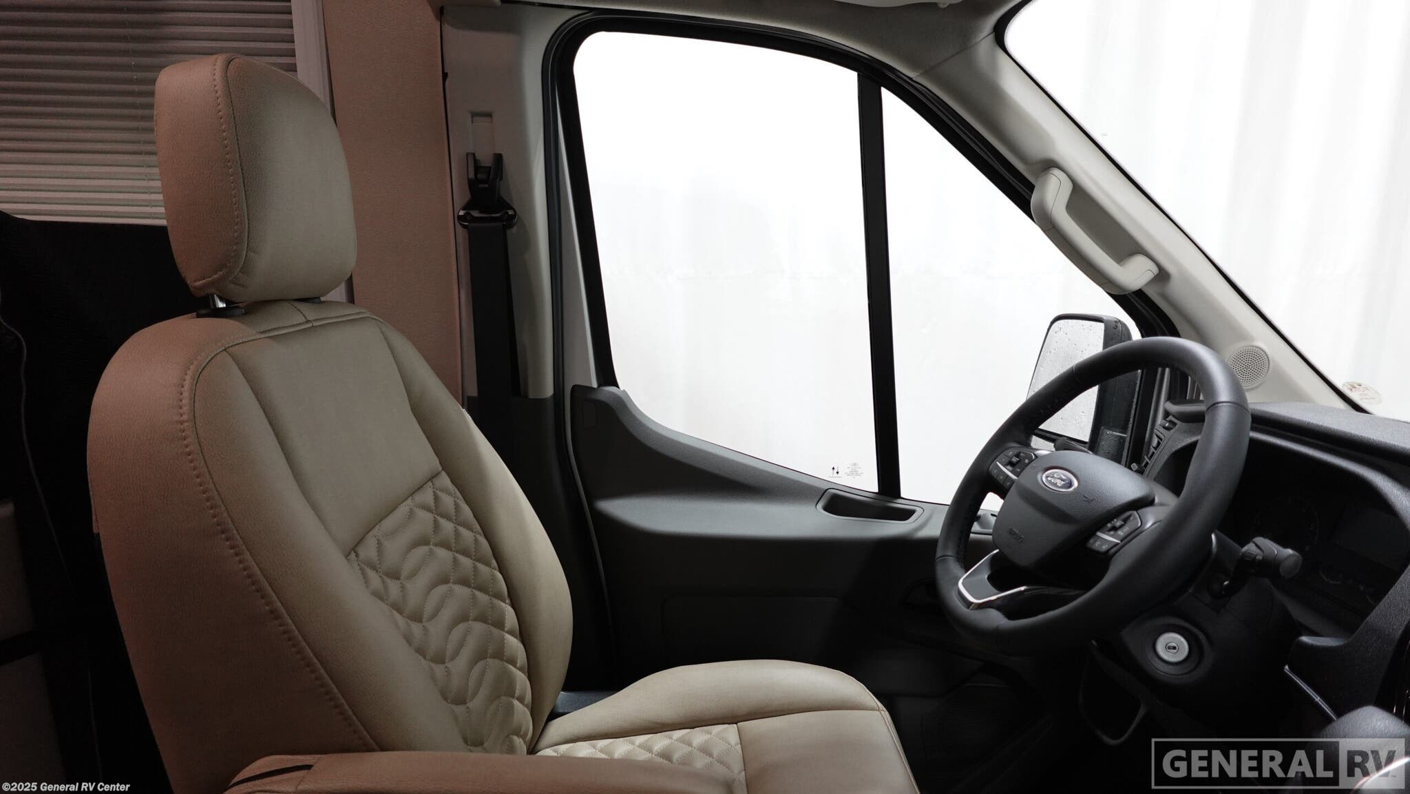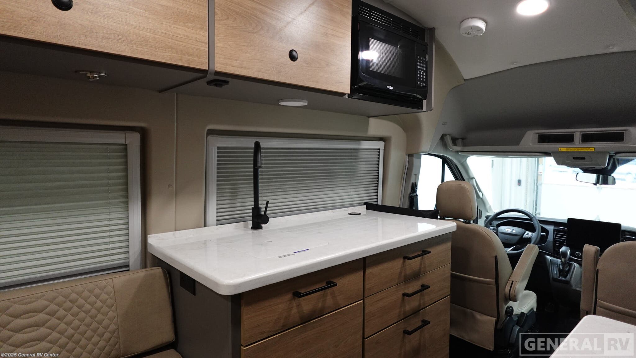 Step into the world of adventure with the Entegra Coach Expanse, a sleek and stylish Class B RV that combines modern design with practical functionality. Inside, the Expanse is a marvel of compact luxury. The interior features plush leather seating with elegant stitching that invites you to relax and unwind. The well-appointed kitchen area, with its gleaming white countertops and high-end fixtures, provides everything you need to create culinary delights on the go. High-gloss cabinetry; soft-close overhead cabinet doors provide ample storage. Modern appliances, including a microwave and sleek cabinetry with a natural wood finish, ensure a seamless living experience. Two twin beds that convert to a 61" x 76" bed make it the perfect retreat after a day of exploration. The 200W roof-mounted GoPower® solar panel with integrated control panel and portable solar plug, all-season tires with aluminum wheels, and Heavy-duty trailer tow package with dual 4/7 pin connector set this class B apart from the rest. Whether you're navigating city streets or exploring the great outdoors, the Entegra Coach Expanse is your ideal companion. With its blend of style, comfort, and convenience, this RV is ready to take you wherever your heart desires. For more details or to experience it firsthand, visit your nearest General RV dealership.