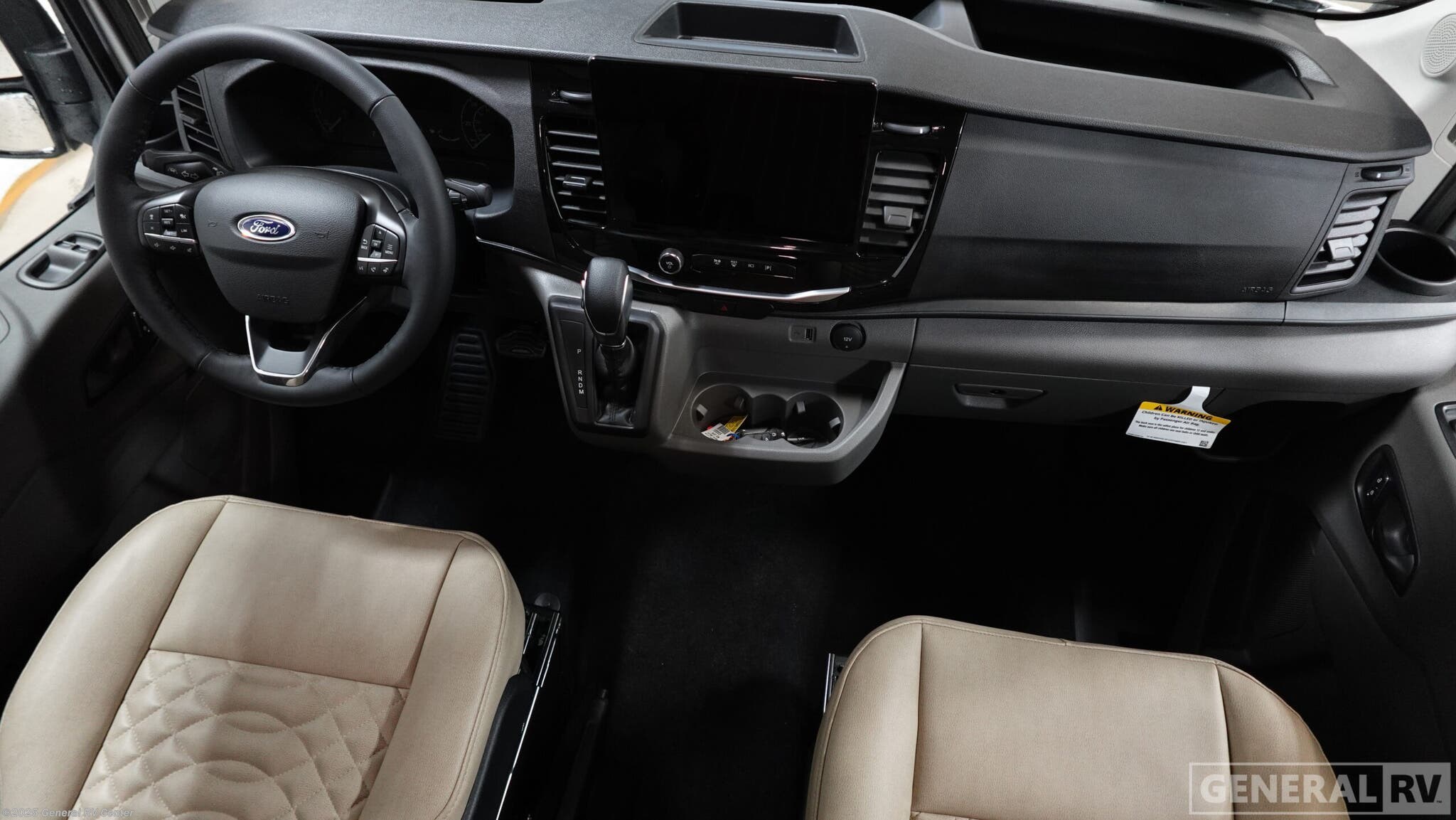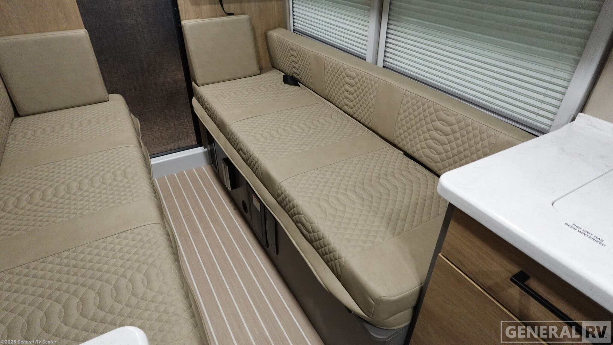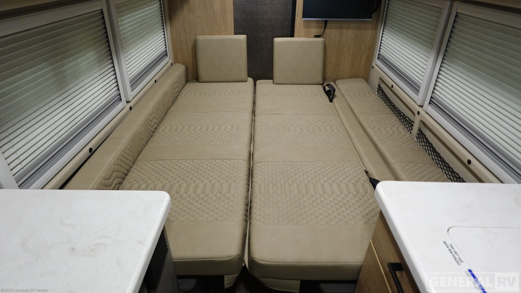 Step into the world of adventure with the Entegra Coach Expanse, a sleek and stylish Class B RV that combines modern design with practical functionality. Inside, the Expanse is a marvel of compact luxury. The interior features plush leather seating with elegant stitching that invites you to relax and unwind. The well-appointed kitchen area, with its gleaming white countertops and high-end fixtures, provides everything you need to create culinary delights on the go. High-gloss cabinetry; soft-close overhead cabinet doors provide ample storage. Modern appliances, including a microwave and sleek cabinetry with a natural wood finish, ensure a seamless living experience. Two twin beds that convert to a 61" x 76" bed make it the perfect retreat after a day of exploration. The 200W roof-mounted GoPower® solar panel with integrated control panel and portable solar plug, all-season tires with aluminum wheels, and Heavy-duty trailer tow package with dual 4/7 pin connector set this class B apart from the rest. Whether you're navigating city streets or exploring the great outdoors, the Entegra Coach Expanse is your ideal companion. With its blend of style, comfort, and convenience, this RV is ready to take you wherever your heart desires. For more details or to experience it firsthand, visit your nearest General RV dealership.