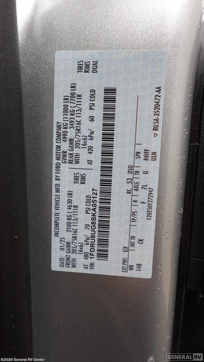 - VIN1FDRU8UG8SKA05127