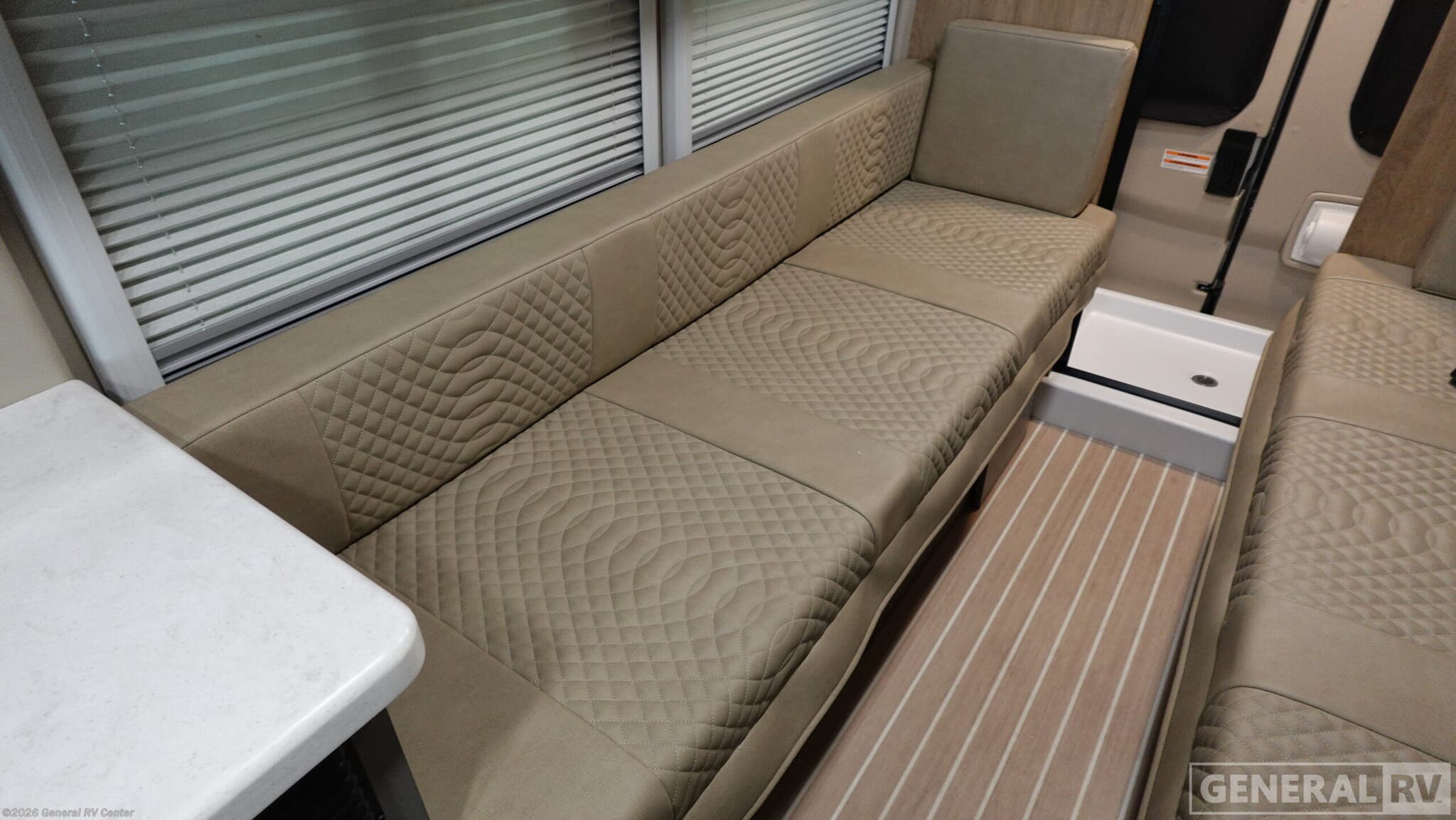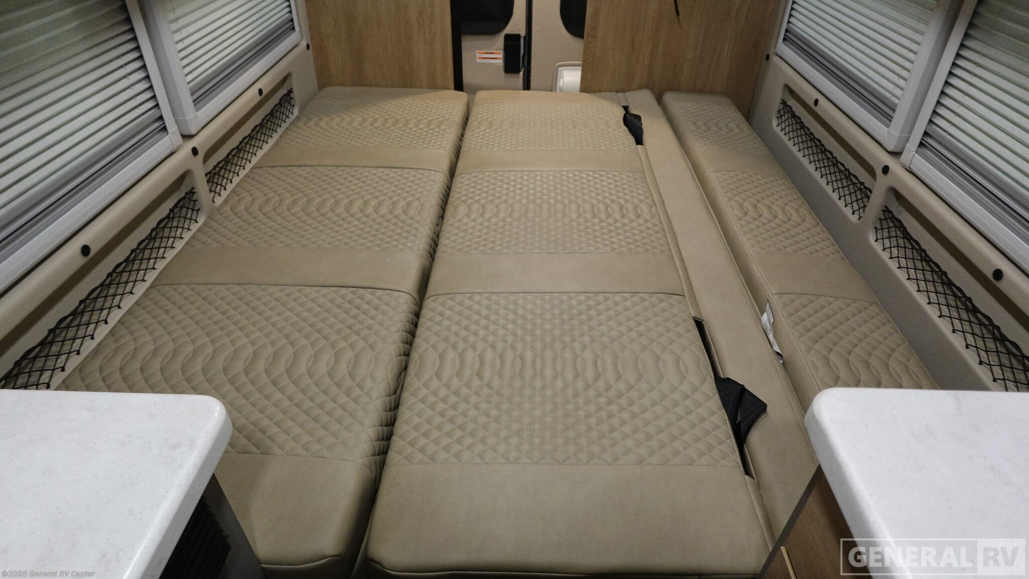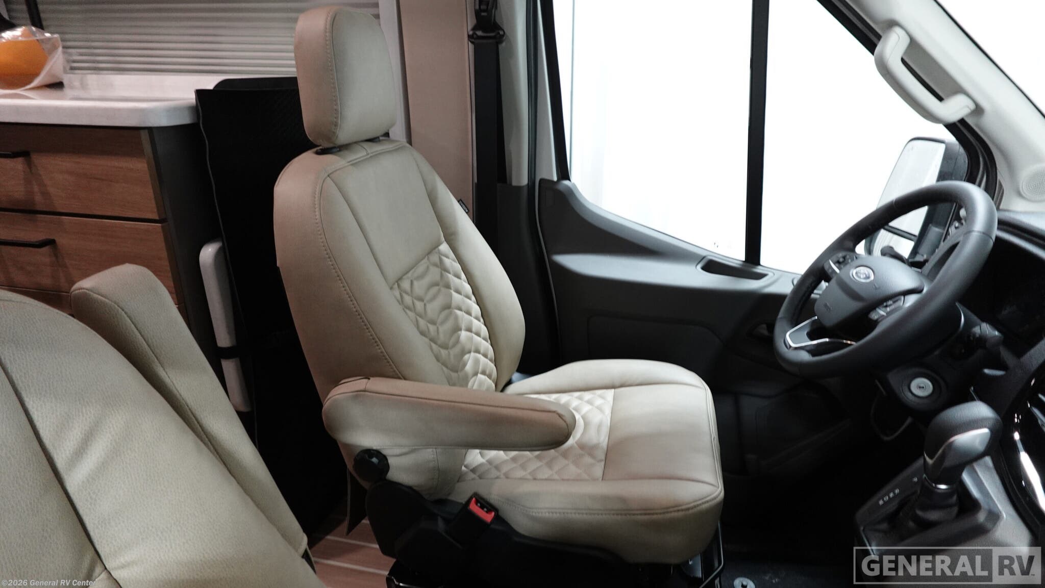 Entegra Coach Expanse Class B gas motorhome 21T highlights: -Two Twin beds -Flip up seat desk -25"x47" Wetbath -Swivel Driver and Passenger Seats -24" LED HD TV Step into the world of adventure with the Entegra Coach Expanse, a sleek and stylish Class B RV that combines modern design with practical functionality. Inside, the Expanse is a marvel of compact luxury. The interior features plush leather seating with elegant stitching that invites you to relax and unwind. The well-appointed kitchen area, with its gleaming white countertops and high-end fixtures, provides everything you need to create culinary delights on the go. High-gloss cabinetry; soft-close overhead cabinet doors provide ample storage. Modern appliances, including a microwave and sleek cabinetry with a natural wood finish, ensure a seamless living experience. Two twin beds that convert to a 61" x 76" bed make it the perfect retreat after a day of exploration. The 200W roof-mounted GoPower® solar panel with integrated control panel and portable solar plug, all-season tires with aluminum wheels, and Heavy-duty trailer tow package with dual 4/7 pin connector set this class B apart from the rest. Whether you're navigating city streets or exploring the great outdoors, the Entegra Coach Expanse is your ideal companion. With its blend of style, comfort, and convenience, this RV is ready to take you wherever your heart desires. For more details or to experience it firsthand, visit your nearest General RV dealership.