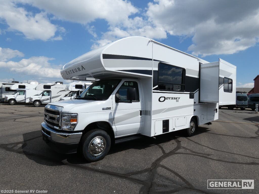Experience the perfect blend of comfort and adventure in the 2026 Entegra Coach Odyssey SE 22CF. This thoughtfully designed motorhome invites you to explore with ease, offering a spacious and inviting interior that comfortably sleeps up to six. With a cozy queen bed, a convertible dinette, and a double bed, there's room for the whole family to relax after a day of exploration. The center kitchen, equipped with a full-size electric refrigerator and a two-burner cooktop, ensures you can whip up your favorite meals on the road. The Odyssey SE 22CF boasts a clever layout with a front living area and a rear bath, providing privacy and convenience. The 13 ft. powered retractable awning extends your living space outdoors, perfect for enjoying the scenery or entertaining. Built on a robust Ford E350 chassis with a 325-horsepower engine, this RV is ready to take you on any journey with confidence. Whether you're seeking a weekend getaway or an extended road trip, the Odyssey SE 22CF is your ticket to an unforgettable adventure. For more information, visit your nearest General RV dealership.