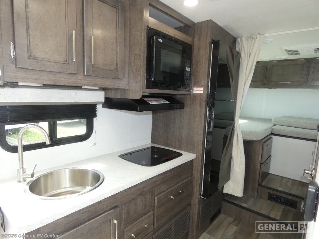 Experience the open road in style with the 2025 Entegra Coach Odyssey SE 22TF. This compact yet spacious RV is designed to make every journey comfortable and memorable. With a length of just under 25 feet, it offers the perfect balance of maneuverability and living space. The thoughtfully arranged floorplan features a front living area that seamlessly transitions into a central kitchen equipped with a full-size electric refrigerator and a convection microwave. The kitchen is perfect for preparing meals on the go, with a two-burner cooktop that ensures you can whip up your favorite dishes with ease. Sleeping up to six, the Odyssey SE 22TF boasts a versatile sleeping arrangement, including a cozy double bed, convertible spaces, and two bunks. The center bath is conveniently located and features a sleek plastic and glass shower, ensuring you stay refreshed during your travels. Outside, a 16-foot powered retractable awning provides ample shade for outdoor relaxation. Built on a robust Ford E350 chassis with a powerful 325-horsepower engine, this RV delivers both reliability and performance. Whether you're exploring new destinations or revisiting favorite spots, the Odyssey SE 22TF is your perfect travel companion. For more details, visit your nearest General RV dealership today!