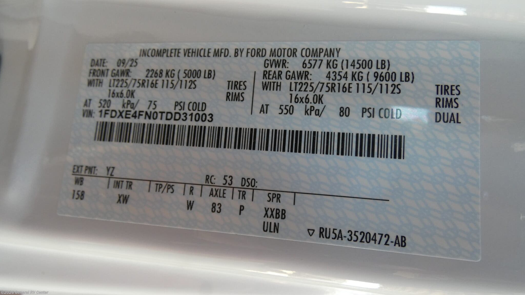 - VIN1FDXE4FN0TDD31003