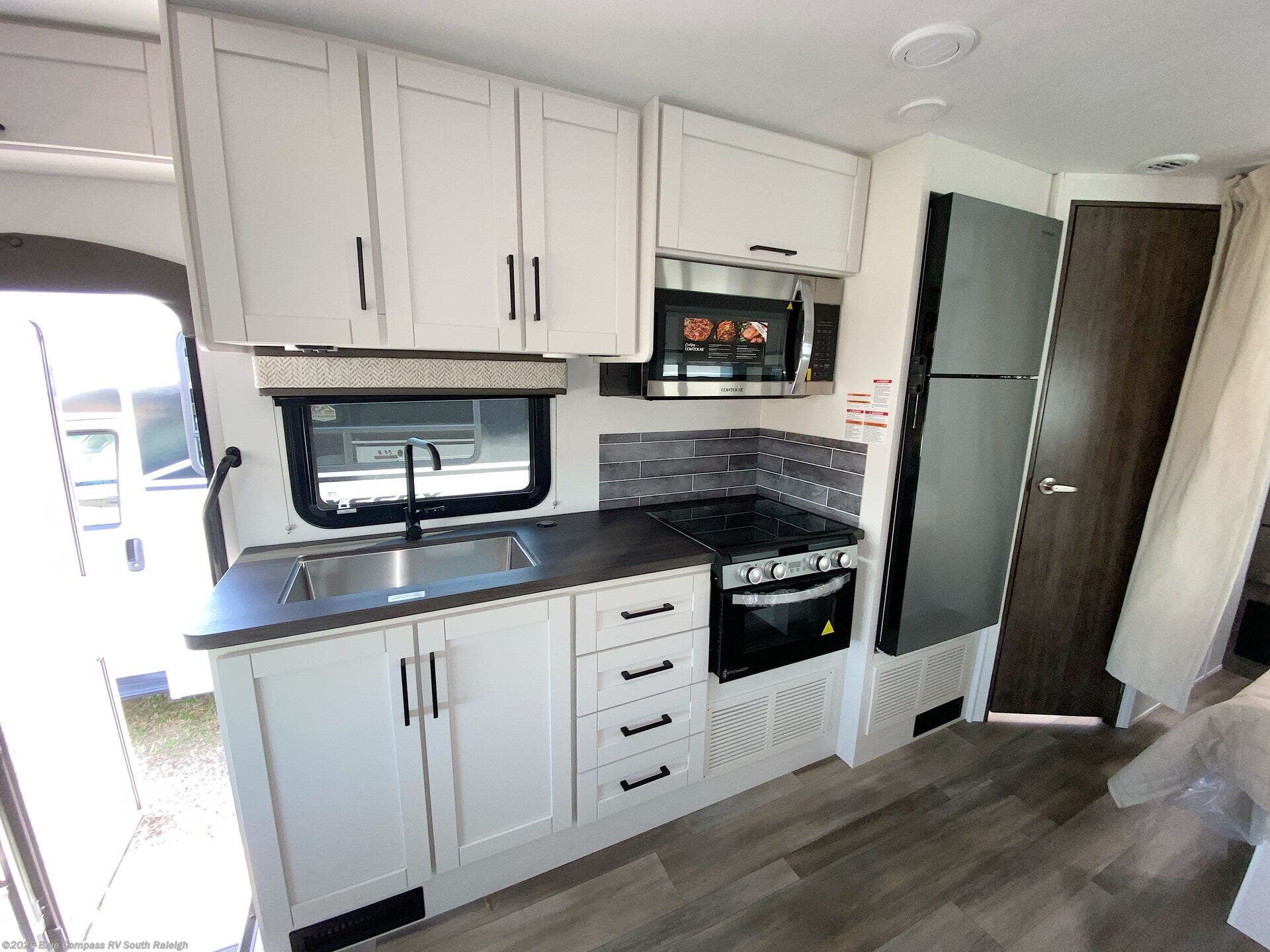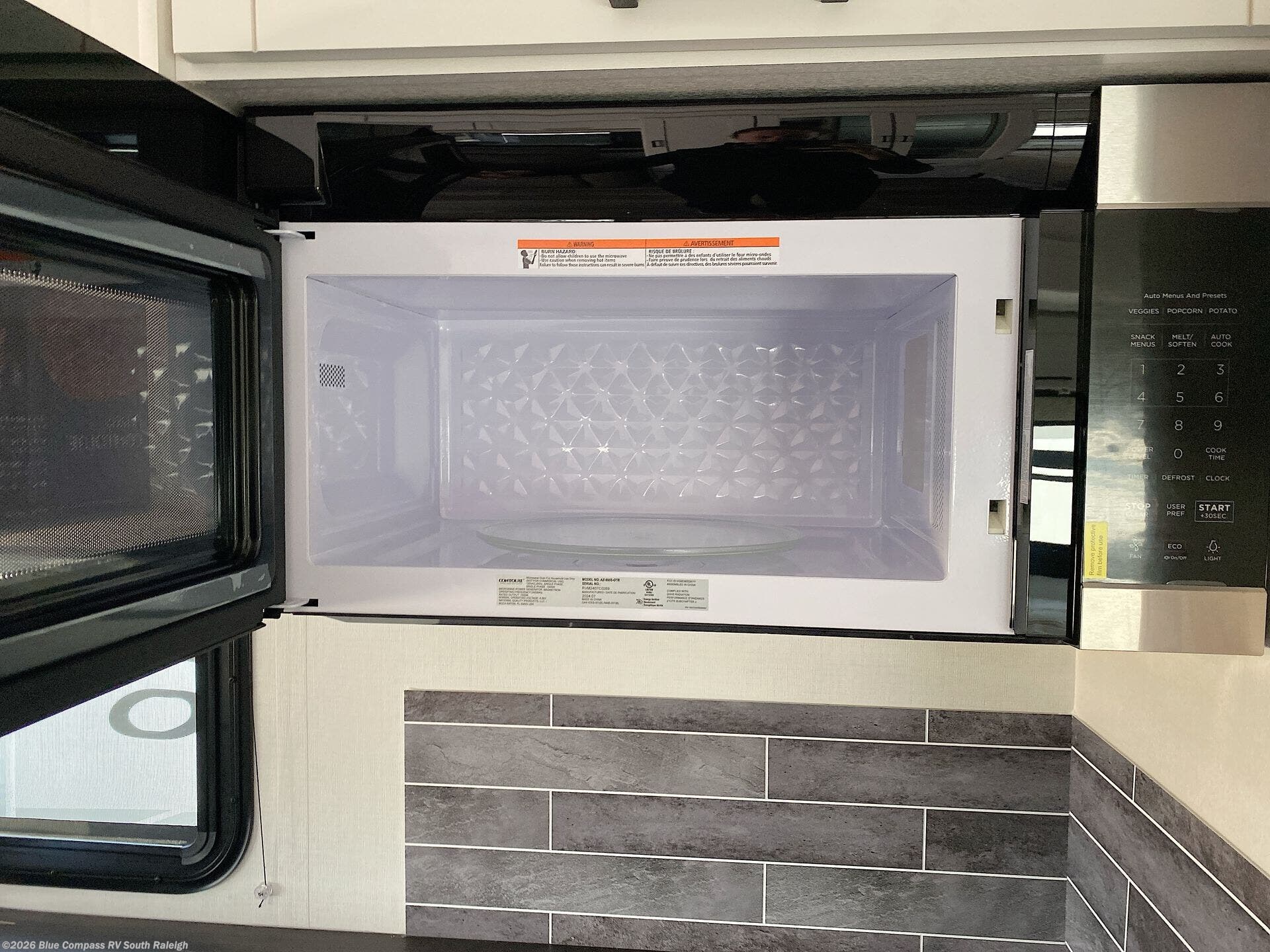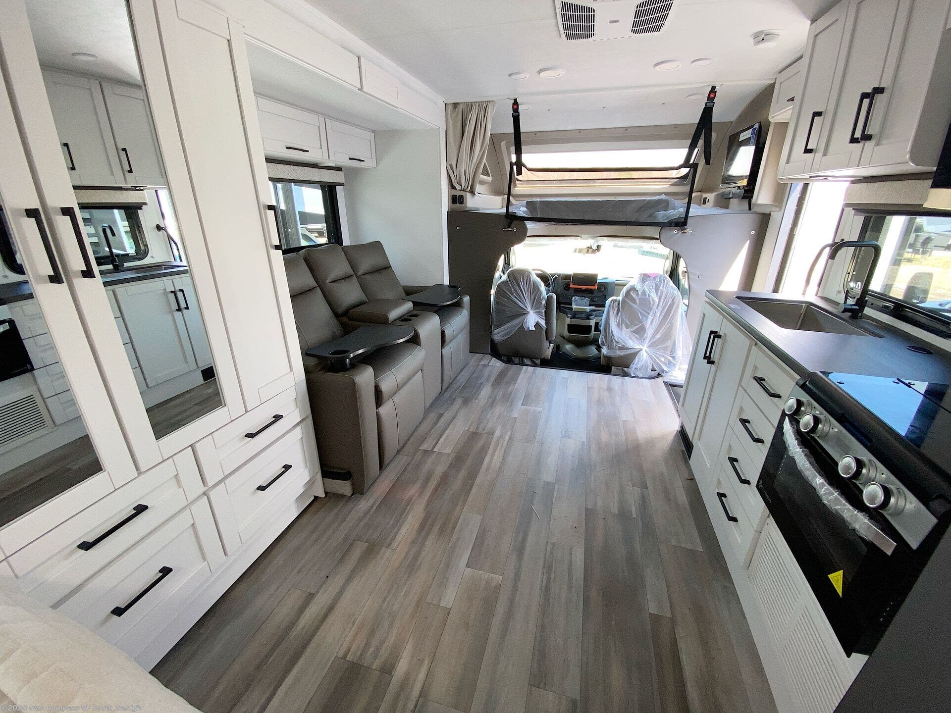 With any Odyssey Class C gas motorhome by Entegra Coach, the driver will appreciate the power from the 325 HP engine, the towing capacity from the 7,500 lb. hitch, the tire pressure monitoring system, the navigation from the Sony infotainment center with Apple CarPlay and Android Auto, plus the backup and side-view cameras when parking and driving down the highway. The kitchen offers full amenities including a recessed stainless steel sink with a cutting board sink cover, LED-lit countertops, a decorative backsplash, and a pop-up charging station with 110 outlet and USB plugs to keep your smart phones charged. Get ready for luxury in a Class C, choose your favorite today!