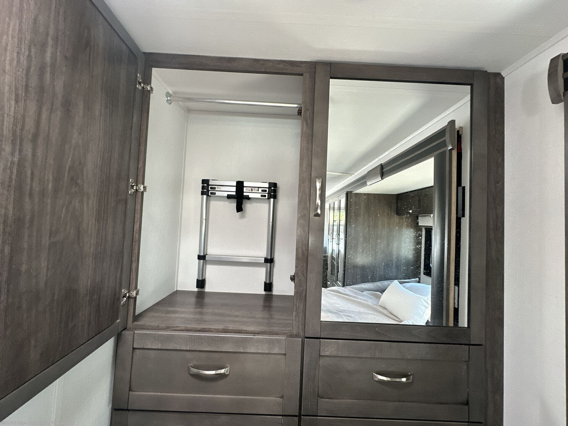 Looking to travel to see family and friends while stopping along the way to take in the scenery? Need comfortable accommodations for you and another plus extra sleeping space when you have overnight guests? This coach provides a full-wall slide for more interior floor space and includes a queen bed for a good night's sleep, a wardrobe for clothing, plus a U-shaped dinette and pantry. The dinette doubles as sleeping space, plus you have a cab-over bunk. The cook will have everything nearby to whip up meals including a residential-size microwave, and the full bathroom allows everyone to skip the public facilities along the way.