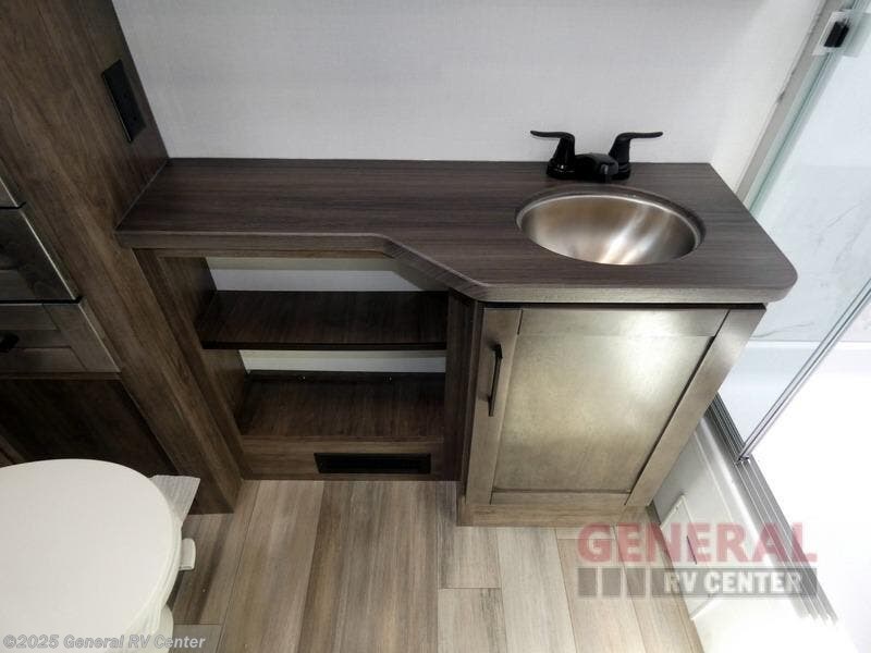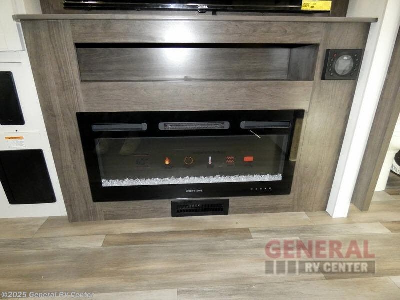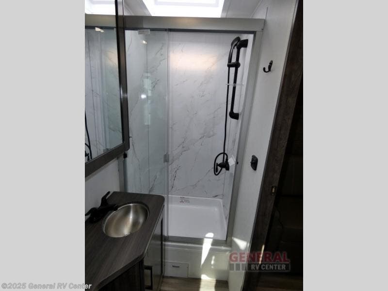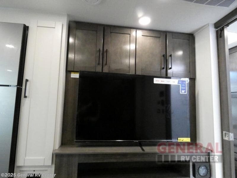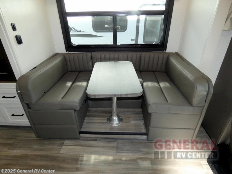 Enjoy a whole lot of comfort, fun and versatility in this coach! The queen Murphy bed and sofa combination allows you to convert between a living area and a bedroom, with a fireplace and an LED HD Smart TV. Outside, the exterior TV and 19' electric awning provide you an outdoor living space to enjoy nature and its beauty. The inside also provides a rear full bathroom including a space saving sliding door, linen storage, counter space for toiletries and a shower. You can dine at the U-shaped dinette or while sitting on the swivel captains chairs, and the cab-over bunk will be a perfect place to stay the night.