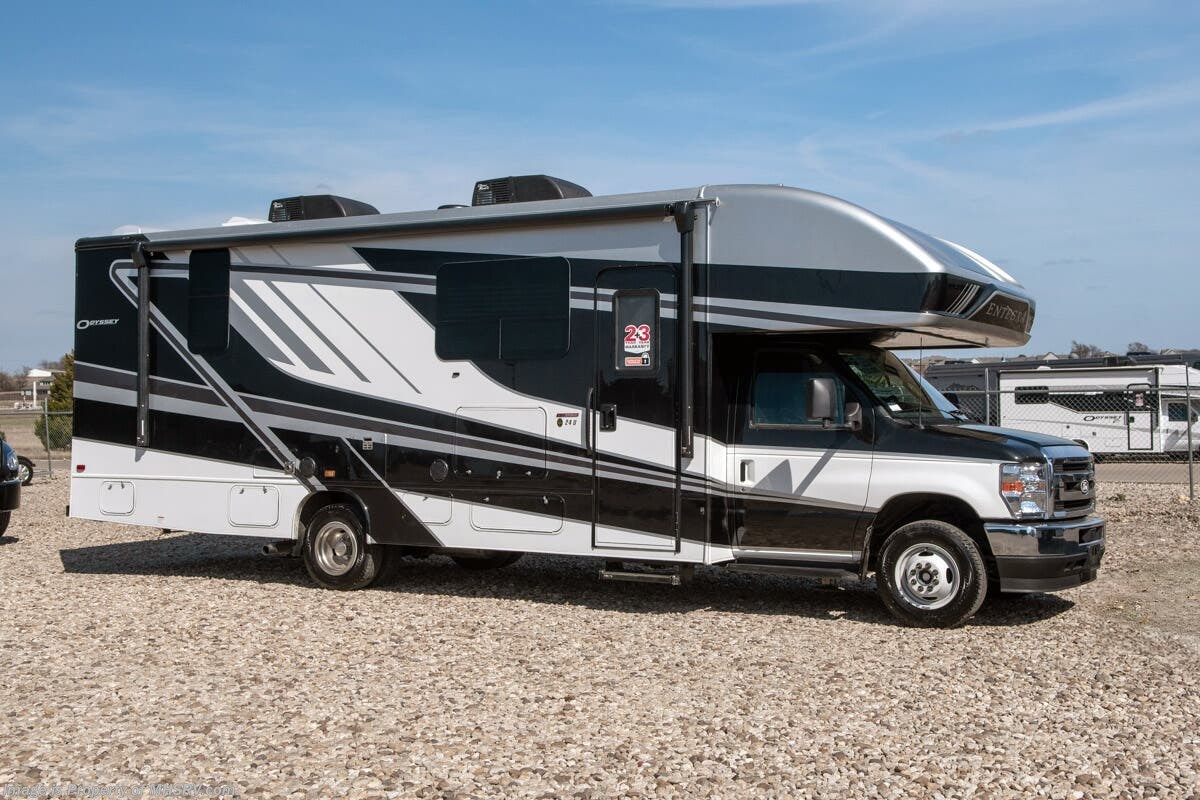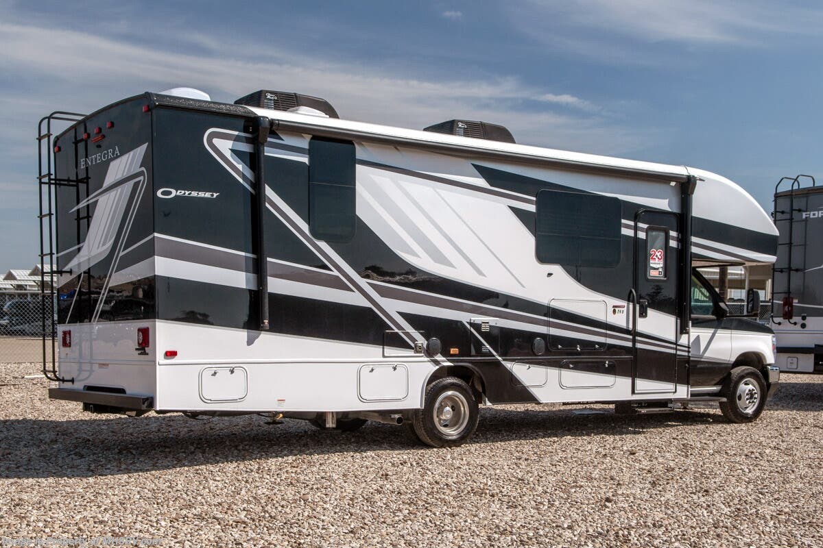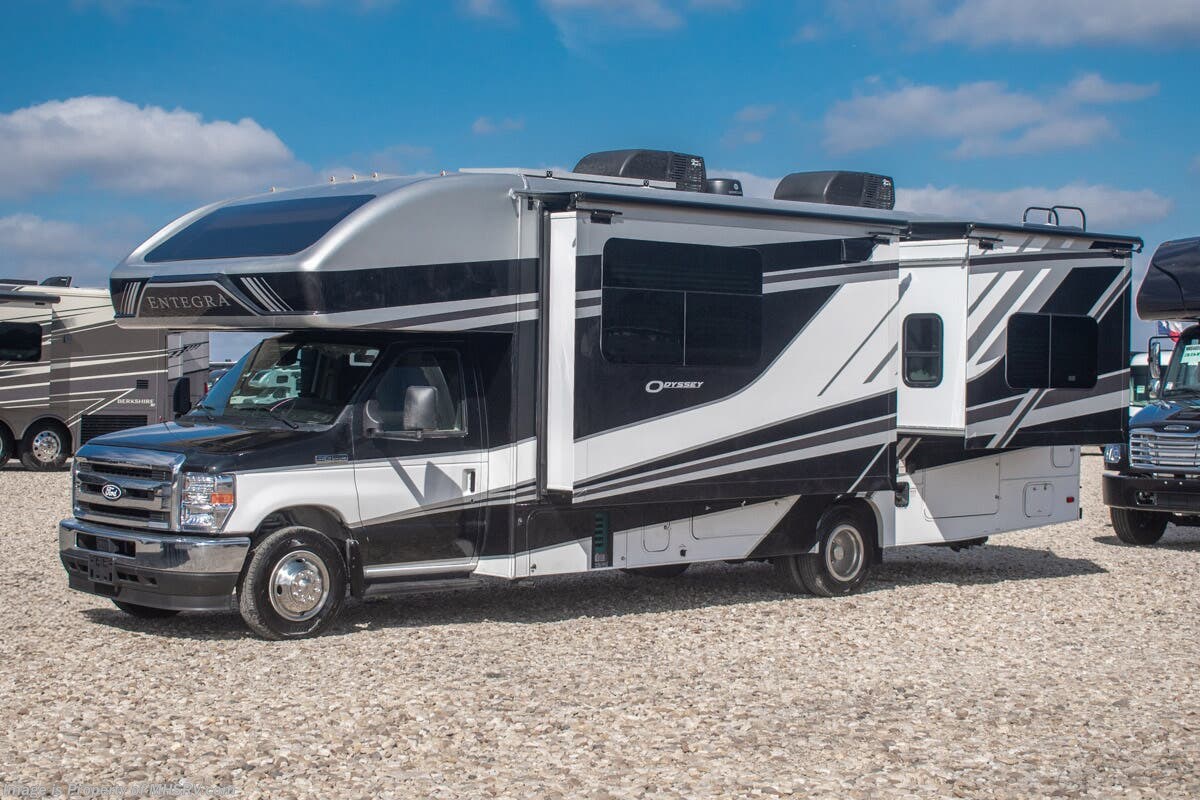 - Theater Seating Shop hundreds of motorhomes including Class C RVs at MHSRV! Choose from Fleetwood Altitude - Gulf Stream BT Cruiser - Thor Chateau - Four Winds - Geneva and Quantum - Entegra Coach Odyssey Odyssey SE and Esteem - East to West Entrada - Forest River Forester - Forester LE - Nexus Phantom - Viper and much more. We also sell quality pre-owned models such as Jayco Greyhawk – Redhawk - Redhawk SE - Thor Magnitude - Winnebago Spirit - and Minnie Winnie - Coachmen Freelander and Leprechaun - Forest River Sunseeker Classic - Sunseeker LE – Solera - Holiday Rambler Incline and much more. Visit for our complete line-up and the sale prices that have made us the #1 volume selling motor home dealership in the world 12 years in a row! About This RV The Odyssey features a one-piece seamless fiberglass roof, front and rear stabilizer bars, Hellwig Helper springs, and the all-new Ford® V8 and E-450 chassis. You will also love the Entegra Coach Odyssey's amazing molded front fiberglass cap that distinguishes this class C from any other on the market today. The distinctive design also enables the front cab-over to feature a huge built-in skylight with power shade. Just push a button and let Mother Nature light up the beautiful interior décor and gaze at the stars at the end of a fun-filled day. About Us For more details on this unit, our full inventory, brochures, window stickers, videos, photos, and customer reviews, visit or call 800-335-6054 for the Texas location or 334-288-0331 for our Alabama location. At Motor Home Specialist, we never charge prep or orientation fees. Every new RV sale includes a multi-point inspection, full interior and exterior detail. At our Texas location we also offer a high-pressure rain booth test—an exclusive service in the industry. You'll also receive a comprehensive coach orientation with an MHSRV technician and a complimentary night in our delivery park with full hook-ups at our Texas Location. --Why Pay More? Why Settle for Less?—