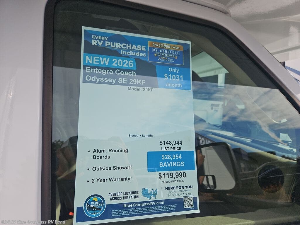 Request More Info on this 2026 Entegra Coach Odyssey 29FK Offered for sale by Blue Compass RV Bend