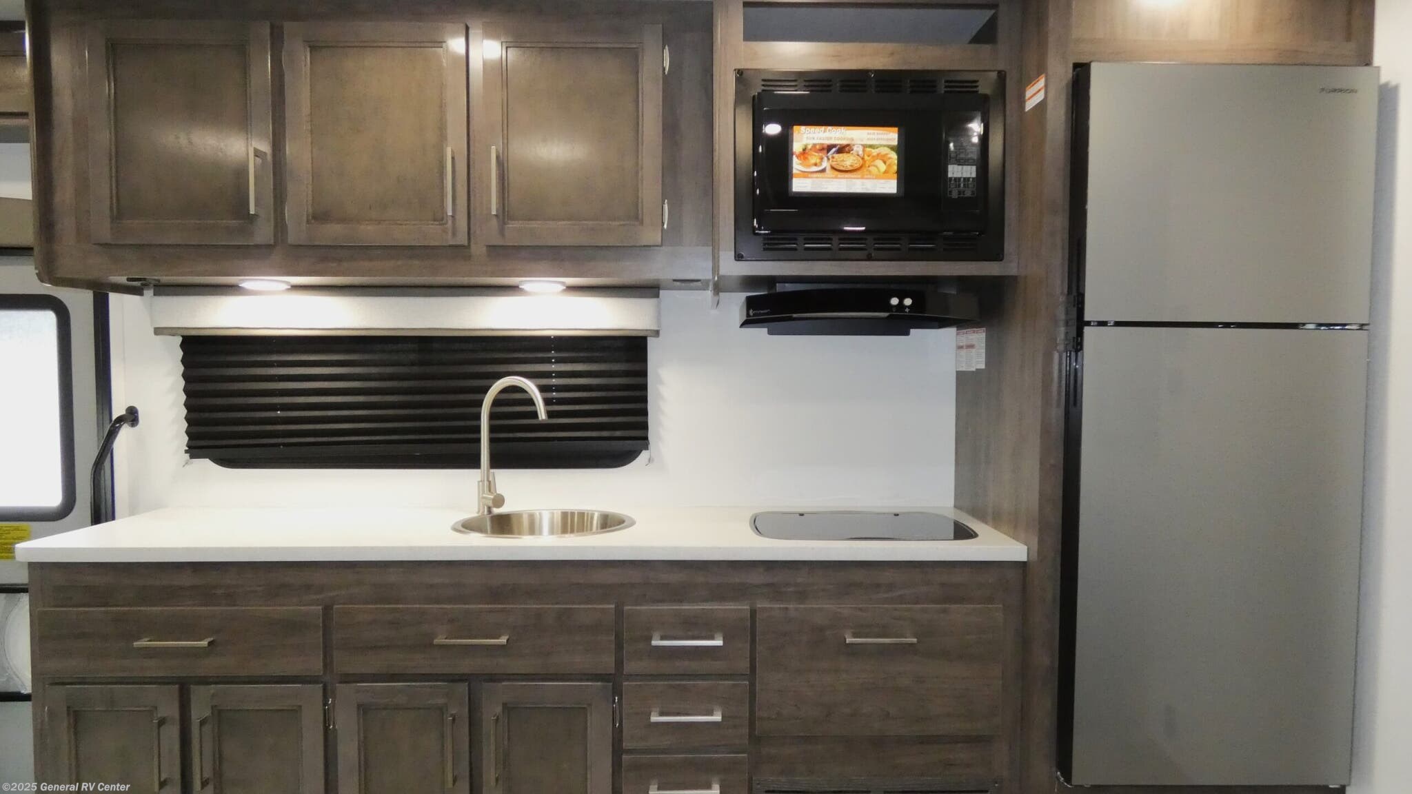 When you step into the Entegra Coach Odyssey, you're choosing more than a Class C motorhome—you're stepping into a refined RV experience built with premium touches, thoughtful safety, and signature Entegra Coach craftsmanship. The Odyssey sets itself apart from the others with sleek, frameless windows that offer a modern, automotive look while extending the life of your seals by shielding them from sun damage—helping you stay on the road longer and in the shop less. Confidence comes standard thanks to integrated side-view cameras that provide full visibility down both sides of the coach while turning or changing lanes. The E-Z Drive ride and handling package elevates your driving experience with features such as a computer-balanced driveshaft, front and rear stabilizer bars, Hellwig® helper springs and rubber isolation body mounts—delivering a quiet, stable ride from start to finish. Up front, the one-piece seamless front cap—a unique feature in its class—reduces the risk of water intrusion where Class Cs are most vulnerable. An automotive-bonded panoramic window in the cap brightens the overhead bunk with natural light and expansive views, making every stop even more scenic. Comfort is key on the Odyssey, and temperature control is a breeze with a standard 15,000 BTU ducted A/C, or an available upgrade to dual 13,500 BTU units paired with an advanced power management system. No matter the forecast, your interior stays comfortable and cool. Inside, you'll find the kind of quality Entegra Coach is known for—hardwood cabinet doors and drawers, clean finishes with reduced visible stiles, and a full-size residential microwave that brings home convenience on the road. The exclusive legless dinette table transitions seamlessly from mealtime to bedtime and is equipped with child safety tethers for peace of mind on family trips. The 9-inch Sony® infotainment system with Apple CarPlay®, Android Auto™ and tilt adjustment keeps your navigation, music, and communication within easy reach, helping you stay focused behind the wheel. With its elevated styling, intelligent design, and rock-solid engineering, the Odyssey delivers the first-class Class C experience Entegra Coach owners expect—ready for adventure and built to last.