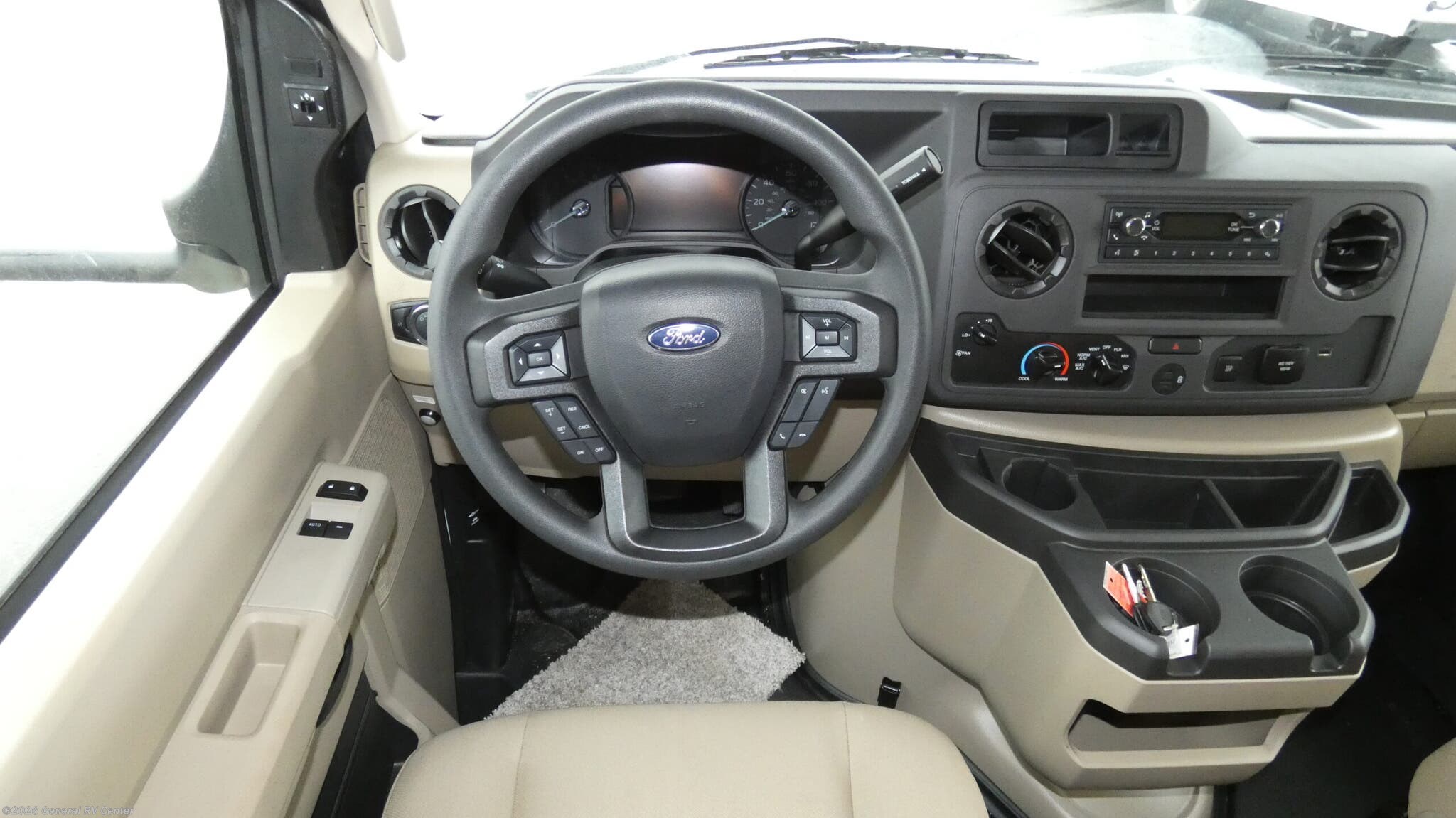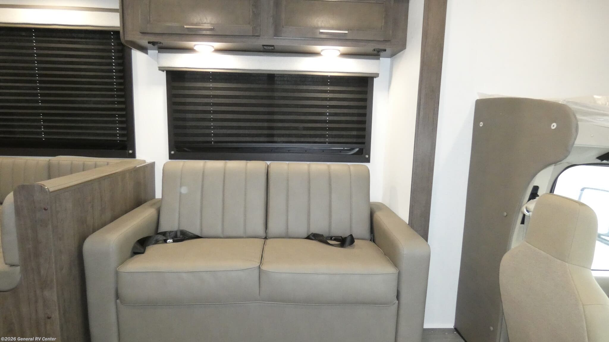 When you step into the Entegra Coach Odyssey, you're choosing more than a Class C motorhome—you're stepping into a refined RV experience built with premium touches, thoughtful safety, and signature Entegra Coach craftsmanship. The Odyssey sets itself apart from the others with sleek, frameless windows that offer a modern, automotive look while extending the life of your seals by shielding them from sun damage—helping you stay on the road longer and in the shop less. Confidence comes standard thanks to integrated side-view cameras that provide full visibility down both sides of the coach while turning or changing lanes. The E-Z Drive ride and handling package elevates your driving experience with features such as a computer-balanced driveshaft, front and rear stabilizer bars, Hellwig® helper springs and rubber isolation body mounts—delivering a quiet, stable ride from start to finish. Up front, the one-piece seamless front cap—a unique feature in its class—reduces the risk of water intrusion where Class Cs are most vulnerable. An automotive-bonded panoramic window in the cap brightens the overhead bunk with natural light and expansive views, making every stop even more scenic. Comfort is key on the Odyssey, and temperature control is a breeze with a standard 15,000 BTU ducted A/C, or an available upgrade to dual 13,500 BTU units paired with an advanced power management system. No matter the forecast, your interior stays comfortable and cool. Inside, you'll find the kind of quality Entegra Coach is known for—hardwood cabinet doors and drawers, clean finishes with reduced visible stiles, and a full-size residential microwave that brings home convenience on the road. The exclusive legless dinette table transitions seamlessly from mealtime to bedtime and is equipped with child safety tethers for peace of mind on family trips. The 9-inch Sony® infotainment system with Apple CarPlay®, Android Auto™ and tilt adjustment keeps your navigation, music, and communication within easy reach, helping you stay focused behind the wheel. With its elevated styling, intelligent design, and rock-solid engineering, the Odyssey delivers the first-class Class C experience Entegra Coach owners expect—ready for adventure and built to last.