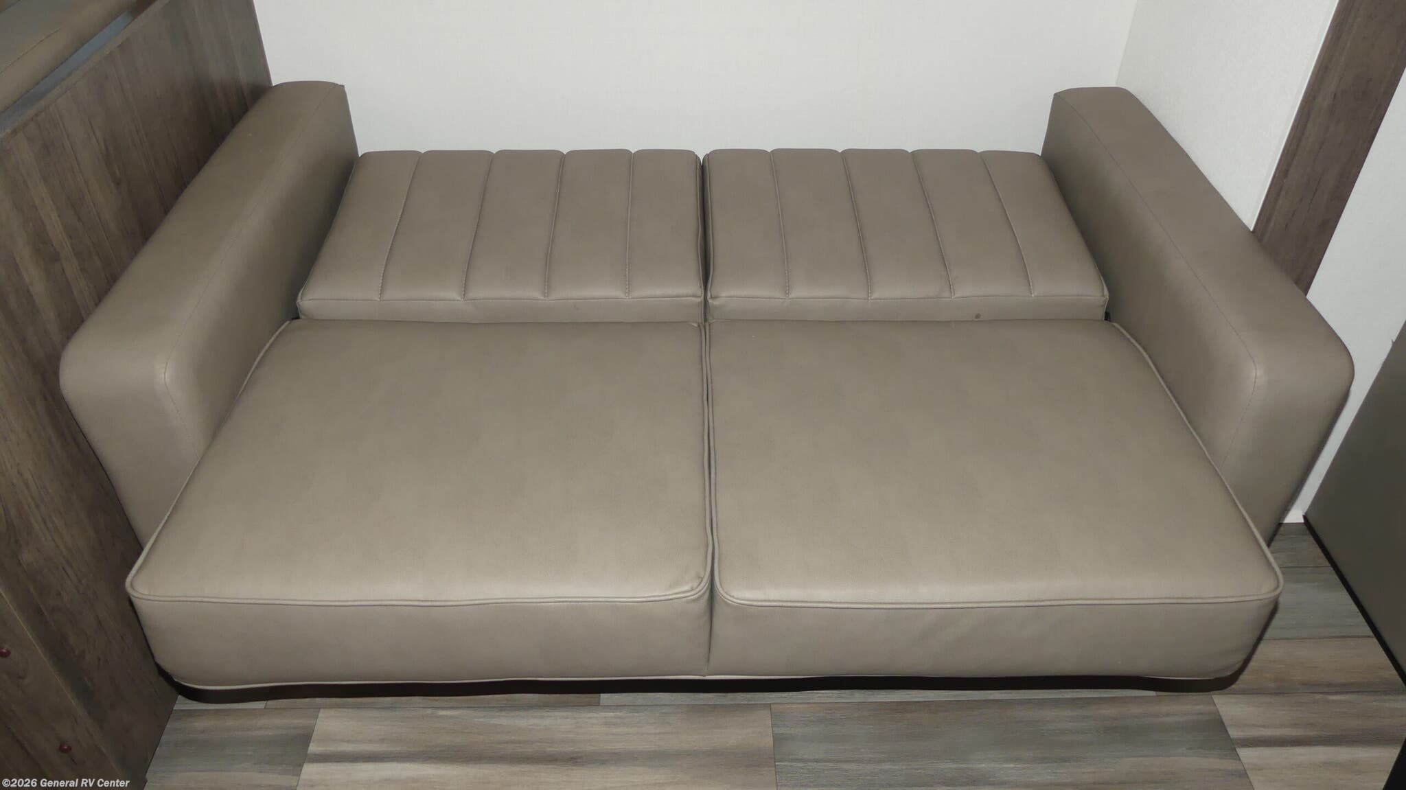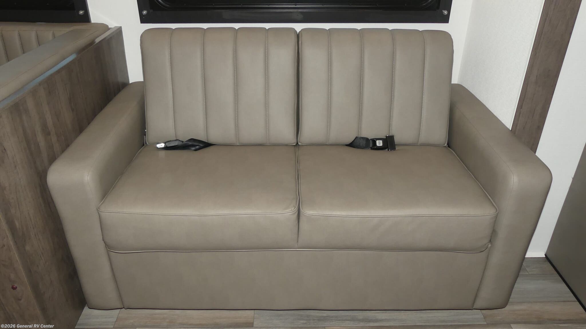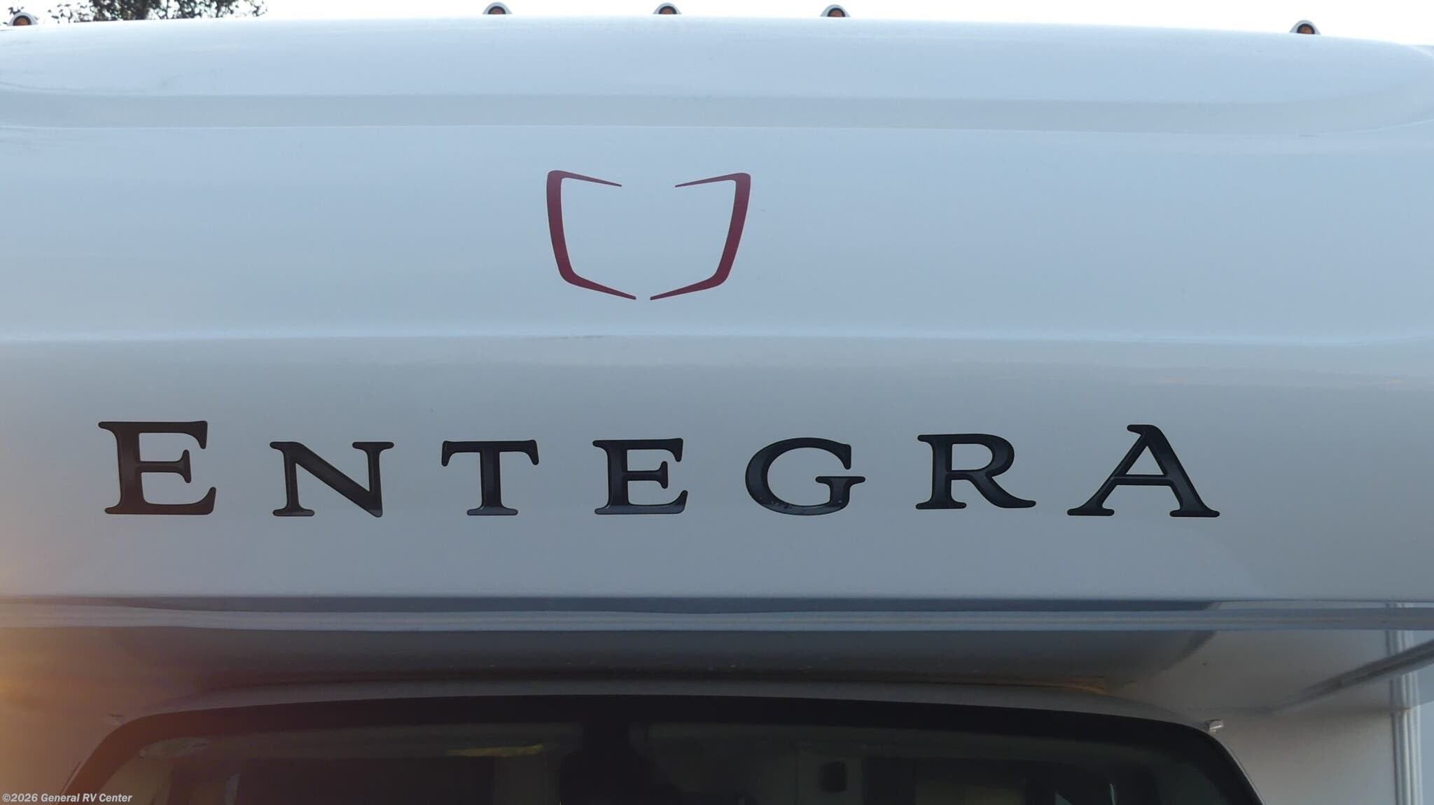 When you step into the Entegra Coach Odyssey, you're choosing more than a Class C motorhome—you're stepping into a refined RV experience built with premium touches, thoughtful safety, and signature Entegra Coach craftsmanship. The Odyssey sets itself apart from the others with sleek, frameless windows that offer a modern, automotive look while extending the life of your seals by shielding them from sun damage—helping you stay on the road longer and in the shop less. Confidence comes standard thanks to integrated side-view cameras that provide full visibility down both sides of the coach while turning or changing lanes. The E-Z Drive ride and handling package elevates your driving experience with features such as a computer-balanced driveshaft, front and rear stabilizer bars, Hellwig® helper springs and rubber isolation body mounts—delivering a quiet, stable ride from start to finish. Up front, the one-piece seamless front cap—a unique feature in its class—reduces the risk of water intrusion where Class Cs are most vulnerable. An automotive-bonded panoramic window in the cap brightens the overhead bunk with natural light and expansive views, making every stop even more scenic. Comfort is key on the Odyssey, and temperature control is a breeze with a standard 15,000 BTU ducted A/C, or an available upgrade to dual 13,500 BTU units paired with an advanced power management system. No matter the forecast, your interior stays comfortable and cool. Inside, you'll find the kind of quality Entegra Coach is known for—hardwood cabinet doors and drawers, clean finishes with reduced visible stiles, and a full-size residential microwave that brings home convenience on the road. The exclusive legless dinette table transitions seamlessly from mealtime to bedtime and is equipped with child safety tethers for peace of mind on family trips. The 9-inch Sony® infotainment system with Apple CarPlay®, Android Auto™ and tilt adjustment keeps your navigation, music, and communication within easy reach, helping you stay focused behind the wheel. With its elevated styling, intelligent design, and rock-solid engineering, the Odyssey delivers the first-class Class C experience Entegra Coach owners expect—ready for adventure and built to last.