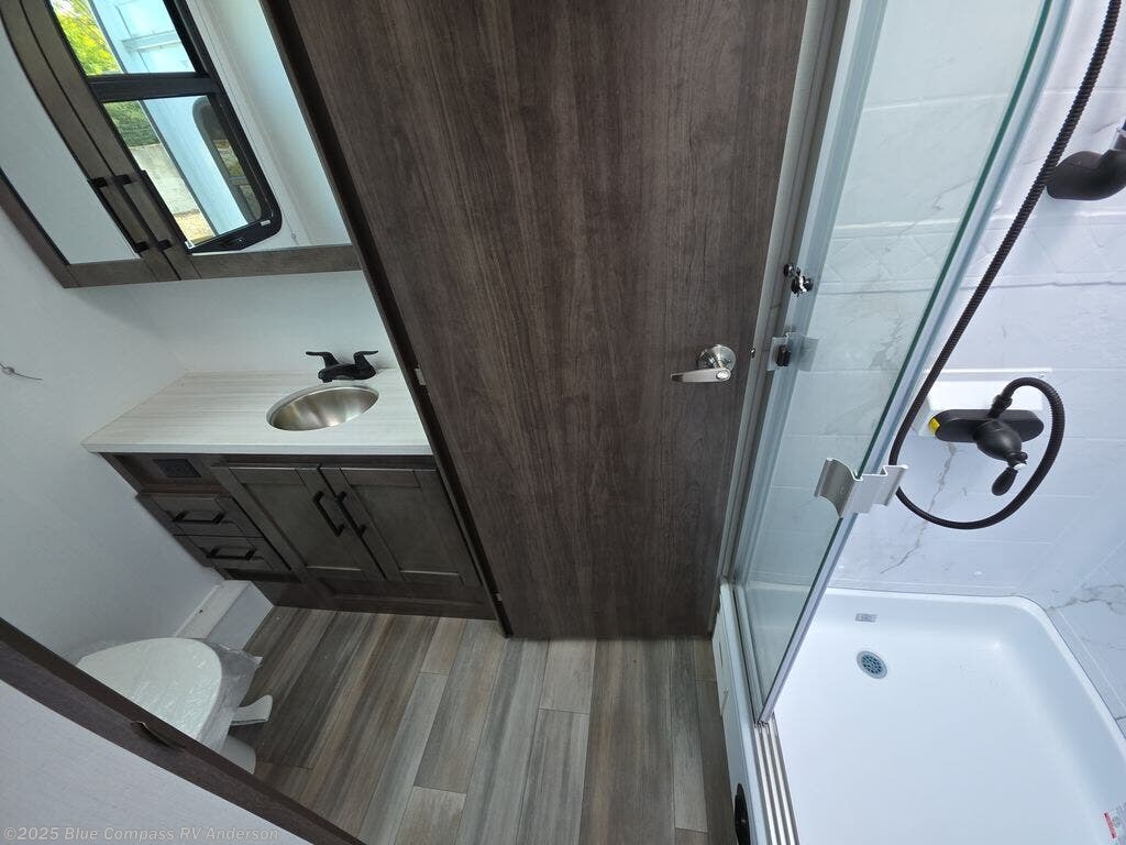 This coach allows you to take vacations in comfort and luxury with a spacious bedroom that includes a queen bed slide, dual wardrobes and a TV option for nighttime viewing, plus a way to close off the bedroom for privacy. The split bathroom gives you the ability to take a shower while another is brushing their teeth in the private toilet and sink room. You will find the main living and kitchen area to be spacious as well with a slide out that includes a booth dinette and sofa. And the cook will love the galley kitchen including the residential-size microwave and Furrion all-in-one cooktop and oven. And the cab-over bunk plus the furniture offers extra sleeping space. There are many more features to enjoy, take a look!