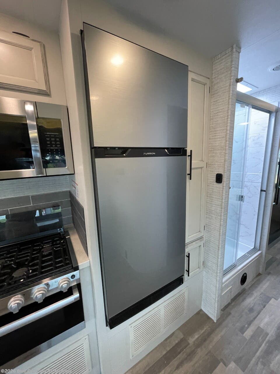 This coach allows you to take vacations in comfort and luxury with a spacious bedroom that includes a queen bed slide, dual wardrobes and a TV option for nighttime viewing, plus a way to close off the bedroom for privacy. The split bathroom gives you the ability to take a shower while another is brushing their teeth in the private toilet and sink room. You will find the main living and kitchen area to be spacious as well with a slide out that includes a booth dinette and sofa. And the cook will love the galley kitchen including the residential-size microwave and Furrion all-in-one cooktop and oven. And the cab-over bunk plus the furniture offers extra sleeping space. There are many more features to enjoy, take a look!