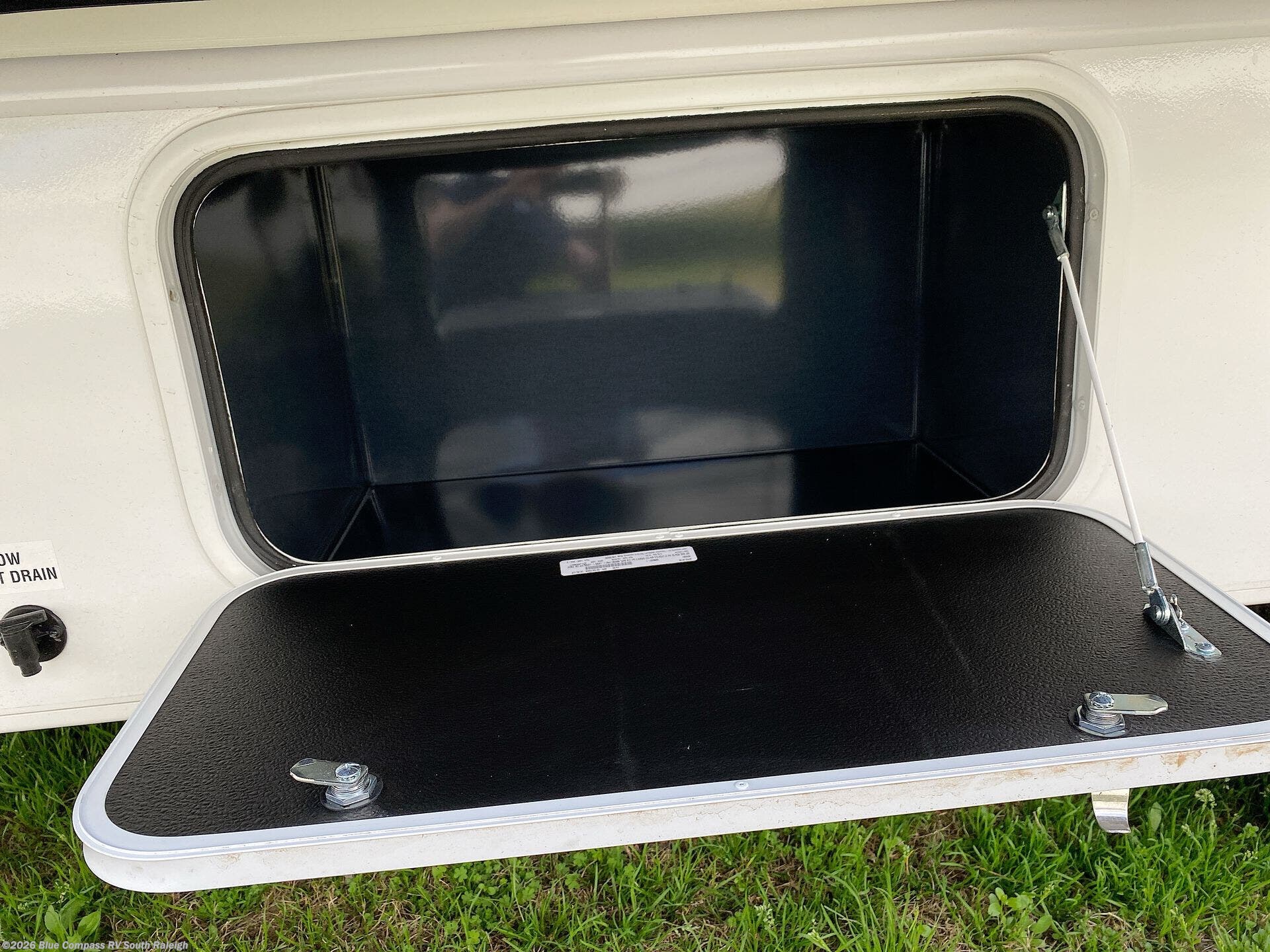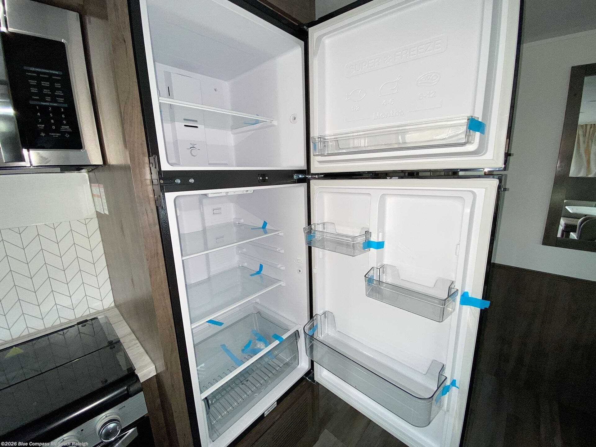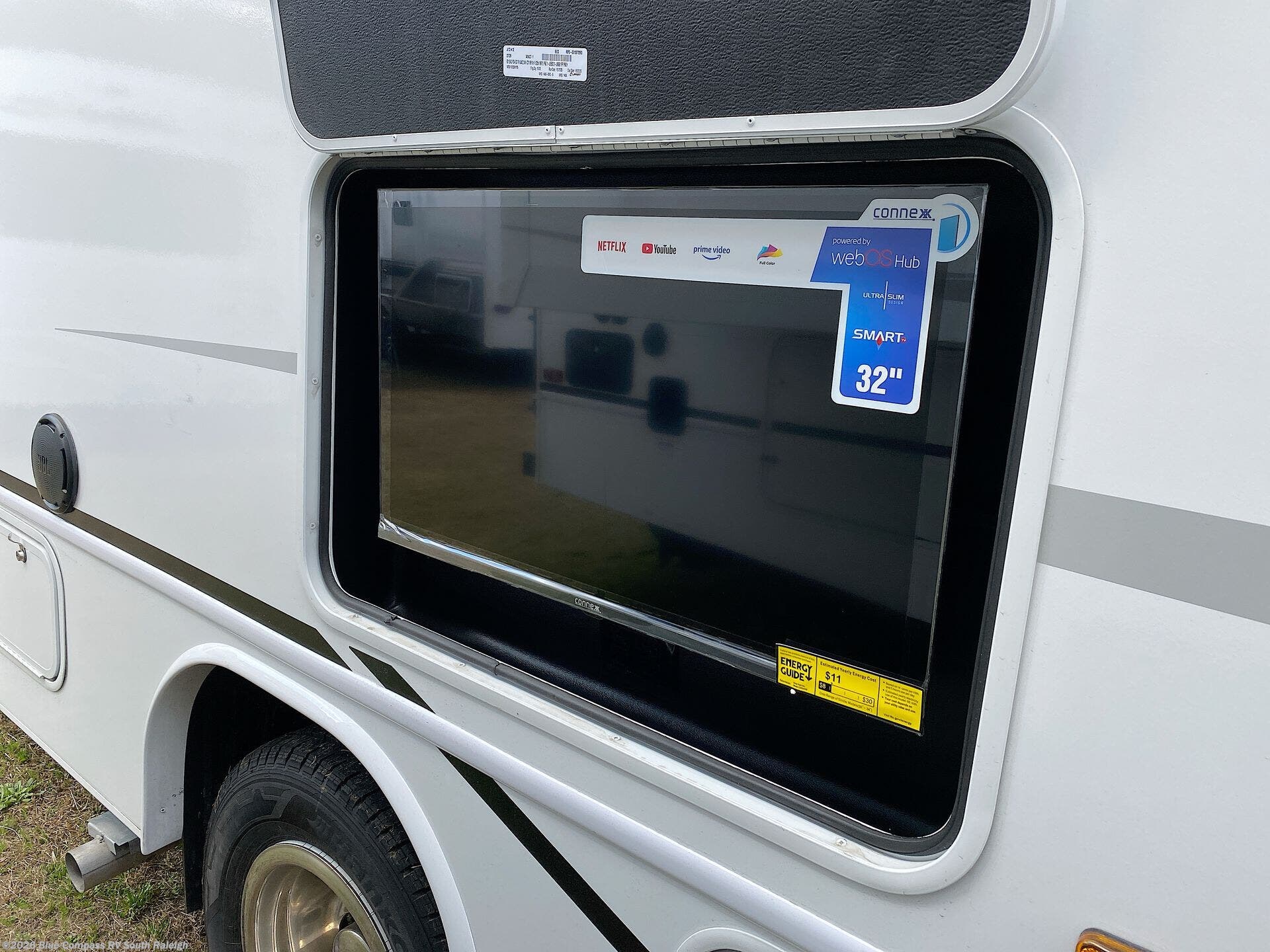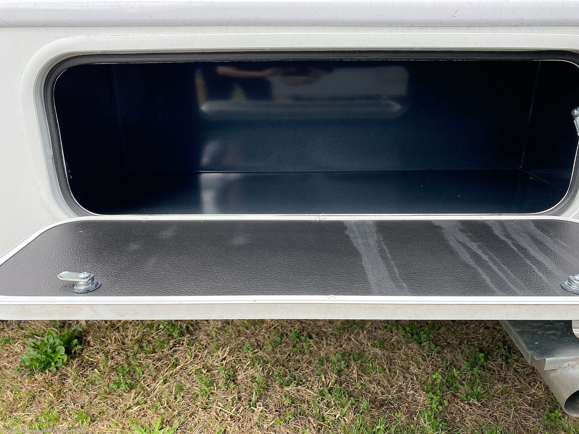 Relax inside while sitting on the sofa, at the booth dinette or on the swivel captains chairs while enjoying the fireplace and 50" TV, or unwind outside under the 18' electric awning while watching the exterior TV. After shopping in town or hiking the trails you can get cleaned up in the private toilet and shower room then brush your teeth in the bathroom sink a few steps outside the door. The private bedroom includes a space saving sliding door, a unique rear queen bed slide, plus storage. The cook will enjoy making meals using the residential-size microwave and Furrion all-in-one cooktop and oven, then storing leftovers in the 8 cu. ft. refrigerator. And the L-shaped counter with sink will come in handy.