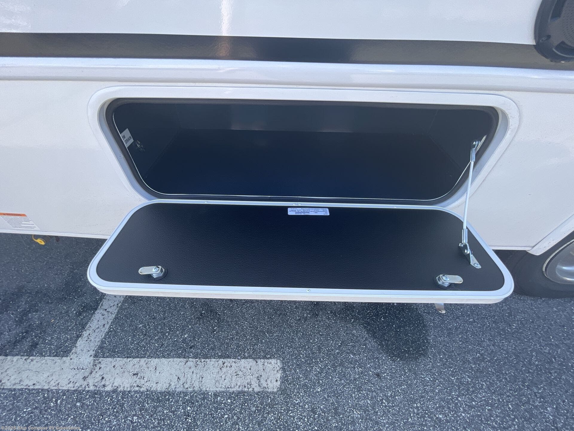 Relax inside while sitting on the sofa, at the booth dinette or on the swivel captains chairs while enjoying the fireplace and 50" TV, or unwind outside under the 18' electric awning while watching the exterior TV. After shopping in town or hiking the trails you can get cleaned up in the private toilet and shower room then brush your teeth in the bathroom sink a few steps outside the door. The private bedroom includes a space saving sliding door, a unique rear queen bed slide, plus storage. The cook will enjoy making meals using the residential-size microwave and Furrion all-in-one cooktop and oven, then storing leftovers in the 10 cu. ft. refrigerator. And the L-shaped counter with sink will come in handy.