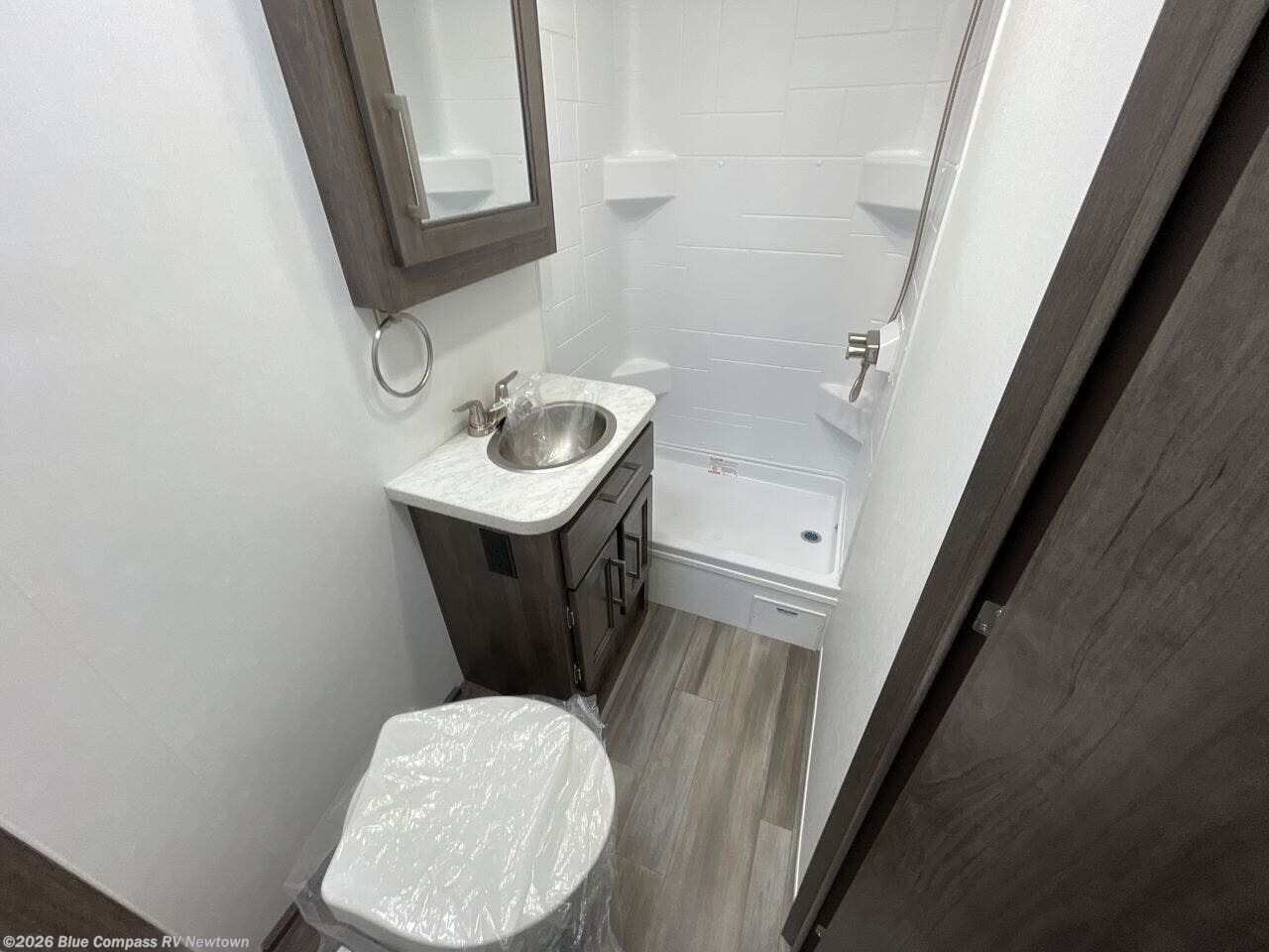 Make your trips complete in this coach that can sleep four to five each night. There is a cab-over bunk with a 750 lb. capacity for guests and an RV queen bed slide out in the rear corner bedroom. The booth dinette can be used to dine at, play games, and even sleep an additional guest or two little ones. A two burner cooktop comes standard in the kitchen, along with a convection microwave, a stainless steel sink, and a 10 cu. ft. refrigerator. You will also appreciate having a full bath on board, and the 13' electric awning outside will provide a place to relax with a cold drink!