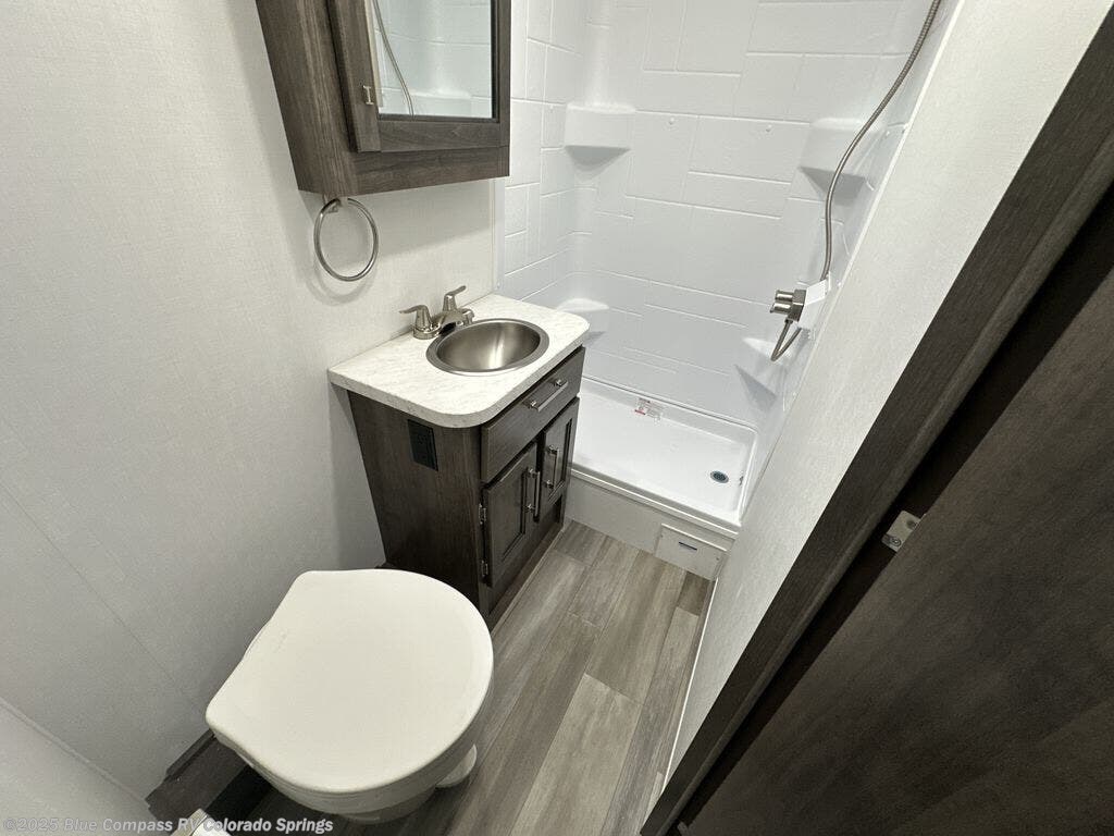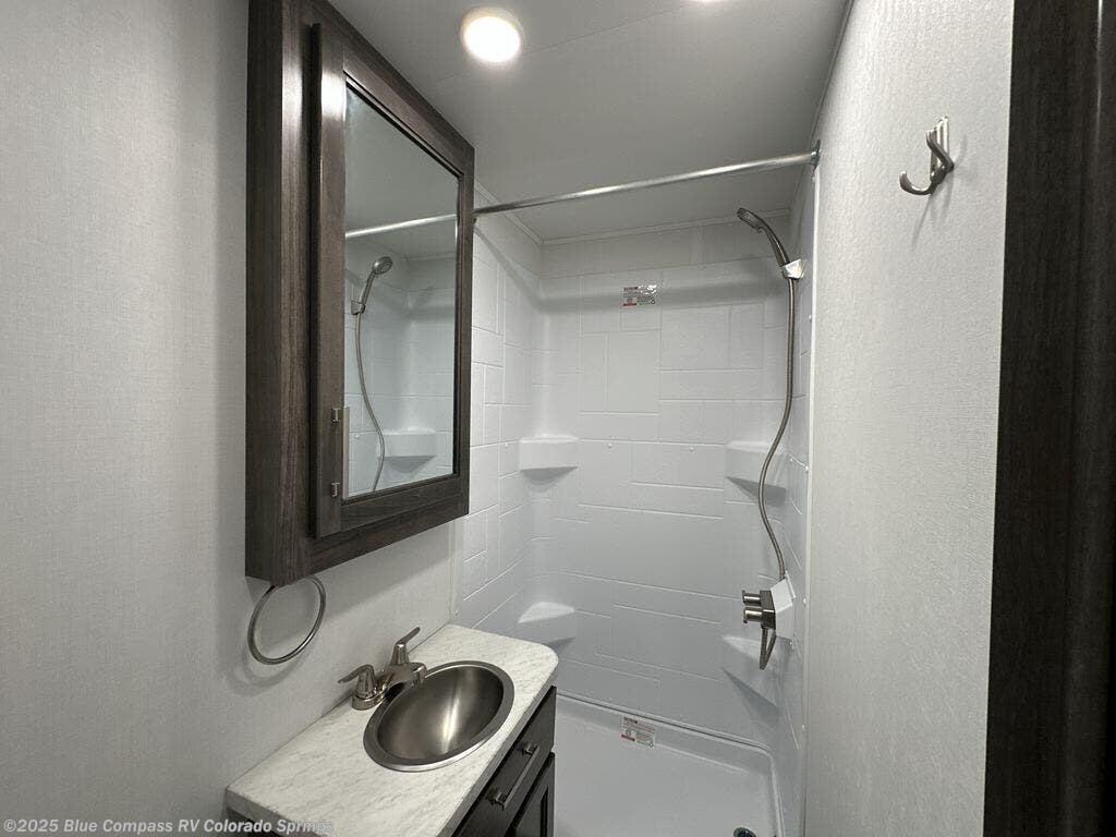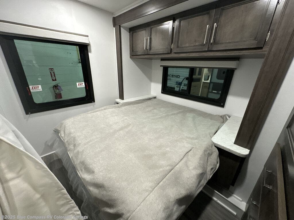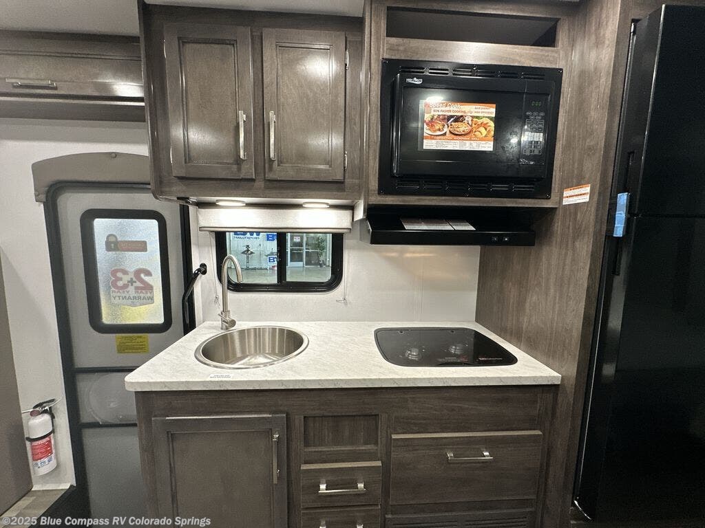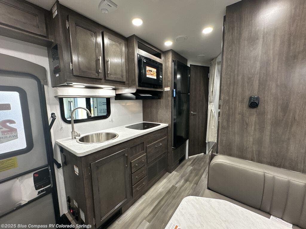 Make your trips complete in this coach that can sleep four to five each night. There is a cab-over bunk with a 750 lb. capacity for guests and an RV queen bed slide out in the rear corner bedroom. The booth dinette can be used to dine at, play games, and even sleep an additional guest or two little ones. A two burner cooktop comes standard in the kitchen, along with a convection microwave, a stainless steel sink, and a 10 cu. ft. refrigerator. You will also appreciate having a full bath on board, and the 13' electric awning outside will provide a place to relax with a cold drink!