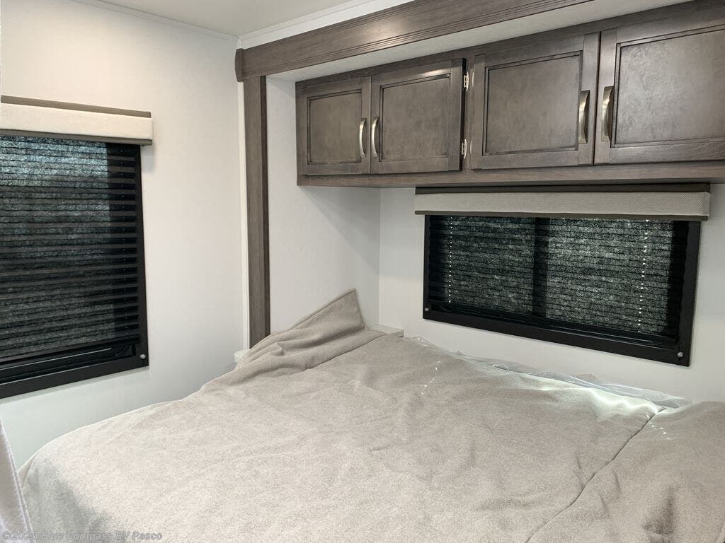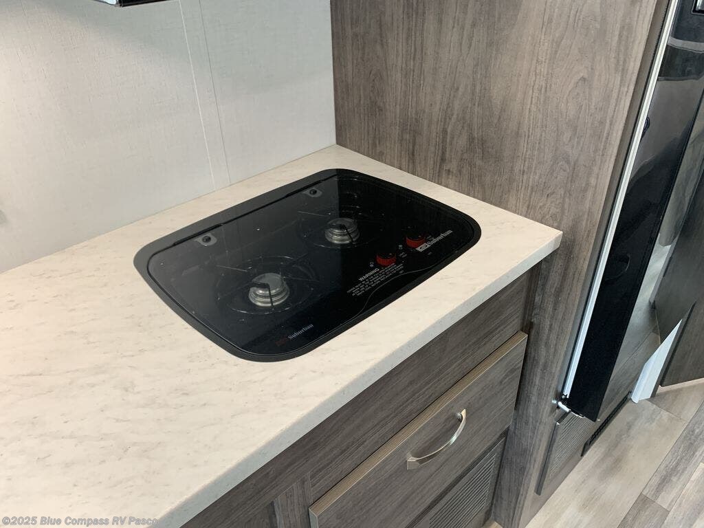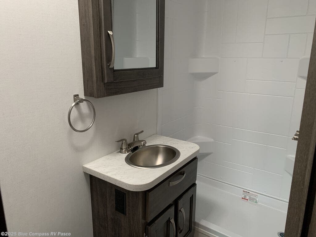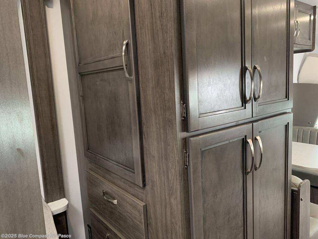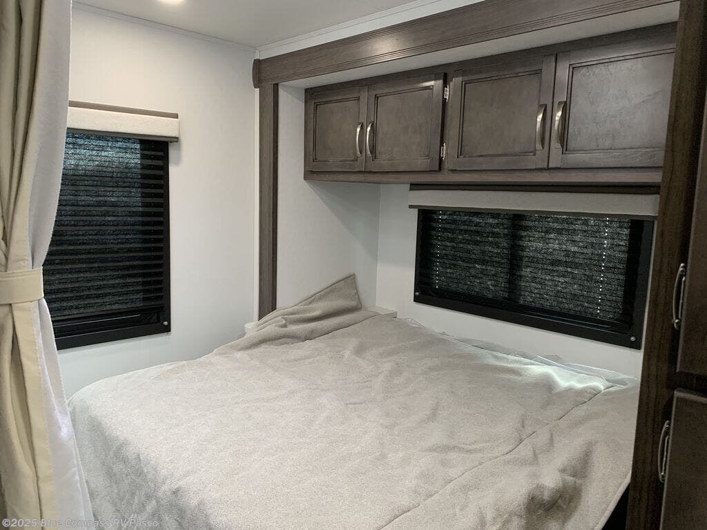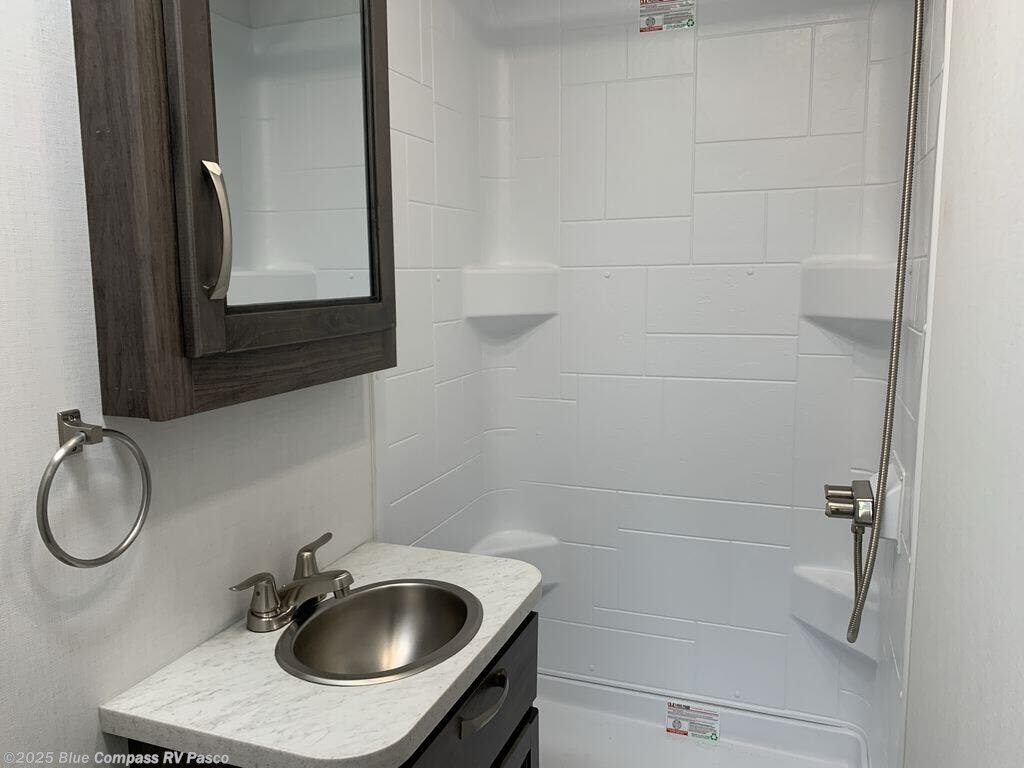 Make your trips complete in this coach that can sleep four to five each night. There is a cab-over bunk with a 750 lb. capacity for guests and an RV queen bed slide out in the rear corner bedroom. The booth dinette can be used to dine at, play games, and even sleep an additional guest or two little ones. A two burner cooktop comes standard in the kitchen, along with a convection microwave, a stainless steel sink, and a 10 cu. ft. refrigerator. You will also appreciate having a full bath on board, and the 13' electric awning outside will provide a place to relax with a cold drink!