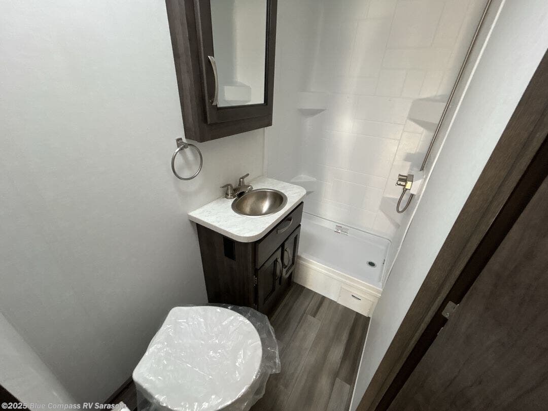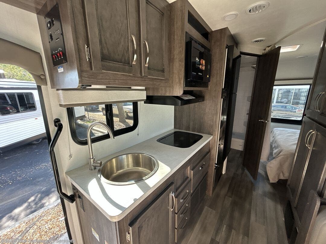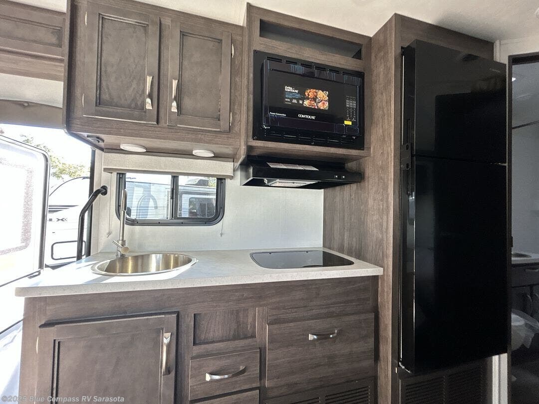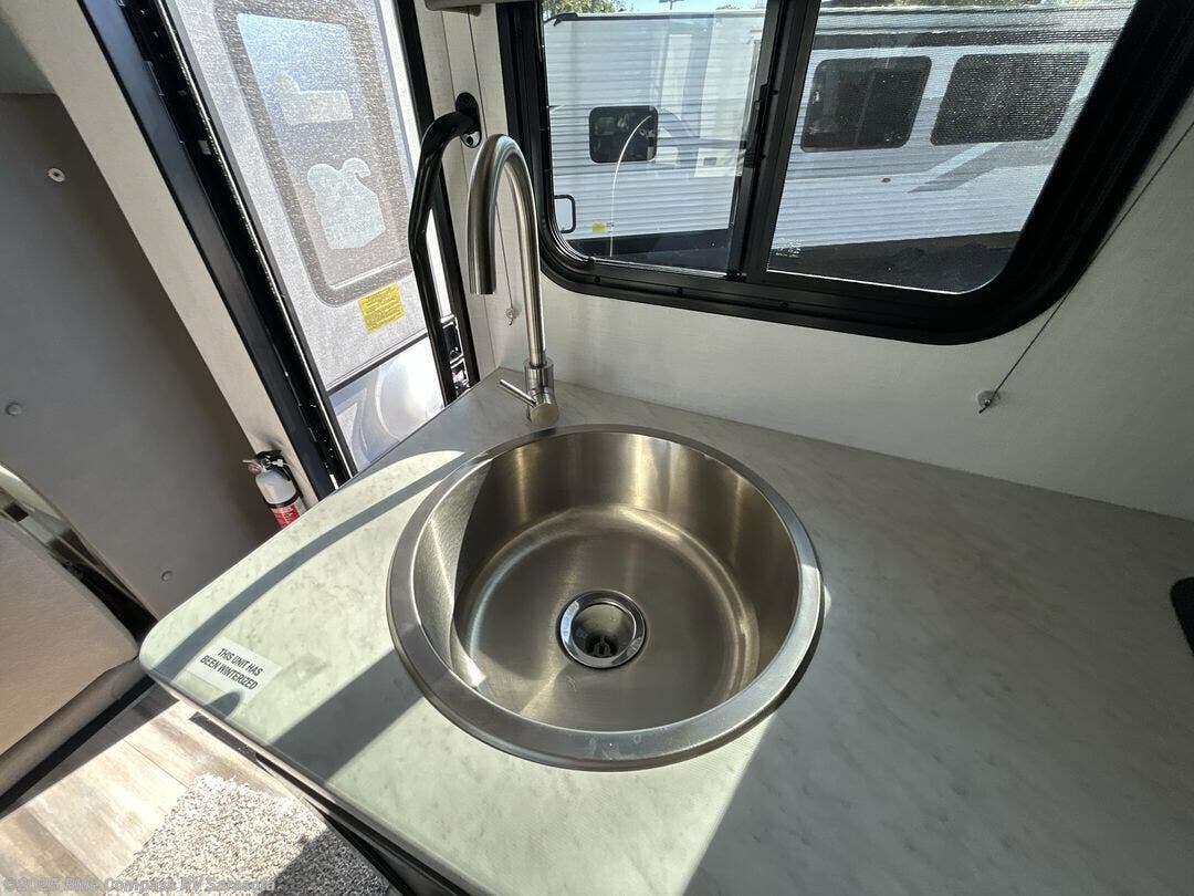 Make your trips complete in this coach that can sleep four to five each night. There is a cab-over bunk with a 750 lb. capacity for guests and an RV queen bed slide out in the rear corner bedroom. The booth dinette can be used to dine at, play games, and even sleep an additional guest or two little ones. A two burner cooktop comes standard in the kitchen, along with a convection microwave, a stainless steel sink, and a 10 cu. ft. refrigerator. You will also appreciate having a full bath on board, and the 13' electric awning outside will provide a place to relax with a cold drink!
