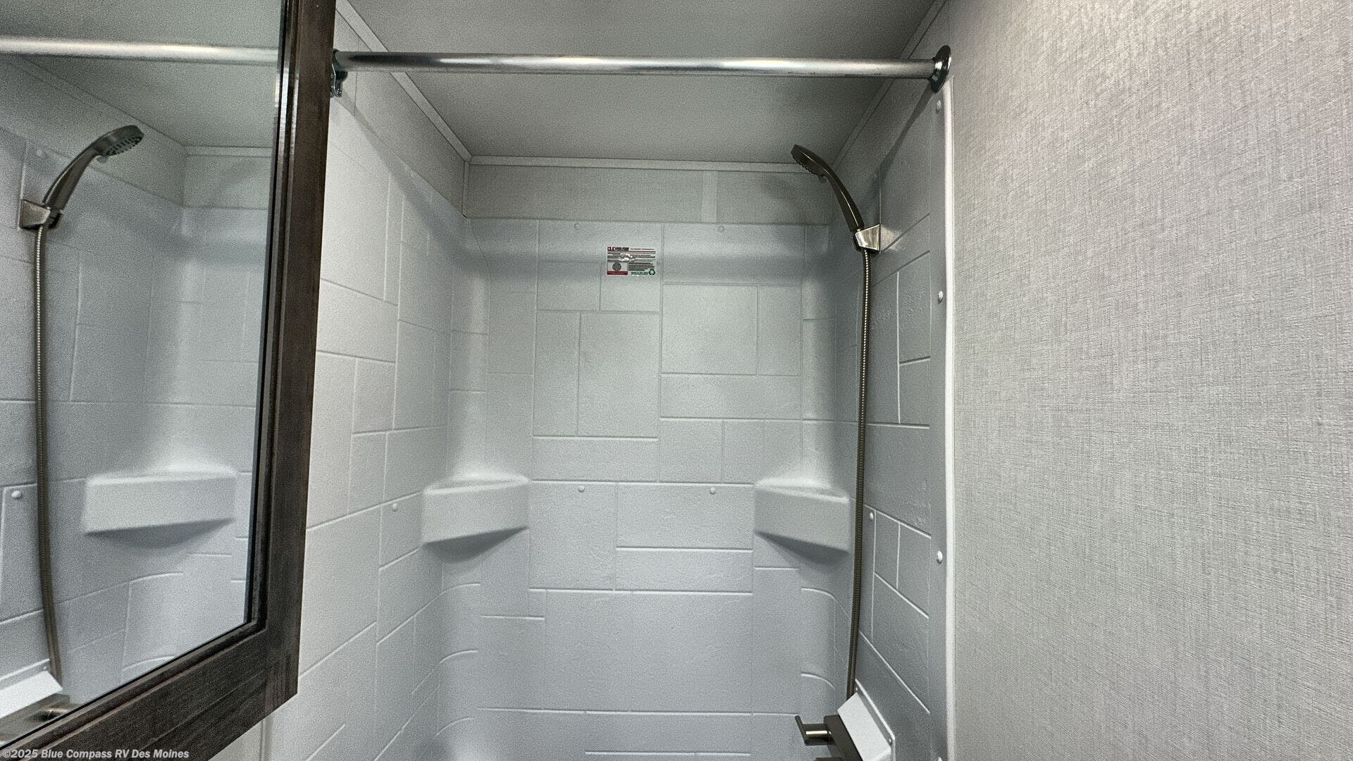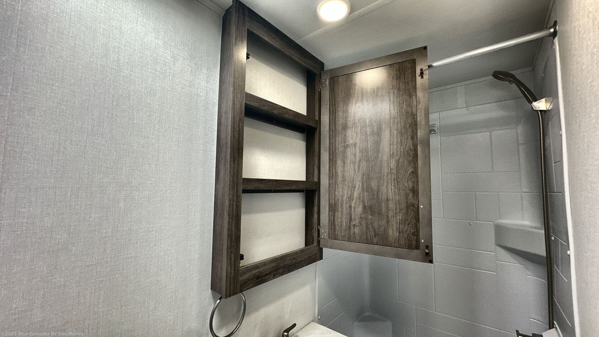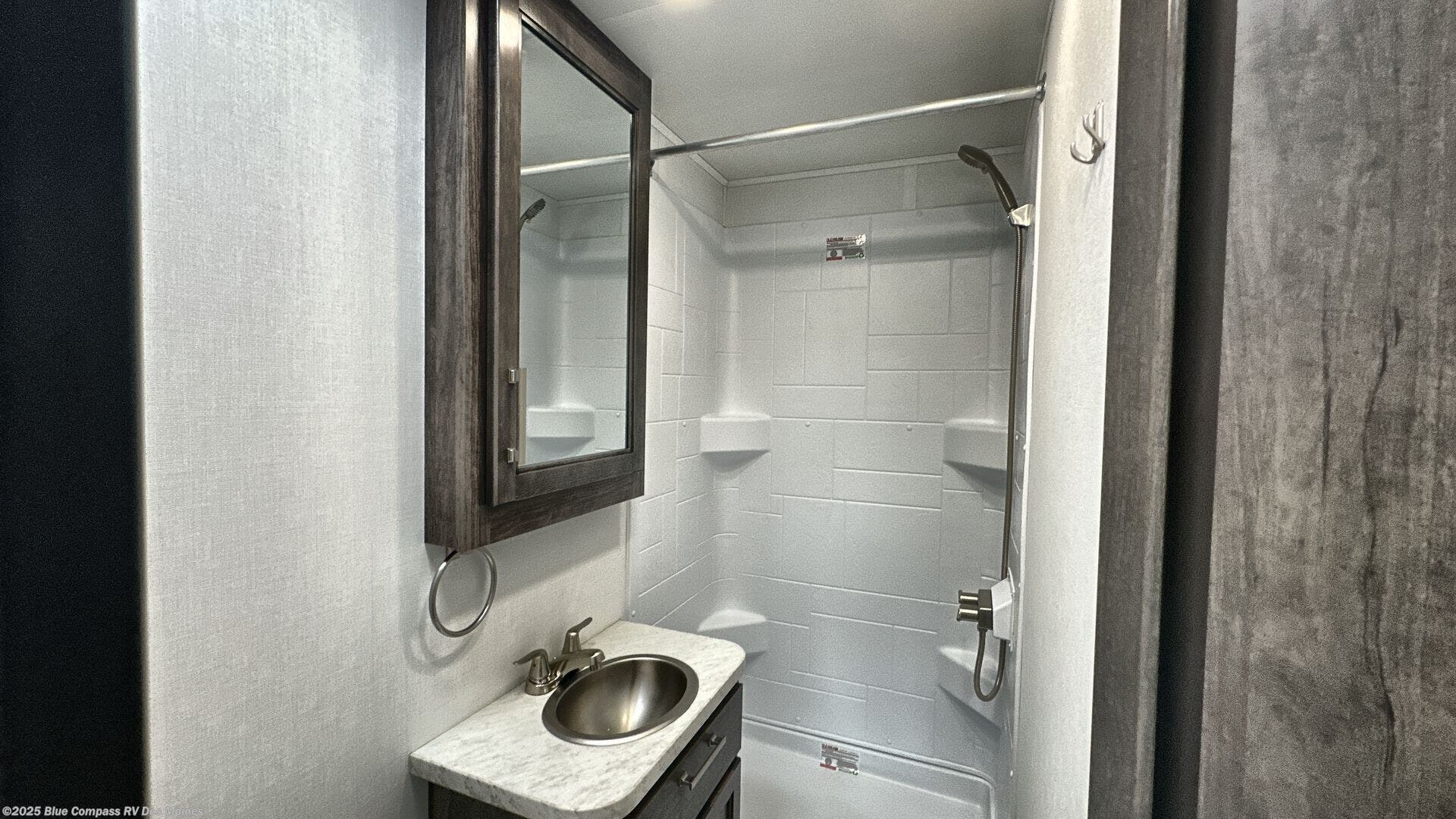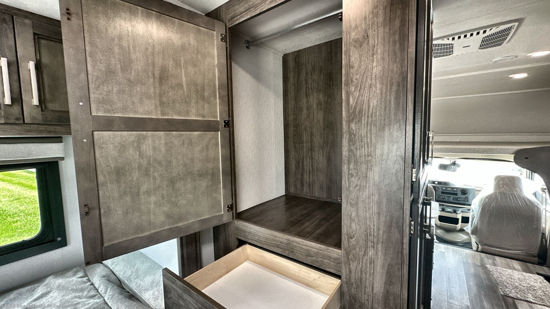 Make your trips complete in this coach that can sleep four to five each night. There is a cab-over bunk with a 750 lb. capacity for guests and an RV queen bed slide out in the rear corner bedroom. The booth dinette can be used to dine at, play games, and even sleep an additional guest or two little ones. A two burner cooktop comes standard in the kitchen, along with a convection microwave, a stainless steel sink, and a 10 cu. ft. refrigerator. You will also appreciate having a full bath on board, and the 13' electric awning outside will provide a place to relax with a cold drink!