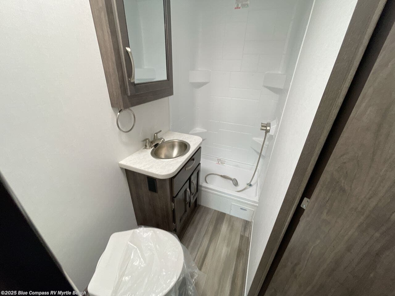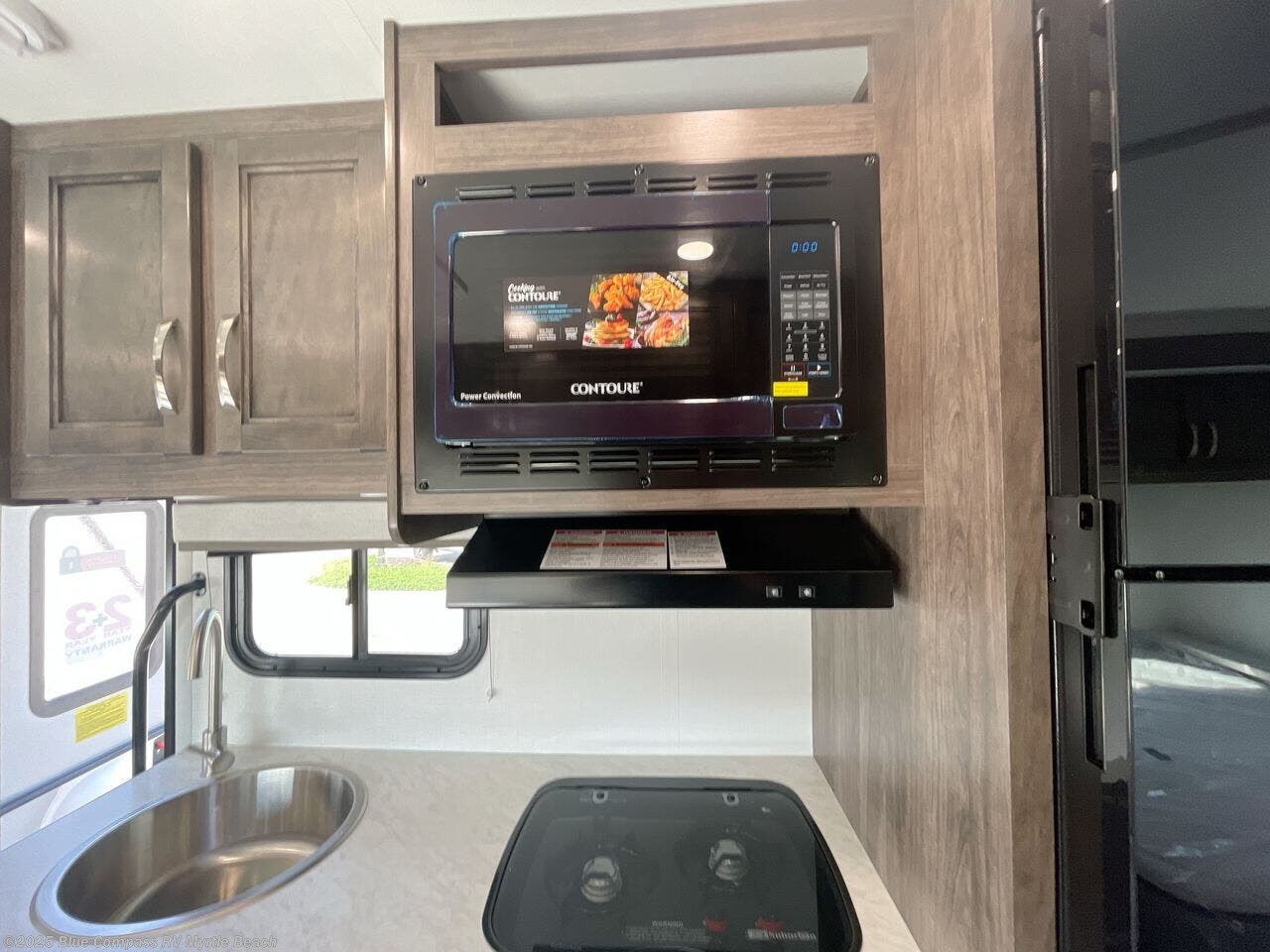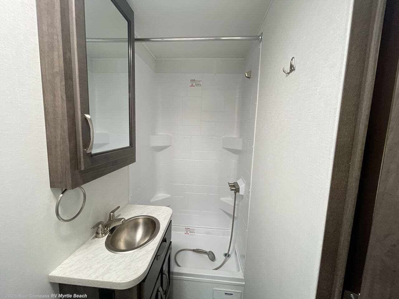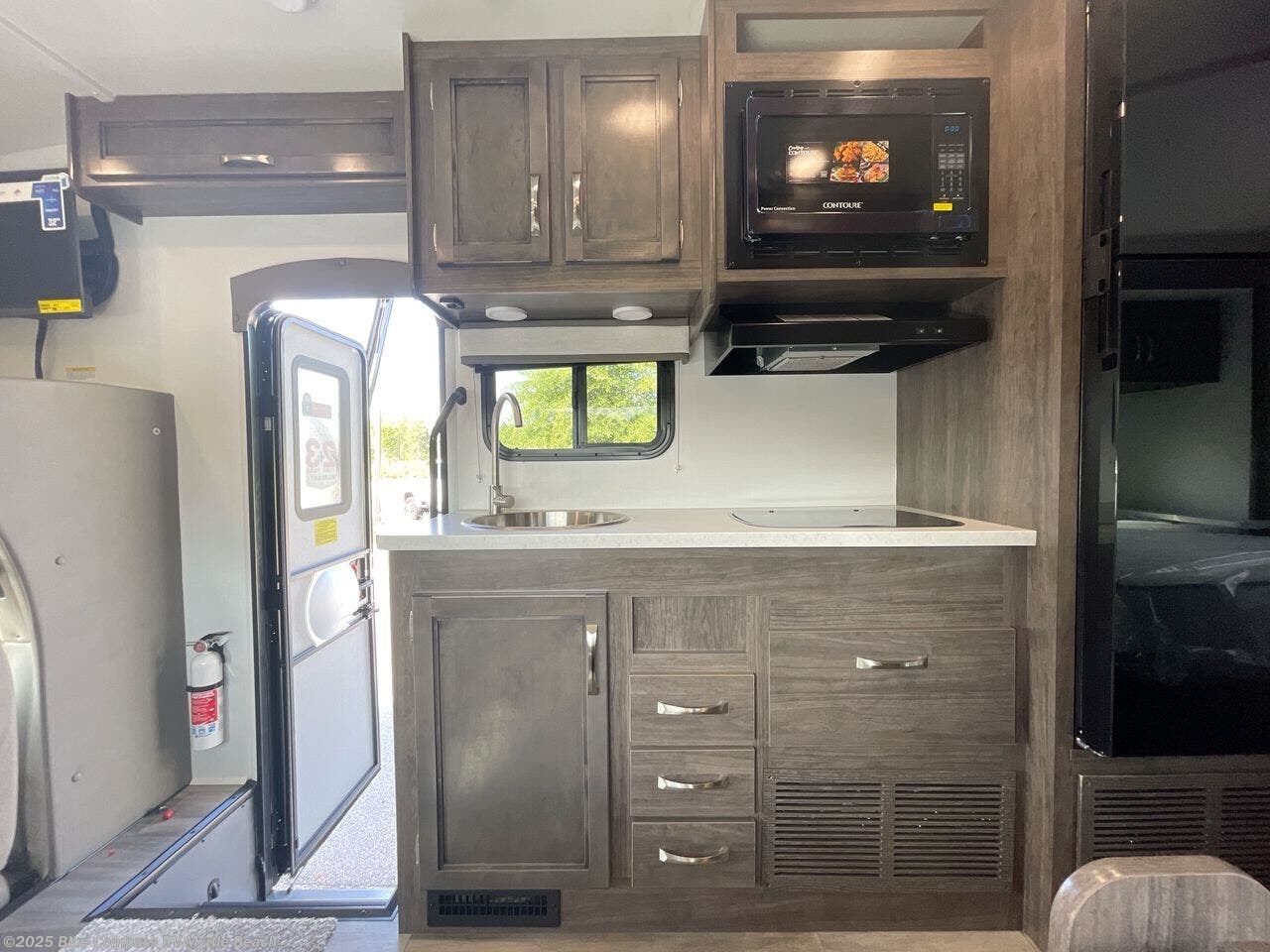 Make your trips complete in this coach that can sleep four to five each night. There is a cab-over bunk with a 750 lb. capacity for guests and an RV queen bed slide out in the rear corner bedroom. The booth dinette can be used to dine at, play games, and even sleep an additional guest or two little ones. A two burner cooktop comes standard in the kitchen, along with a convection microwave, a stainless steel sink, and a 10 cu. ft. refrigerator. You will also appreciate having a full bath on board, and the 13' electric awning outside will provide a place to relax with a cold drink!