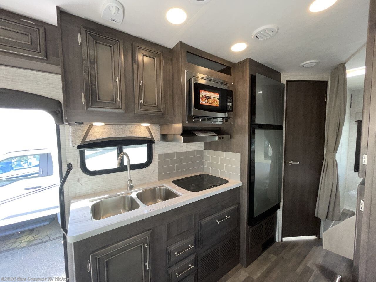 Make your trips complete in this coach that can sleep four to five each night. There is a cab-over bunk with a 750 lb. capacity for guests, and an RV queen bed slide out in the rear corner bedroom. The booth dinette can be used to dine at, play games, and even sleep an additional guest or two little ones. A two-burner cooktop comes standard in the kitchen, along with a convection microwave, a stainless-steel sink, and a 10-cu. ft. refrigerator. You will also appreciate having a full bath on board, and the 13' electric awning outside will provide a place to relax with a cold drink!