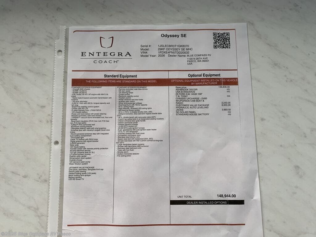 Request More Info on this 2026 Entegra Coach Odyssey SE 29KF Offered for sale by Blue Compass RV Pasco