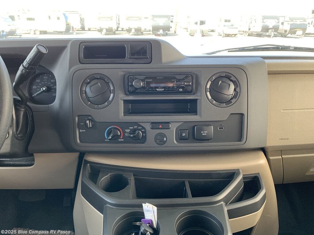 The Odyssey SE Class C gas motorhome by Entegra Coach is constructed with TuffShell vacuum-bond laminated sidewalls, a one-piece, seamless fiberglass front cap, and bead-foam insulation for added durability and strength. Whether you choose a model with a Ford E-350 chassis, Ford E-450 or Chevy 4500 chassis, you will get a durable coach made to last. The driver will also love the power steering, tilt steering wheel, and auxiliary start switch. The 7' interior ceiling height will provide plenty of space to stretch out and the high-intensity, recessed LED lights will make your space feel more like home. All of your power needs will be met with a 4,000-watt generator and 12V house battery, plus there is a 13.5K BTU A/C and 30K BTU furnace to keep you comfortable all year long. There are a couple additions you might want to add to further customize your Odyssey SE, like the optional automatic hydraulic leveling jacks and the optional 200W solar panel for some off-grid camping!