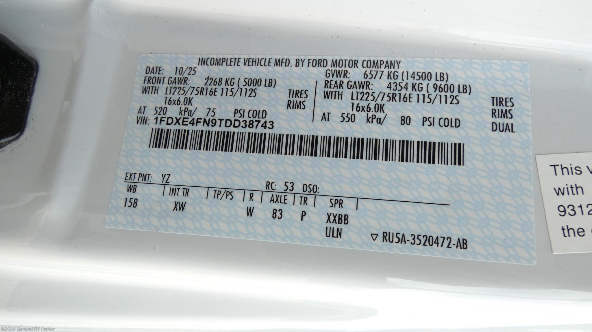 - VIN1FDXE4FN9TDD38743