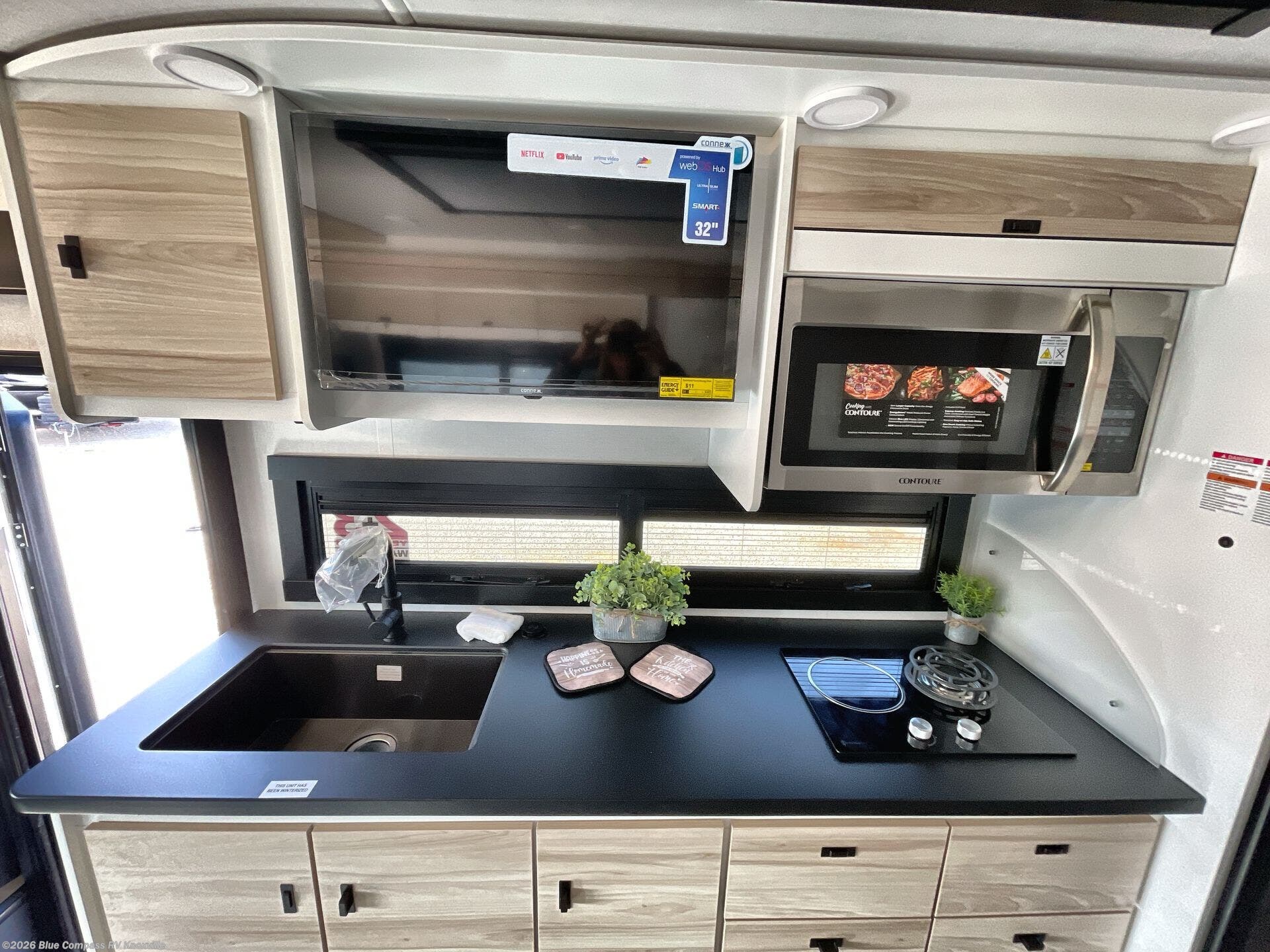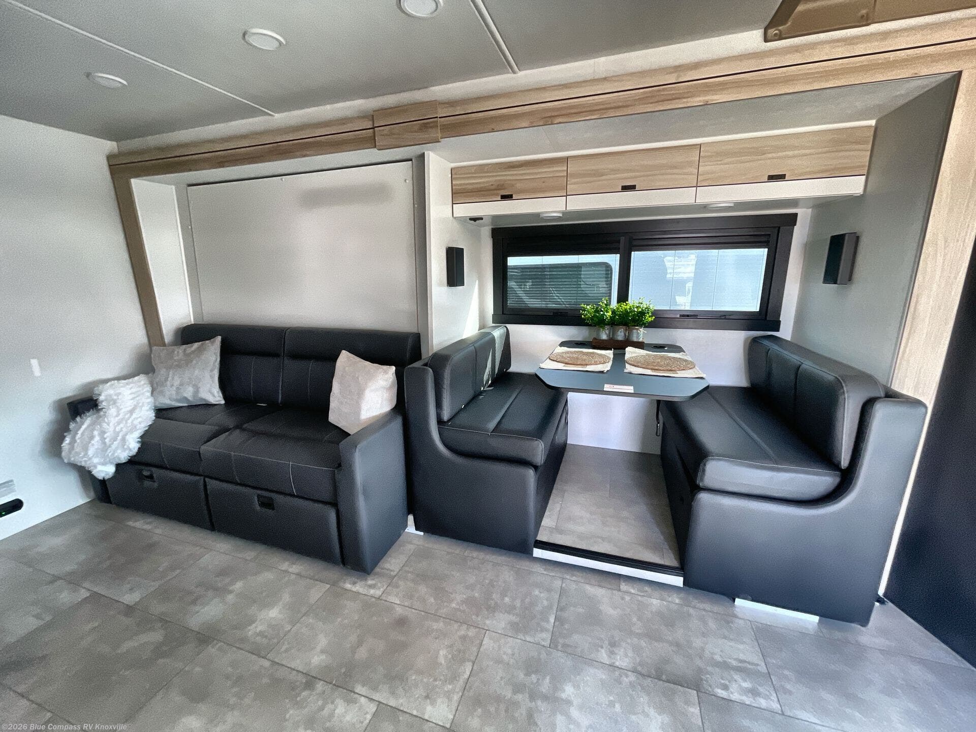 A full rear bath and a full-wall slide make this coach both spacious and convenient! You can prepare all your meals on the drop-in cooktop with one LP burner and one induction burner, then dine together at the booth dinette. And you can choose the optional theater seating in place of the dinette for a more at-home feel. There is an LED HDTV in the living area to watch your favorite shows, and you'll find plenty of overhead compartments for your valuables. This model also features a cab-over bunk for the little ones, or you can choose the optional B+ front cap for extra storage space!