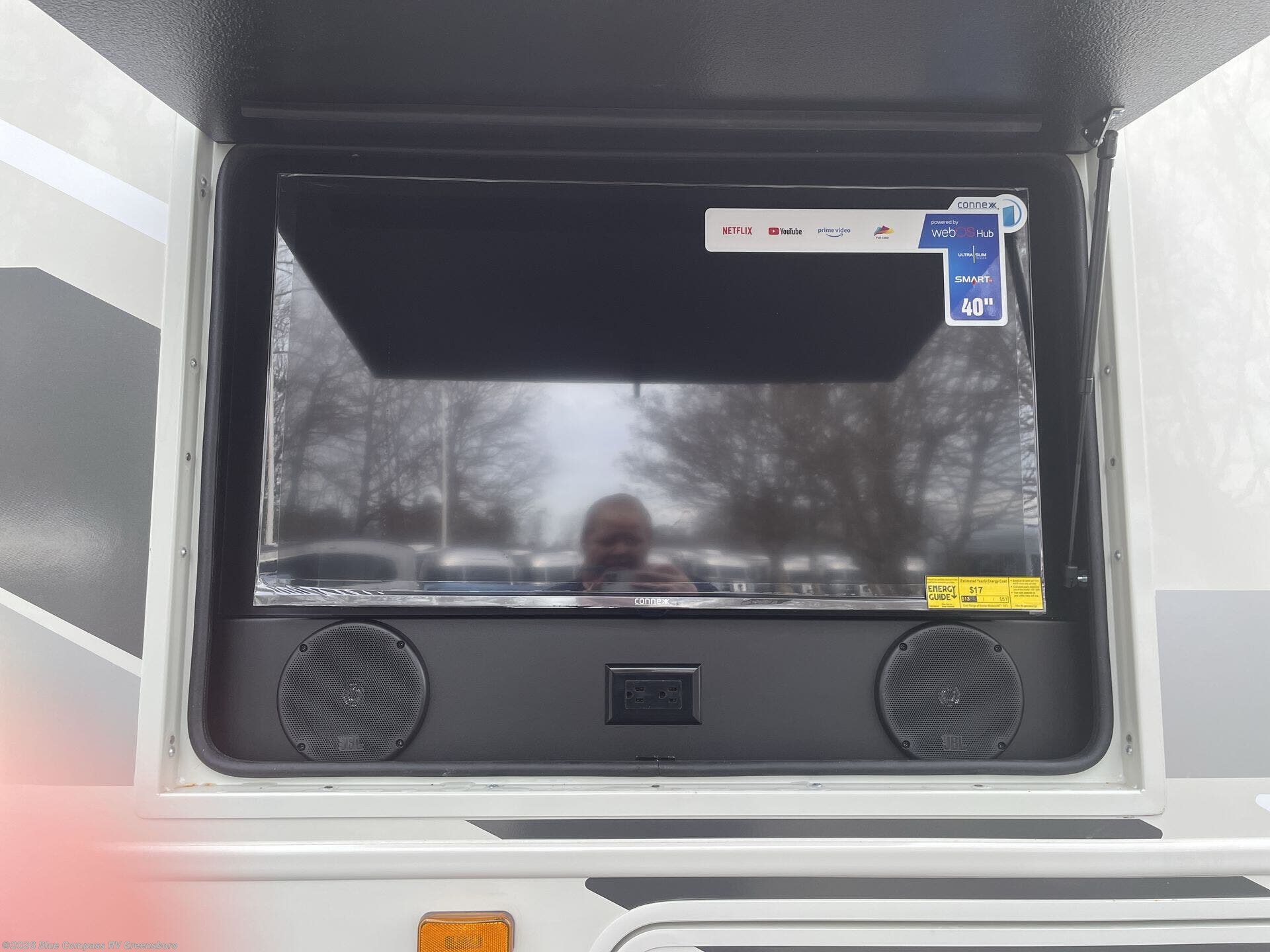 This Vision Class A gas motorhome has excellent interior living space with a full-wall slide! You'll fully enjoy the kitchen and the amenities it provides, like a residential-size microwave, a 10 cu. ft. 12V refrigerator, a Furrion all-in-one cooktop and oven, and a pantry. The 68" jack-knife sofa and booth dinette offer you lounging space after a full day of traveling, and the 39" LED HD Smart TV offers you some entertainment when you don't want to be active anymore. The exterior portion of this coach is also excellently appointed with an outdoor kitchen, exterior entertainment center with LED HD Smart TV, radio, and speakers, and a 23' electric awning with LED lights. You also have great choices of options for this coach with the optional theater seating, LED HDTV in the bedroom, or drop-down overhead cab bunk.