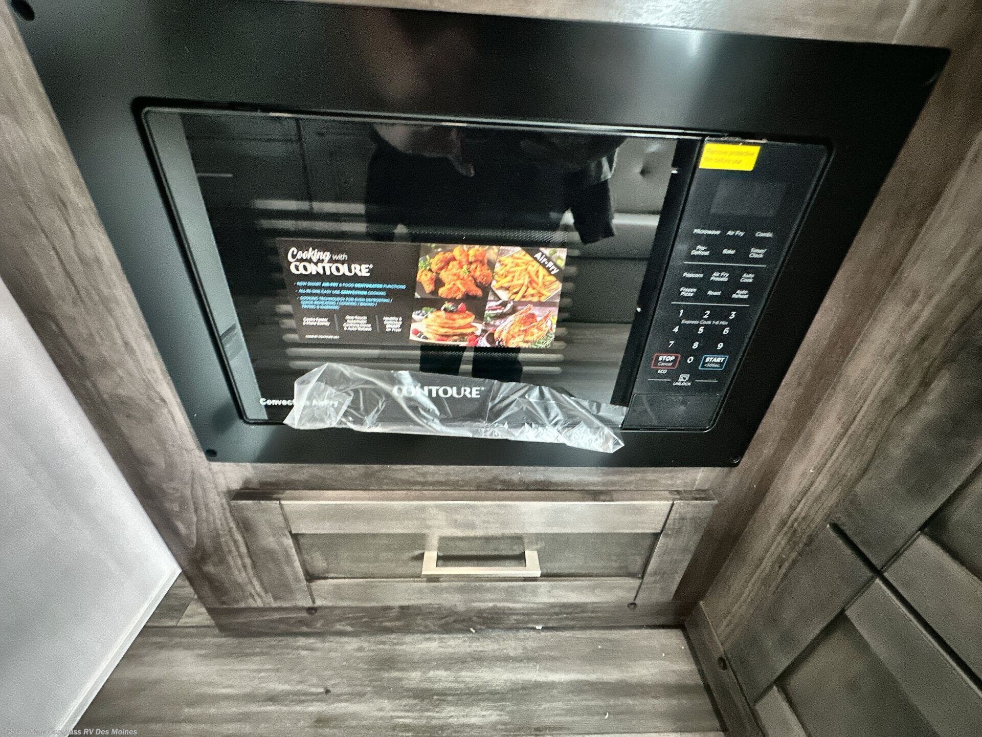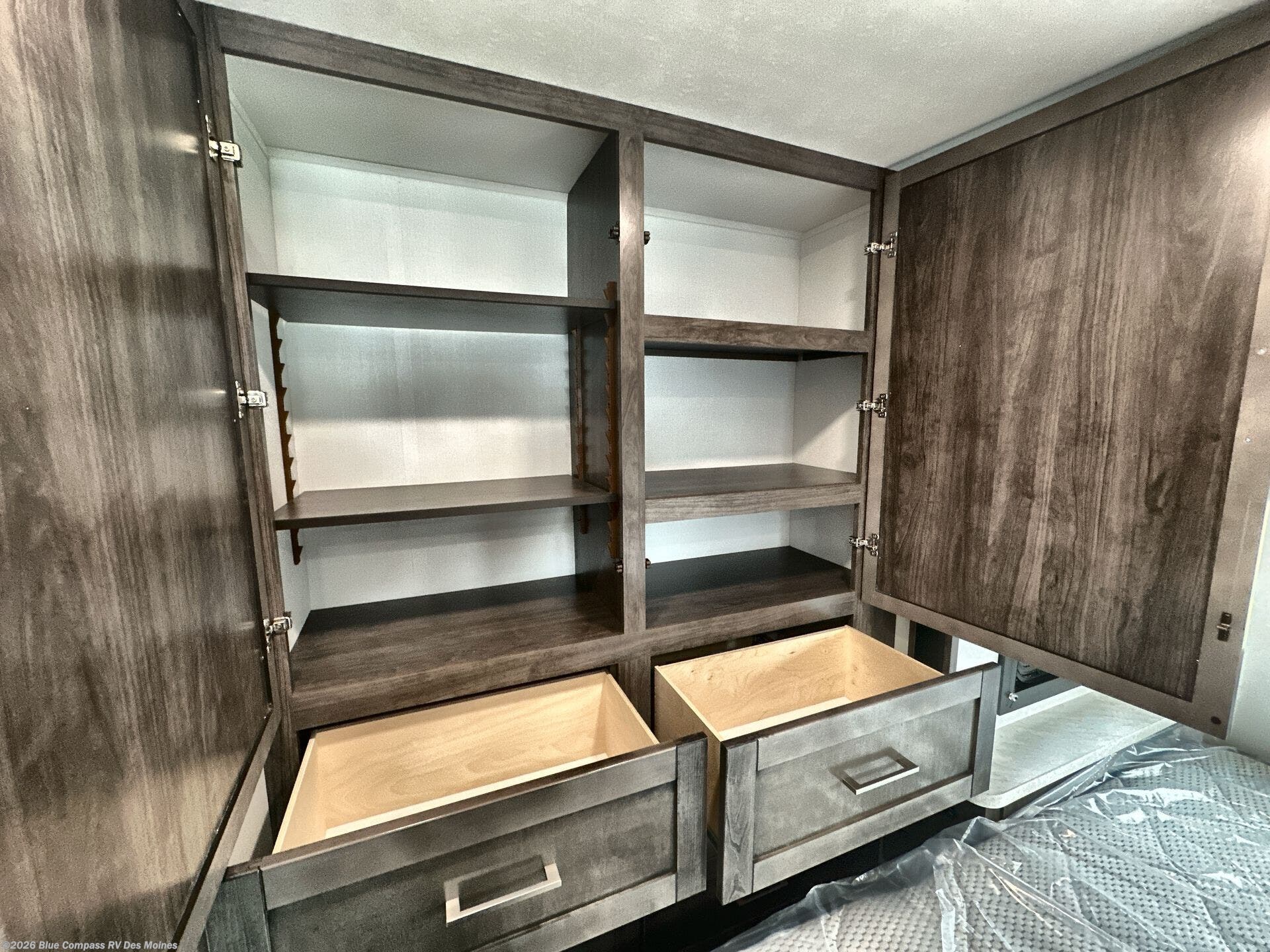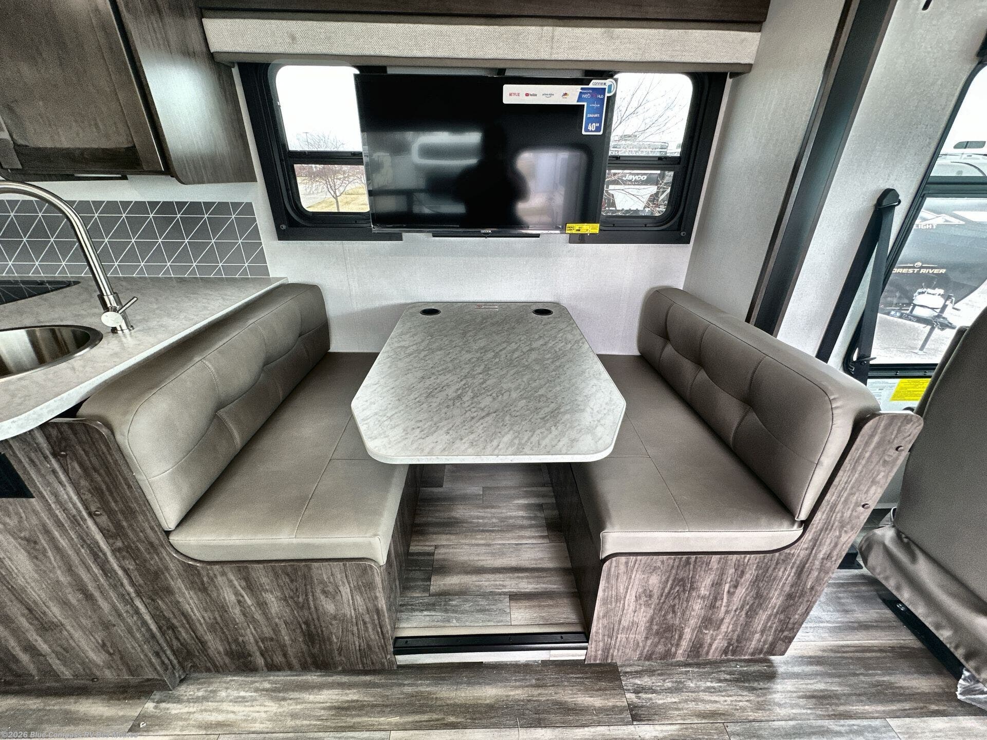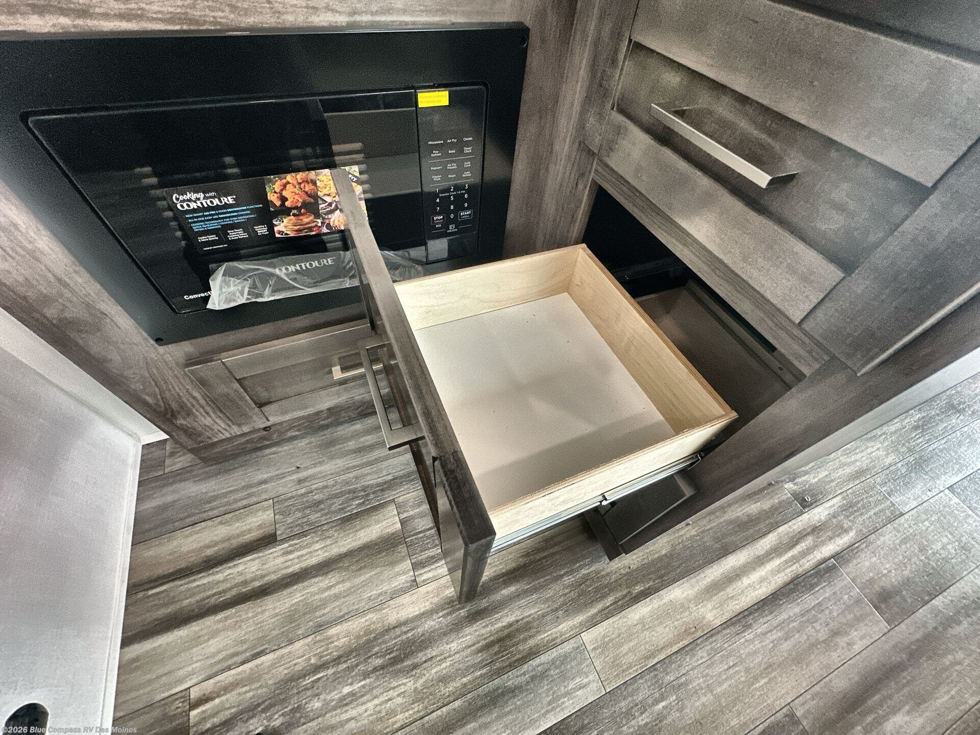This coach is perfect for your crew of four to five, with the ability to sleep more if you choose the optional drop-down overhead bunk. Once you've arrived at your destination, the swivel captain's seats can be turned around to face the main living area so you can visit with those on the jack-knife sofa and booth dinette. A full kitchen, including a two burner cooktop and convection microwave oven will let you make meals each day, and the 10 cu. ft. 12V refrigerator will keep your food fresh. You'll love having your own space in the rear corner private bedroom that includes a king bed slide out and a spacious wardrobe. And you'll find the full bath in the other rear corner for quick and easy access at night!