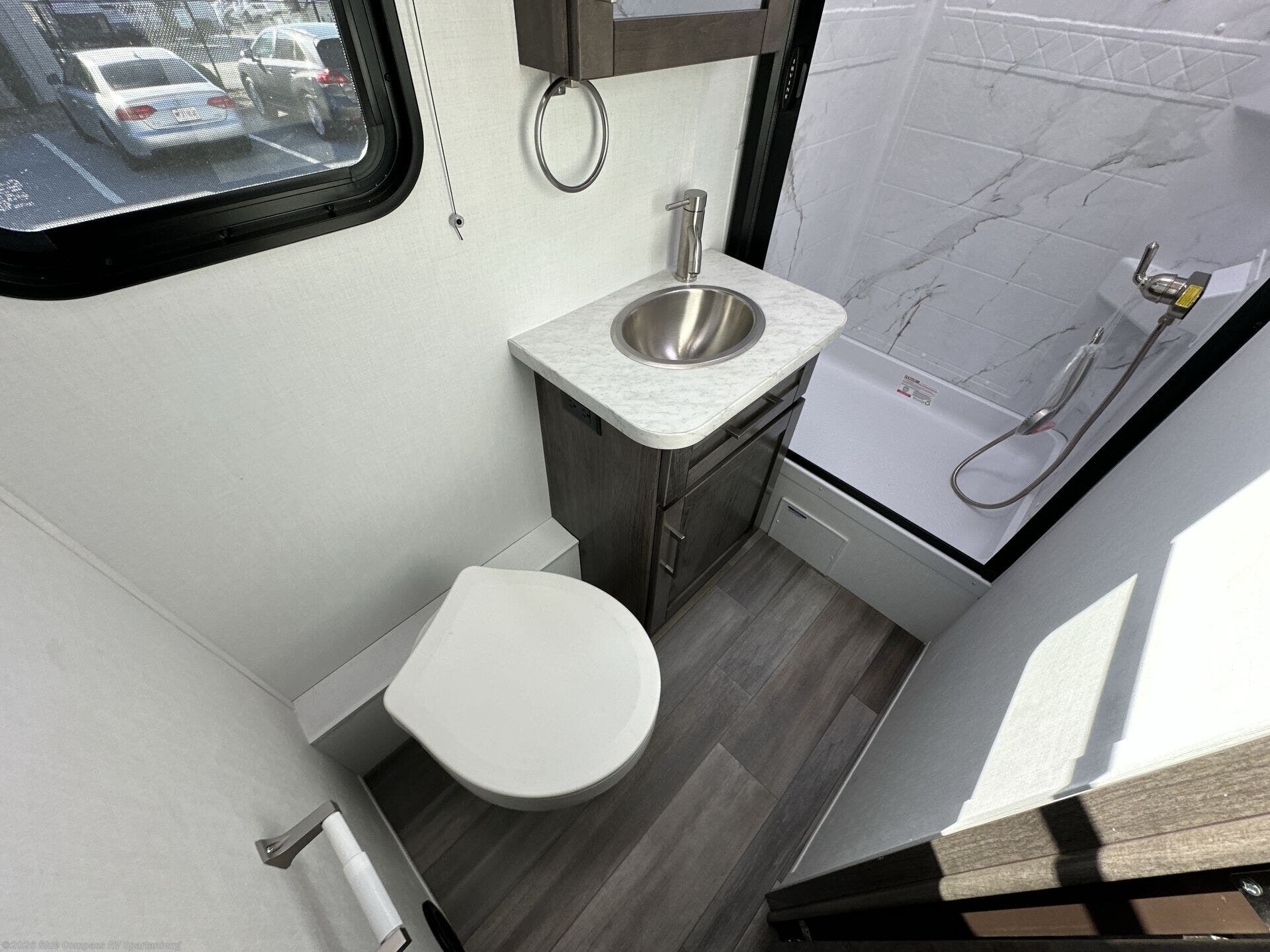 This coach is perfect for your crew of four to five, with the ability to sleep more if you choose the optional drop-down overhead bunk. Once you've arrived at your destination, the swivel captain's seats can be turned around to face the main living area so you can visit with those on the jack-knife sofa and booth dinette. A full kitchen, including a two burner cooktop and convection microwave oven will let you make meals each day, and the 10 cu. ft. 12V refrigerator will keep your food fresh. You'll love having your own space in the rear corner private bedroom that includes a king bed slide out and a spacious wardrobe. And you'll find the full bath in the other rear corner for quick and easy access at night!