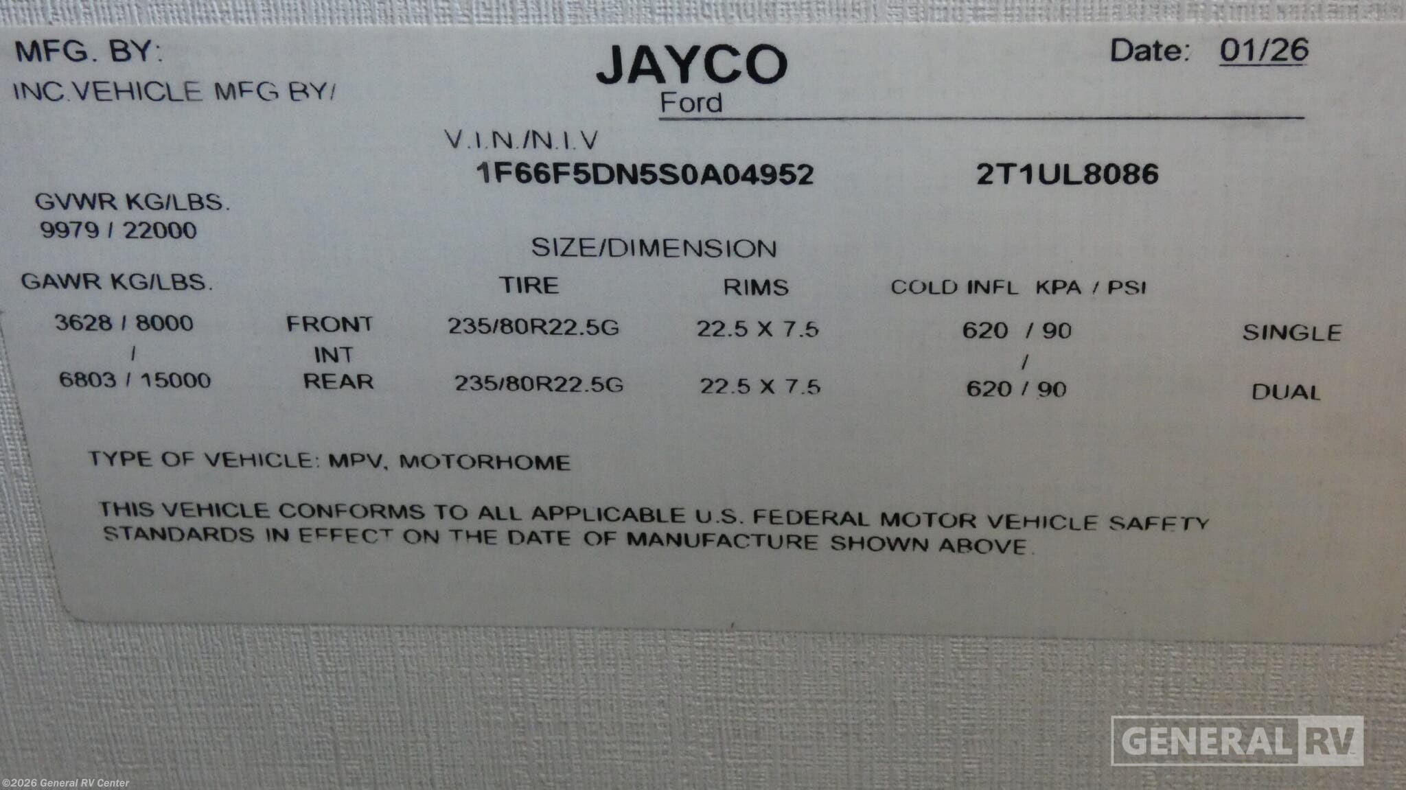 - VIN1F66F5DN5S0A04952