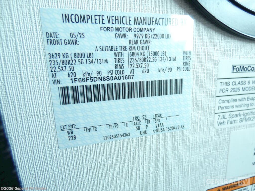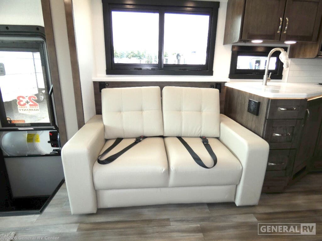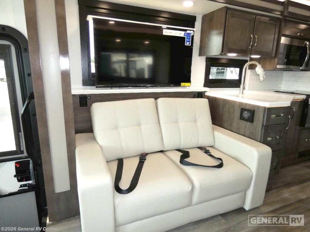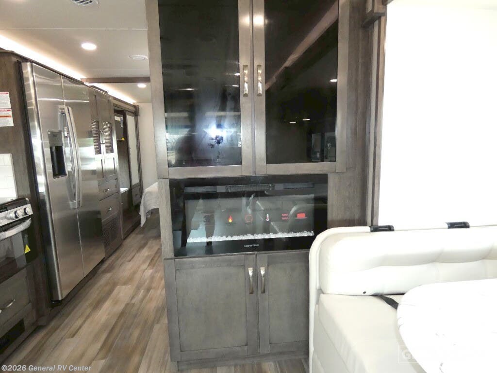 Step into the luxurious world of the 2025 Entegra Coach Vision XL 34G, where comfort meets sophistication on the open road. This stunning motorhome is designed to accommodate up to eight guests with ease, featuring a plush king bed in the rear master suite, a cozy double bed, and two convertible sleeping areas. The thoughtfully arranged floorplan offers a front living area, perfect for entertaining, with a 60" theater sofa and a 60" tri-fold sofa, both ideal for relaxing by the fireplace. Enjoy meals at the spacious 42" x 70" dinette, which seamlessly integrates into the center kitchen, boasting a full-size residential refrigerator and a three-burner cooktop for all your culinary adventures. The Vision XL 34G is built on a robust Ford F53 chassis, powered by a 335-horsepower engine, ensuring a smooth and powerful drive. With a 23 ft. powered retractable awning, you can extend your living space outdoors, complete with an outside entertainment center for those perfect evenings under the stars. The motorhome's ample storage solutions, including overhead cabinets throughout, ensure you have all the space you need for your travel essentials. Whether you're embarking on a weekend getaway or a cross-country journey, this RV offers a harmonious blend of luxury and practicality, making every trip unforgettable. For more details, visit your nearest General RV dealership.