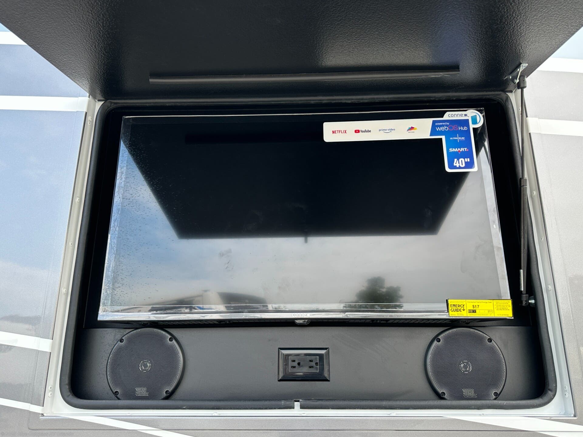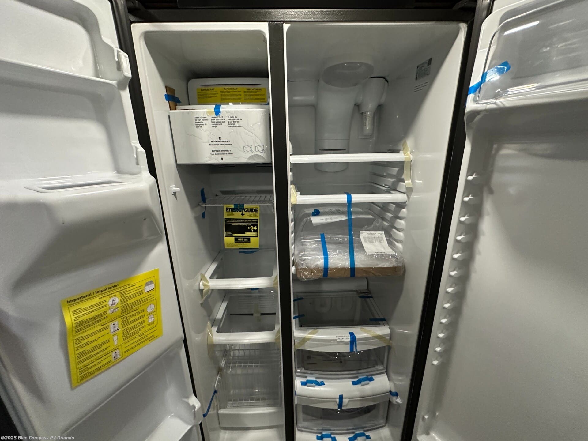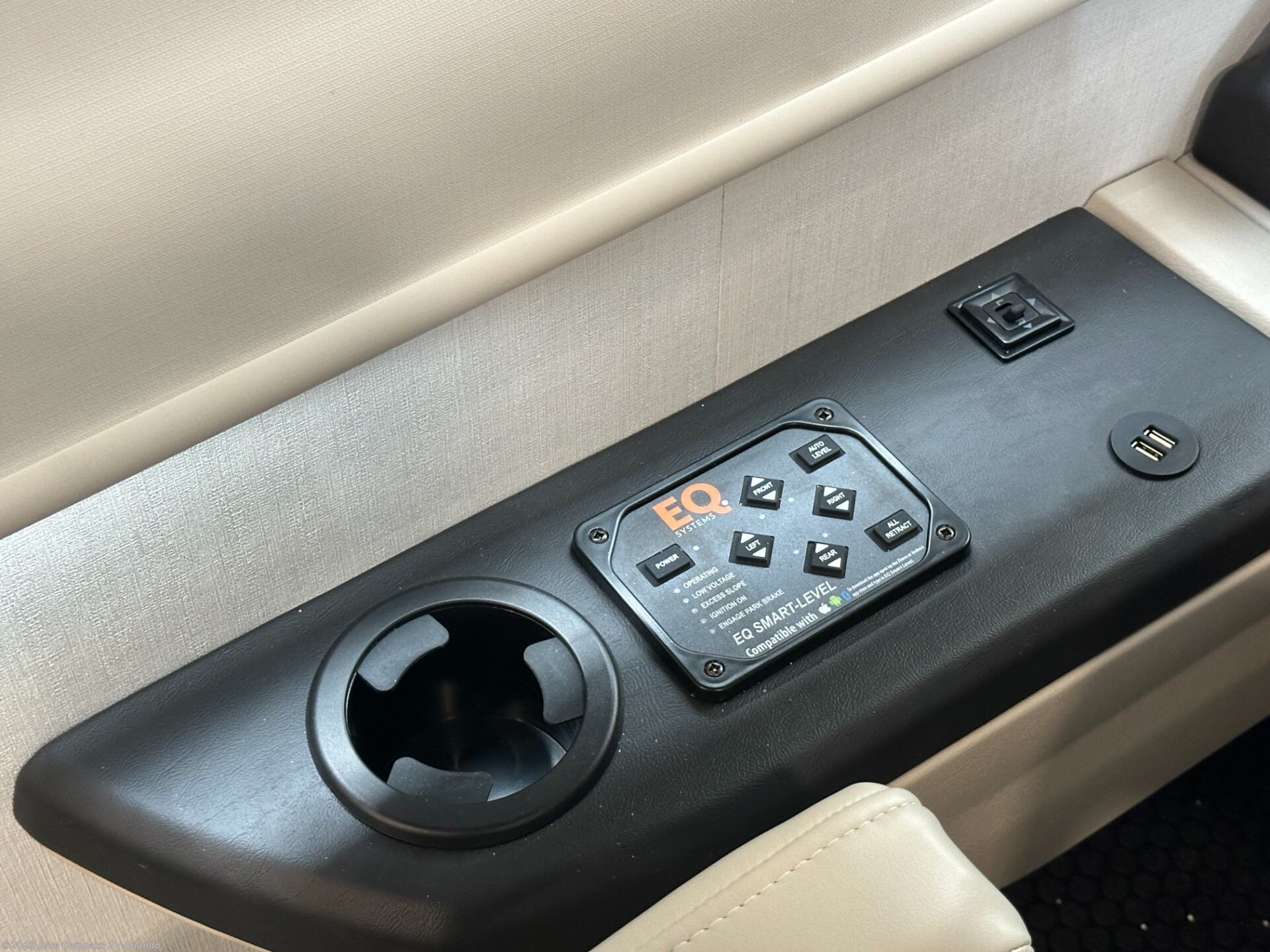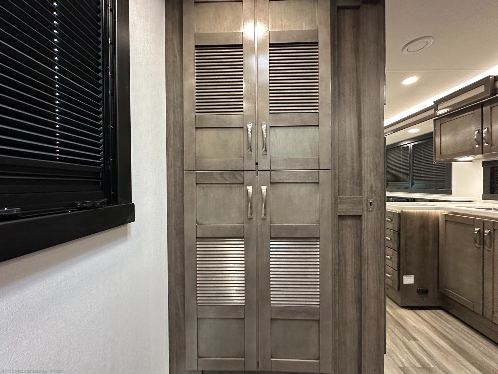 Picture yourself sitting in one of the swivel cab seats with your favorite beverage resting on the removable cockpit table in this Vision XL Class A gas motorhome! When you enter this coach, you will be greeted with a warm and comfortable living environment that has a theater sofa, hide-a-bed sofa, and 38" x 70" booth dinette for lounging, and the fireplace and 50" LED HD Smart TV will add to the coziness. For storing your favorite foods, you can use the residential refrigerator and pantry, and your dishes can be kept in the hutch or overhead cabinets. Conveniently located across from the kitchen is the half bathroom which has an area prepped for an optional washer/dryer, and the walk-around king-size bed in the master suite creates an exceptionally comfortable space to spend your nights.