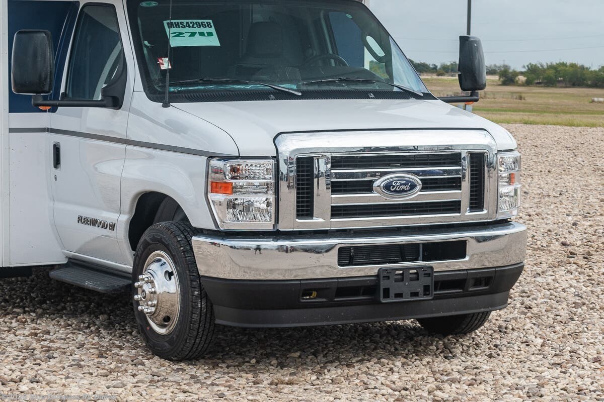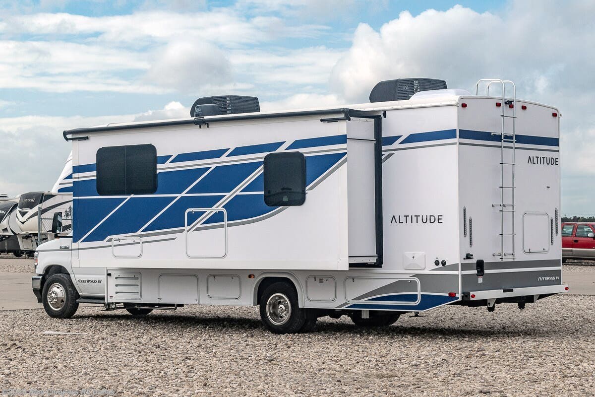 With any Altitude Class C gas motorhome by Fleetwood RV, you will enjoy unrivaled performance, unbeatable storage, and luxury at every turn! You will love the journey just as much as the destination with reclining back captain's chairs and side view cameras, plus there is a Ford 7.3L V8 engine for power you can feel. Each model features painted steel frame construction with a Powerlock System ll that interlocks the walls to the roof for added durability, along with Vacu-Bond aluminum framed sidewalls, roof, and floor. Outside, you'll find automatic hydraulic leveling jacks, patio lighting, slam latch luggage door handles, and a Winegard Air 360+ that will allow you to stay connected as you travel. Head inside to find Surf-X countertops, slide out fascia with coordinating interior wood color, hidden hinge cabinet doors, kitchen backsplash, and many more comforts!