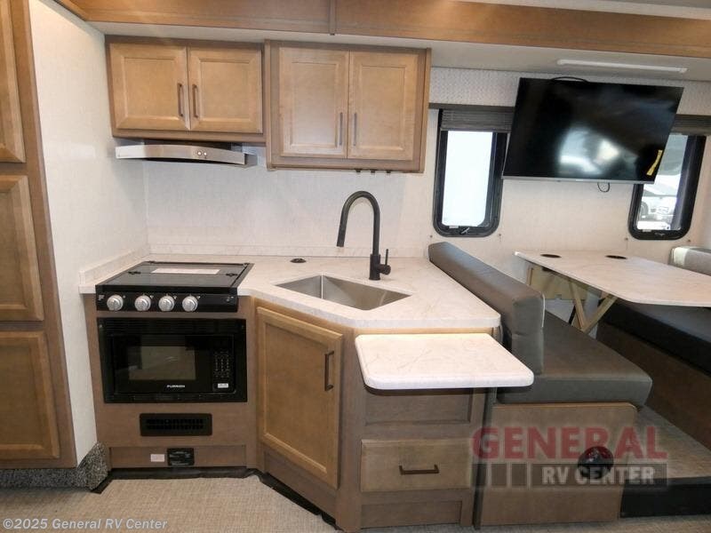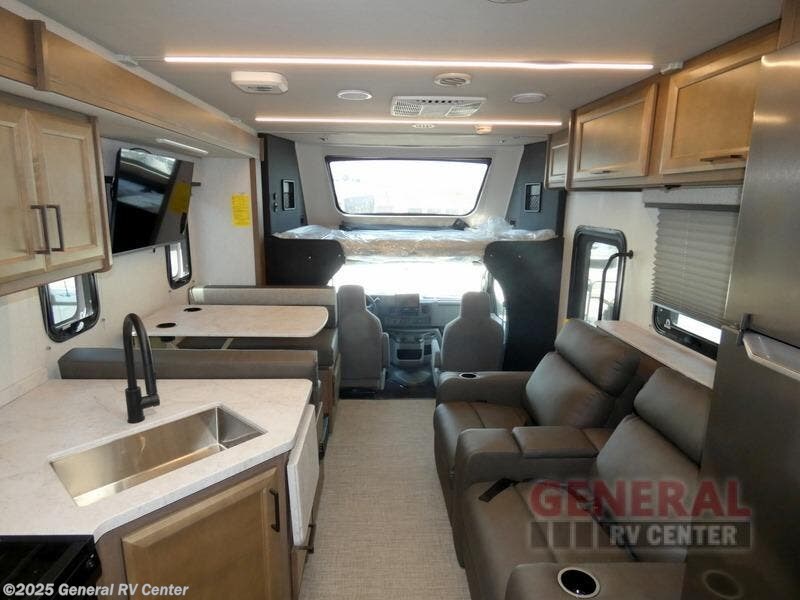 With any Altitude Class C gas motorhome by Fleetwood RV, you will enjoy unrivaled performance, unbeatable storage, and luxury at every turn! You will love the journey just as much as the destination with reclining back captain's chairs and side view cameras, plus there is a Ford 7.3L V8 engine for power you can feel. Each model features painted steel frame construction with a Powerlock System ll that interlocks the walls to the roof for added durability, along with Vacu-Bond aluminum framed sidewalls, roof, and floor. Outside, you'll find automatic hydraulic leveling jacks, patio lighting, slam latch luggage door handles, and a Winegard Air 360+ that will allow you to stay connected as you travel. Head inside to find Surf-X countertops, slide out fascia with coordinating interior wood color, hidden hinge cabinet doors, kitchen backsplash, and many more comforts!