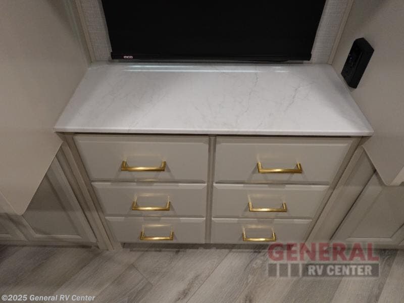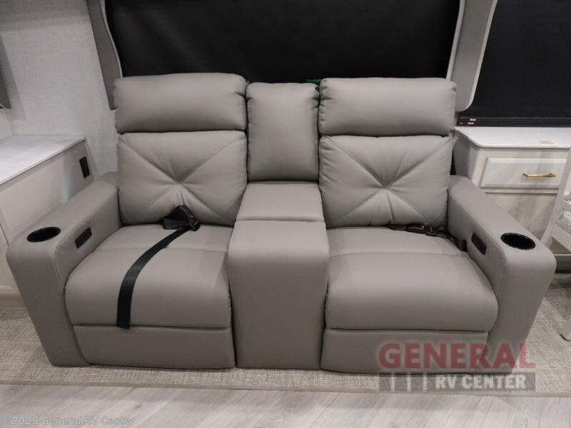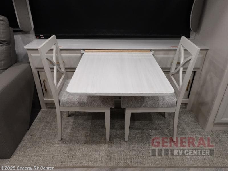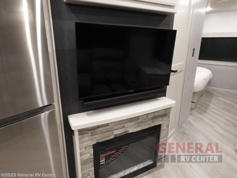 Get ready to live in this coach with all the amenities of home, yet your destination can change when you like! The rear bedroom offers a slide out king bed with CPAP storage above, plus wardrobes, a dresser and an LED TV to watch at night. The full bathroom offers a 24" x 40" shower with a seat so you can relax after shopping in town or hiking the trails. When you get hungry, the full kitchen offers a residential refrigerator, a convection microwave and pantry for all your goodies. The theater seating is across from the LED TV with a fireplace below for a great place to watch your shows, and the dinette gives you a place to dine and even work if you need to. You can also enjoy your coffee while sitting in the driver and passenger seats that swivel with a pedestal table in between.